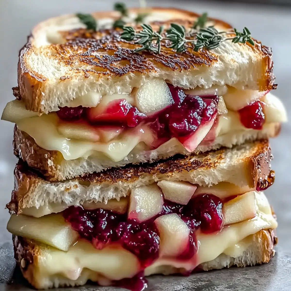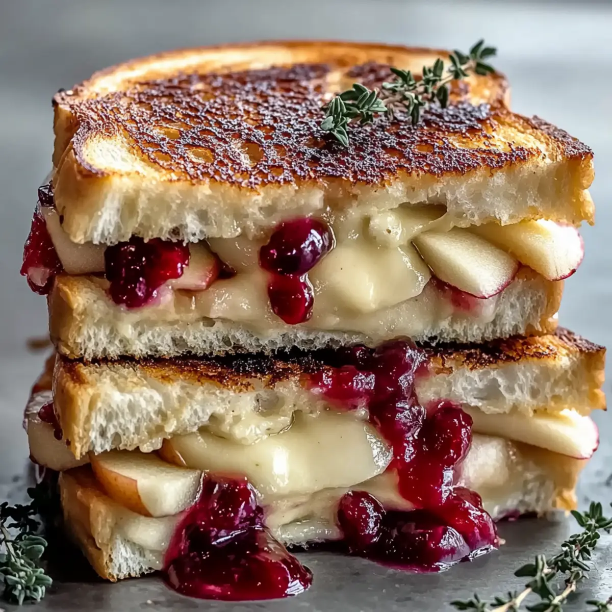Jump to Recipe Print RecipeAs I stood by the stove, the enticing aroma of melting brie wafted through the kitchen, transporting me to a cozy café nestled in the heart of autumn. This Gourmet Sweet and Savory Brie, Apple & Cranberry Grilled Cheese is not just a sandwich; it is an experience that combines the creamy richness of brie with the crisp sweetness of apples and the tangy zing of cranberry sauce. What I adore about this recipe is how effortlessly it transforms an everyday meal into a refined indulgence, perfect for special gatherings or a comforting lunch at home. Plus, it’s surprisingly quick to whip up, making it an ideal choice for busy days. If you’re tired of the same old fast food routine, why not treat yourself to this gourmet twist on a classic? Ready to elevate your grilled cheese game? Let’s dive into this delicious creation! Why is this grilled cheese recipe special? Irresistible Flavor: The blend of creamy brie, sweet apples, and tangy cranberry sauce creates a mouthwatering combination that will tantalize your taste buds. Easy to Make: With just a few simple ingredients, this gourmet grilled cheese comes together rapidly, perfect for a quick lunch or cozy dinner. Versatile Options: Feel free to swap in your favorite cheeses like gouda, or even experiment with seasonal fruits like pears for a fresh twist. Crowd-Pleaser: Whether hosting a brunch or enjoying a quiet meal, this dish impresses everyone with its balance of flavors and upscale flair. Perfect Pairing: Serve alongside a light salad or mixed greens for a satisfying meal, much like the delightful Feta Cranberry Rigatoni that complements its flavors beautifully! Give yourself a break from fast food and indulge in this delightful sandwich that’s sure to become a new favorite! Apple & Cranberry Grilled Cheese Ingredients For the Sandwich • Brie Cheese – This creamy delight provides richness; feel free to substitute gouda or cheddar for a different twist. • Apple – Offers a crisp and sweet crunch; choose firm varieties like Granny Smith or Honeycrisp for best texture. • Cranberry Sauce – Adds tangy flavor; both homemade and store-bought options work wonderfully. • Bread – The foundation of your grilled cheese; whole grain is great for added fiber or use brioche/sourdough for a gourmet touch. • Butter – Ensures a perfectly crispy exterior; softened for easy spreading, or swap for olive oil for a dairy-free alternative. For the Finishing Touches • Honey (optional) – A drizzle adds an extra layer of sweetness and visual appeal; it’s optional but highly recommended! • Fresh Thyme (optional) – A sprinkle before serving infuses an aromatic note, elevating the dish with freshness. Unleash your culinary creativity with this Apple & Cranberry Grilled Cheese that beautifully balances sweet and savory flavors, making it a real standout! Step‑by‑Step Instructions for Apple & Cranberry Grilled Cheese Step 1: Ingredient Prep Start by slicing the brie cheese and apple thinly for even melting and essential crunch. Set the cranberry sauce aside, ready to add a tangy touch later. This preparation ensures all elements are within reach, making the assembly of your Apple & Cranberry Grilled Cheese smooth and efficient. Step 2: Assemble Sandwiches Take two slices of your chosen bread and spread softened butter generously on one side of each slice. On the unbuttered side of the bread, layer the brie cheese followed by the apple slices and a spoonful of cranberry sauce. Top with the other slices, buttered side facing up for a deliciously crispy exterior once grilled. Step 3: Cook Sandwiches Heat a skillet over medium heat, allowing it to reach a gentle sizzle. Carefully place the assembled sandwiches in the skillet and cook each side for about 4-5 minutes. Keep an eye on the bread; you’re looking for a golden-brown crust while making sure the cheese melts beautifully, creating that luscious gooey center characteristic of Apple & Cranberry Grilled Cheese. Step 4: Finishing Touches Once both sides are golden brown and the cheese is melting, remove the sandwiches from the skillet. For an elegant finish, drizzle with honey and sprinkle fresh thyme over the top if desired. This step not only enhances flavor but also adds visual appeal to your gourmet creation. Cut each sandwich in half and prepare to serve! What to Serve with Gourmet Sweet and Savory Brie, Apple & Cranberry Grilled Cheese Build a delightful dining experience around your delicious grilled cheese with these perfect pairings. Mixed Greens Salad: This crisp salad adds freshness and balances the richness of the sandwich, making for a light and healthy accompaniment. Sweet Potato Fries: The sweet, caramelized flavors of these fries create a lovely contrast to the savory grilled cheese, enhancing each bite. Roasted Vegetable Medley: A colorful assortment of seasonal veggies roasted to perfection provides a hearty and nutritious side that complements the sandwich. Apple Cider: Enjoy a glass of chilled apple cider—it echoes the apple in your grilled cheese while refreshing the palate with its sweet-tart flavor. Butternut Squash Soup: This creamy, comforting soup contrasts beautifully with the crispy sandwich, delivering warmth and flavor to the meal. Sparkling Water with Lemon: For a refreshing drink, sparkling water with a squeeze of lemon cleanses the palate, allowing the gourmet flavors of the grilled cheese to shine. Chocolate Tart: Indulge your sweet tooth with a slice of rich chocolate tart for dessert, creating a decadent finish to a delightful meal. Herbed Quinoa Salad: Light and nutritious, a herbed quinoa salad adds an earthy touch, enhancing the overall meal experience. Treat yourself and your loved ones by combining these delightful sides with your Apple & Cranberry Grilled Cheese! Expert Tips for Apple & Cranberry Grilled Cheese • Room Temperature Brie: Ensure the brie is at room temperature for easier slicing, which will sav