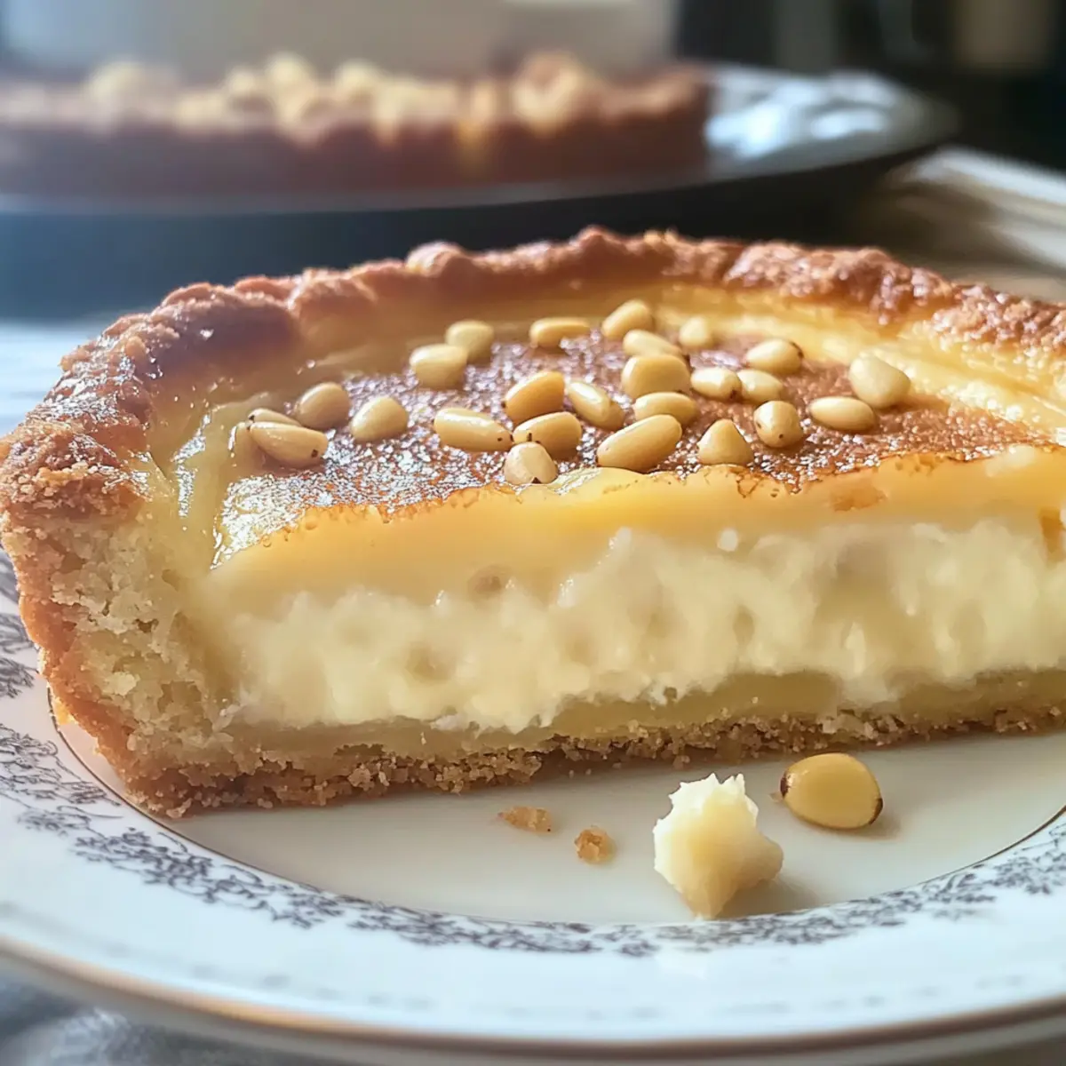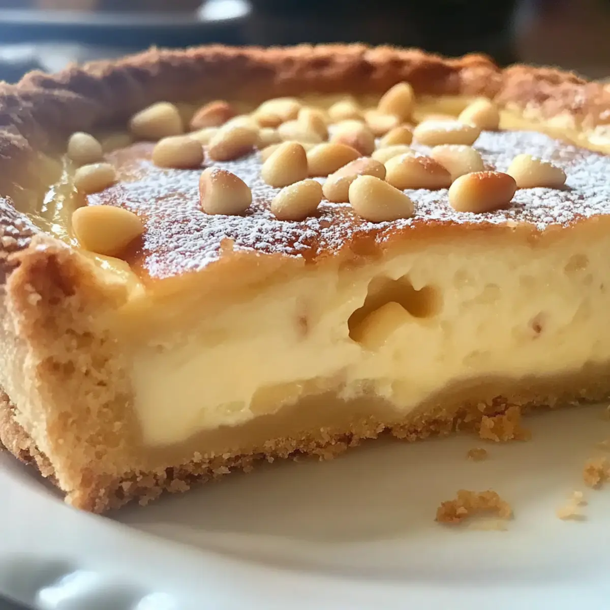 Enjoy this Authentic Italian Torta della Nonna, a classic dessert featuring a buttery crust and creamy custard.