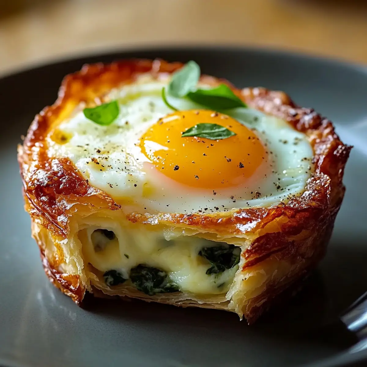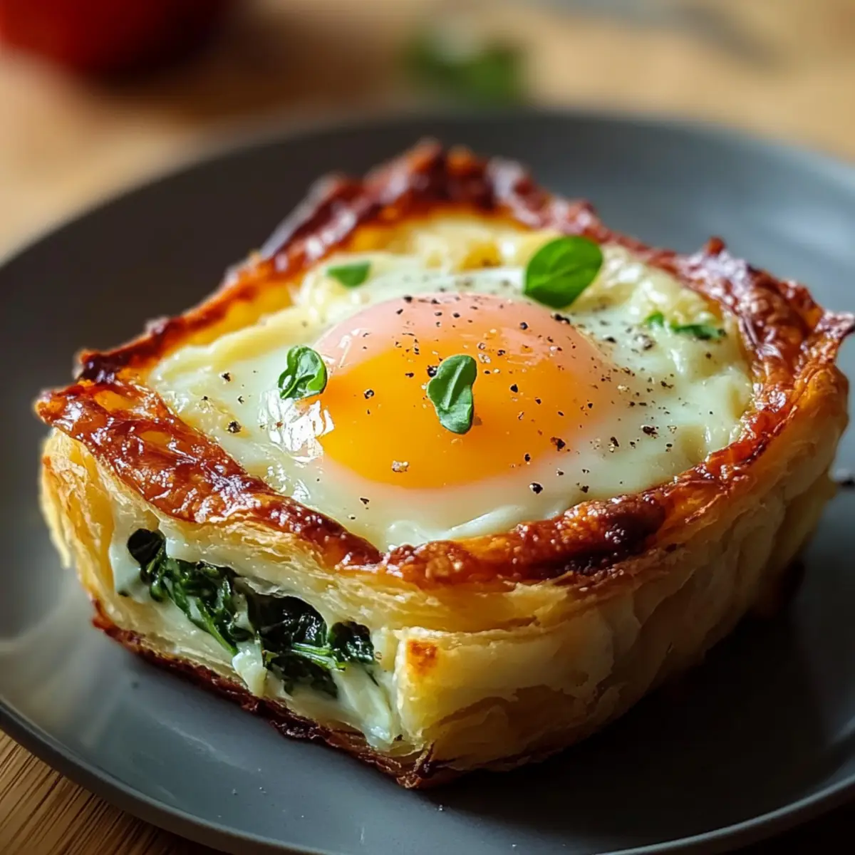 Jump to Recipe Print RecipeAs I stood in my kitchen one sunny brunch morning, I couldn’t help but feel the excitement of creating something special. Enter Baked Eggs Napoleon, a dish that’s not only easy to whip up but also beautifully customizable to suit every palate. Picture flaky puff pastry cups filled with creamy spinach, savory meats, or tasty alternatives—all topped with a perfectly baked egg. This recipe brings together the comforting warmth of home cooking and the kind of elegance that leaves guests marveling at your culinary skills. Plus, with the option to make it vegetarian, you can please a crowd without any hassle. Ready to impress everyone at your next gathering? Let’s dive into this delightful brunch experience! Why Is Baked Eggs Napoleon So Irresistible? Customizable Flavors: Tailor the ingredients to your liking by swapping in different cheeses, greens, or proteins, ensuring everyone finds their perfect bite. Simple Yet Elegant: Impress guests with this visually stunning dish that’s surprisingly easy to prepare, making it perfect for brunch gatherings or cozy weekends at home. Textural Harmony: Enjoy the delightful contrast of flaky pastry, soft egg, and creamy filling that creates a satisfying mouthfeel in every bite. Time-saving Delight: You can prep and assemble ahead of time, making brunch stress-free—just pop it in the oven when you’re ready! Vegetarian-Friendly Option: With simple substitutions, you can cater to various dietary preferences without sacrificing flavor. Serve it alongside a light salad or Baked Maple Donut for a complete brunch experience! Baked Eggs Napoleon Ingredients For the Pastry • Frozen Puff Pastry Sheets – Ensure properly thawed for that lovely flaky texture. • Unsalted Butter – Grease ramekins to prevent any unwanted sticking. For the Filling • Fresh Spinach – This nutritious green adds flavor; swap with kale or Swiss chard if desired. • Gruyère Cheese – Creamy and melty; try cheddar or goat cheese for a different taste. • Prosciutto/Cooked Ham – Adds savory depth; use bacon or omit for a delightful vegetarian option. • Heavy Cream – Enriches the eggs; can be replaced with milk for a lighter twist. • Nutmeg – A pinch enhances flavor; fresh nutmeg packs a more robust aroma. For the Assembly • Eggs – The heart of the dish; always choose quality, fresh eggs for the best taste. • Salt and Pepper – Essential for seasoning; adjust according to your taste. • Chopped Fresh Chives/Parsley – Perfect for garnish; feel free to substitute with your favorite herbs. Final Touches • Everything Bagel Seasoning – Optional but adds a delicious crunch to finish off your Baked Eggs Napoleon perfectly! Step‑by‑Step Instructions for Baked Eggs Napoleon Step 1: Prep the Puff Pastry Begin by thawing your frozen puff pastry sheets according to package instructions, ensuring they remain cold for ease of handling. Preheat your oven to 400°F (200°C) and grease six 4-inch ramekins with unsalted butter to prevent sticking, setting the stage for your delightful Baked Eggs Napoleon. Step 2: Form Pastry Shells Roll out the thawed puff pastry on a lightly floured surface to about 1/8 inch thickness. Use a round cutter to cut out circles that fit your ramekins, then gently press each pastry circle into the greased ramekins, ensuring they’re snug and even. This will create the beautiful foundation for your Baked Eggs Napoleon. Step 3: Blind Bake Shells To achieve perfectly crispy pastry shells, line each with parchment paper and fill with pie weights or dried beans. Place them in the preheated oven and bake for 12-15 minutes, watching for golden edges to form. After this initial bake, remove the weights and parchment, and return the shells to the oven for an additional 5 minutes, if needed. Step 4: Sauté Filling In a skillet, heat a drizzle of olive oil over medium heat. Add finely chopped shallots and minced garlic, sautéing until fragrant and translucent. Then, add fresh spinach and cook until wilted. Stir in cream cheese, heavy cream, and grated Gruyère cheese, along with a pinch of nutmeg, seasoning to taste as you create the velvety filling for your Baked Eggs Napoleon. Step 5: Assemble Carefully divide the creamy spinach mixture among the baked pastry shells, ensuring an even distribution. Gently crack an egg on top of each filling, allowing the yolk to sit proudly. To enhance flavor, sprinkle a touch of salt and pepper over the eggs before moving on to the next step in your Baked Eggs Napoleon journey. Step 6: Final Touch For a glossy finish, brush the exposed pastry edges with an egg wash made from beaten egg. Optionally, you can sprinkle each shell with Everything bagel seasoning for an extra crunch and flavor enhancement. This will add a delightful texture contrast to your Baked Eggs Napoleon. Step 7: Bake Place the ramekins back in the oven and bake for 12-18 minutes, keeping a close eye on them. You’re looking for firm egg whites and a yolk that’s cooked to your desired doneness—runny or set. The puff pastry should turn a beautiful golden brown, signifying that your Baked Eggs Napoleon is nearly ready to impress. Step 8: Garnish & Serve Once baked, let the Baked Eggs Napoleon cool slightly before serving. Garnish each with freshly chopped chives or parsley for a pop of color and flavor. Serve them hot, and enjoy this delightful brunch dish that’s sure to become a favorite among your family and guests! Make Ahead Options These Baked Eggs Napoleon are a fantastic choice for meal prep that saves you time on busy mornings! You can fully assemble the dish (without baking) up to 24 hours in advance by preparing the puff pastry shells, sautéing the filling, and preparing the eggs. Simply store the assembled ramekins covered in the refrigerator until you’re ready to bake. When you’re prepared to enjoy, preheat your oven and bake straight from the fridge, adding an extra minute or two to the