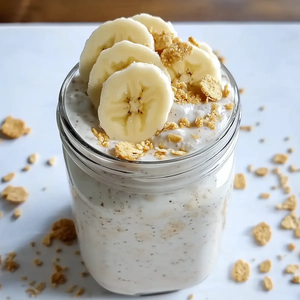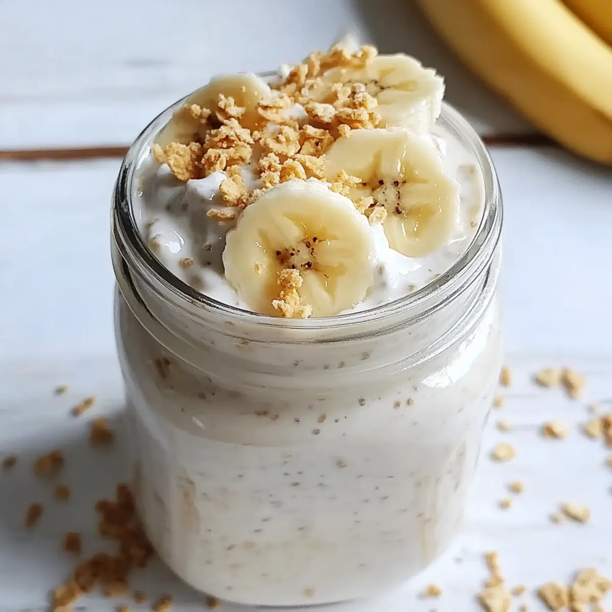 Experience the nostalgic flavors of Banana Cream Pie in this healthy overnight oats recipe, perfect for a nutritious breakfast.