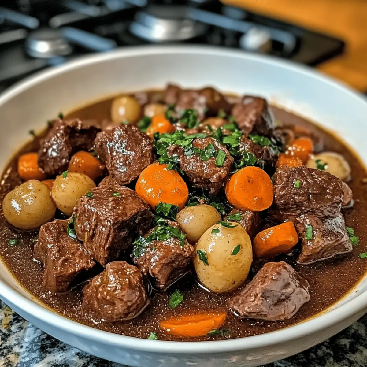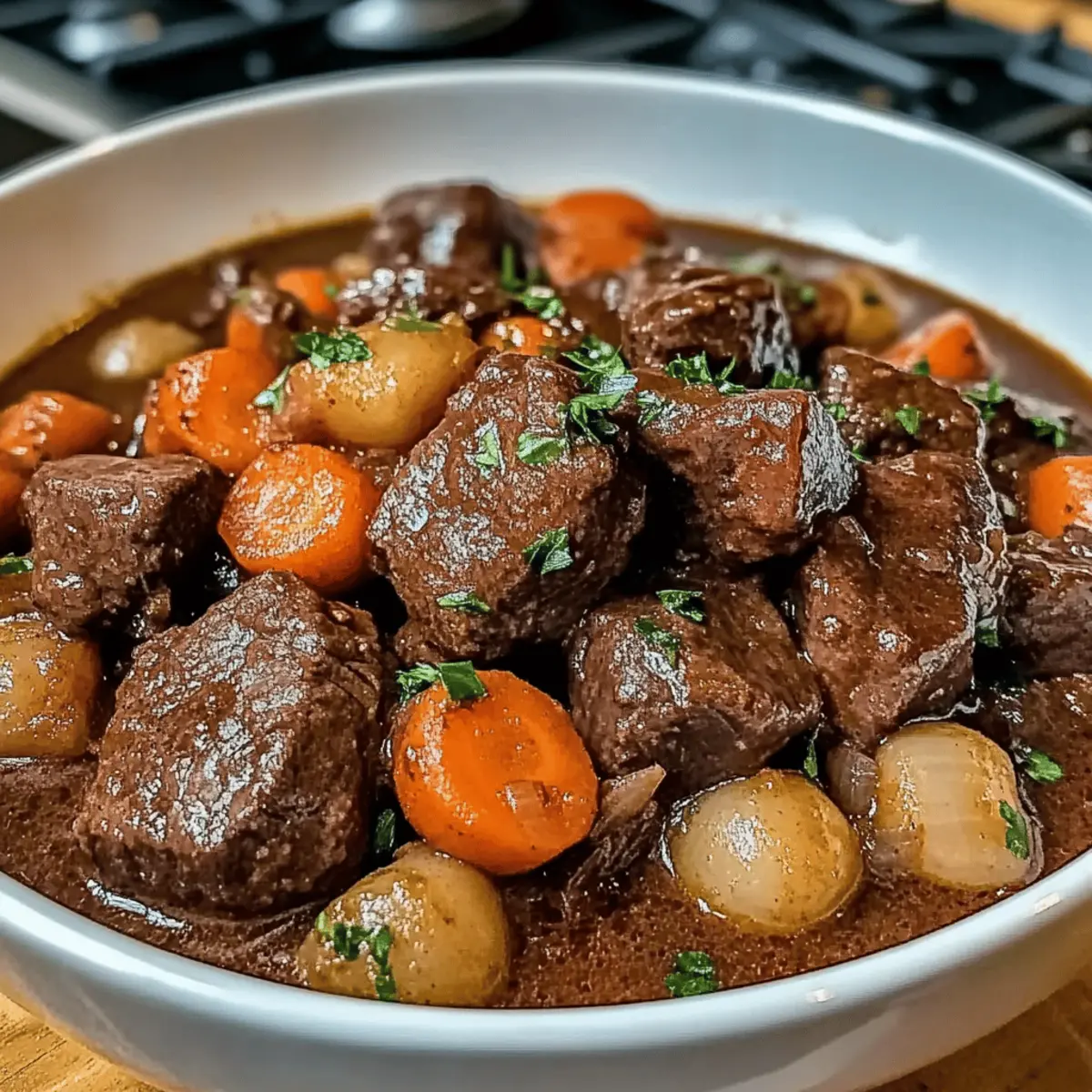These Beef Bourguignon make-ahead tips are perfect for busy weeknights! You can prepare the stew up to 24 hours in advance by completing steps 1 through 5, allowing the flavors to meld overnight in the refrigerator—just be sure to let it cool completely before refrigerating to maintain quality. When you’re ready to serve, slowly reheat the stew on the stove, adding a splash of beef stock if it’s too thick. Finish by sautéing the mushrooms and pearl onions as directed in step 6, then stirring them into the simmering stew for that restaurant-quality experience. With these prep-ahead steps, you’ll enjoy the comforting warmth of Beef Bourguignon with minimal effort!