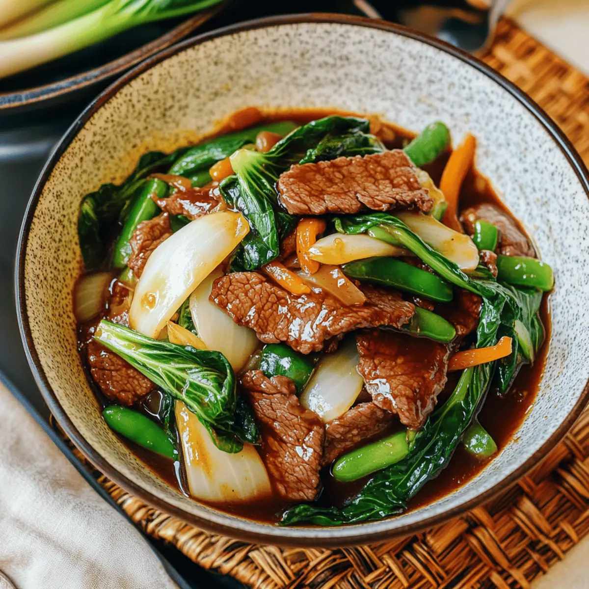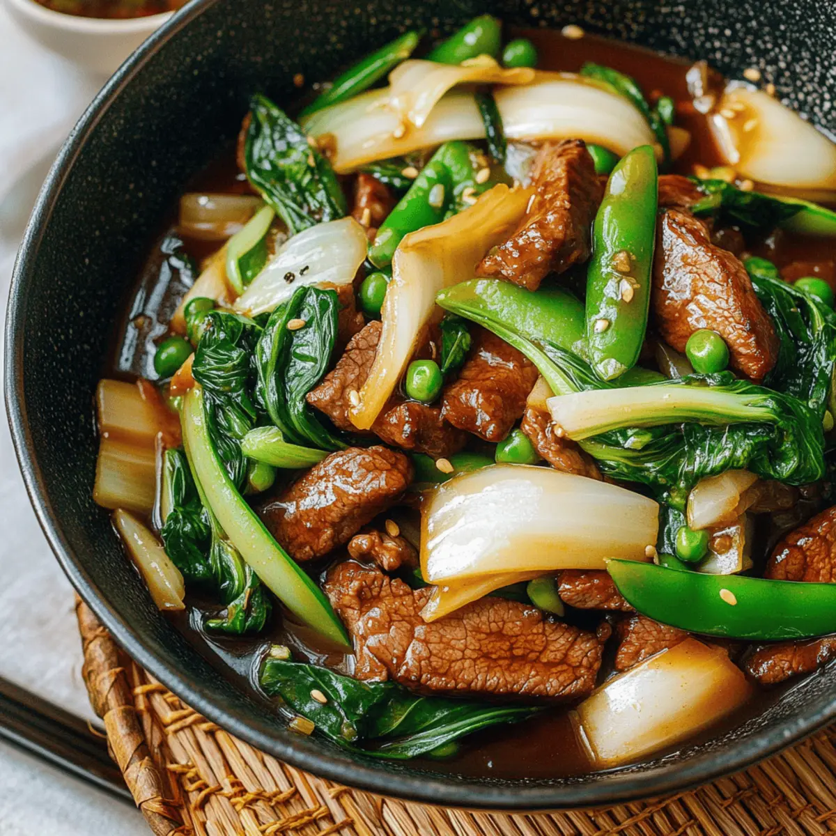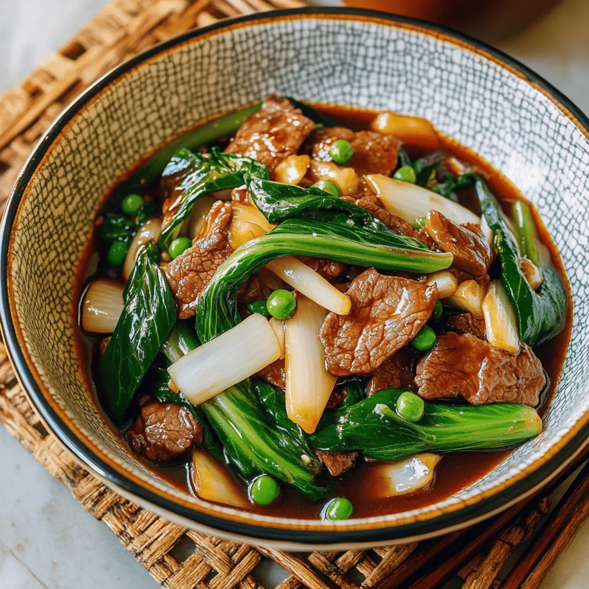 Jump to Recipe Print RecipeThe aroma of sizzling beef mingling with vibrant vegetables takes me back to my favorite Chinese takeout nights. With life’s whirlwind of responsibilities, who has time for lengthy meal prep? That’s where this Quick & Easy Beef Stir-Fry with Bok Choy steps in as your ultimate weeknight hero. Whipping up this colorful dish offers two fantastic perks: it’s not only a delightfully swift option for busy evenings, but it also brings the fresh crunch of veggies and the tender flavors of beef right to your table in just minutes. Whether you’re a seasoned home chef or someone just looking to break free from fast food, this stir-fry is both comforting and health-conscious. Ready to transform your dinner routine? Let’s dive into the deliciousness! Why is Beef Stir-Fry a Must-Try? Speedy Dinner Solution: This Quick & Easy Beef Stir-Fry can be on your table in under 30 minutes, perfect for hectic weeknights. Brighten Your Plate: The vibrant veggies like bok choy and snap peas add a delightful pop of color and nutrition, making every bite a feast for the eyes. Customizable Delight: Easily swap in your favorite vegetables or proteins, like chicken or tofu, offering endless variations to keep dinner fresh and exciting. Savory Umami Boost: The blend of soy and oyster sauce creates an unforgettable depth of flavor without the need for hours of cooking. Family-Friendly Favorite: With its appeal to both kids and adults alike, this stir-fry will soon become a go-to meal that everyone will love. Elevate your weeknight dinners with dishes like the Beef Pasta Protein or even the comforting Ground Beef Enchiladas! Beef Stir-Fry with Vegetables Ingredients For the Beef Marinade Flank Steak – A tender and flavorful cut; slice thinly against the grain for the best texture. Cornstarch – Helps to marinate the beef and gives it a lovely silky finish in the stir-fry. Baking Soda – Tenderizes the beef during marination, enhancing its juiciness. Neutral Oil – Use vegetable, canola, or avocado oil for high-heat cooking without overpowering flavors. Water – Combines with other ingredients to create a balanced marinade consistency. For the Vegetables Bok Choy – Adds nutrition and crunch; easily substitutable with similar leafy greens like kale. Bunashimeji or Beech Mushrooms – Introduces umami; feel free to swap with your preferred mushroom. Sugar Snap Peas or Snow Peas – Provides a sweet crunch to the dish; you can replace them with bell peppers or broccoli. For the Sauce Light & Dark Soy Sauce – Infuses the dish with depth and saltiness; use gluten-free options if necessary. Oyster Sauce – Delivers an umami punch; can be replaced by a vegetarian alternative if needed. Sesame Oil – Adds a distinct nutty flavor; skip if allergic, or use another oil for cooking. Minced Ginger & Garlic – Essential for crafting that rich, aromatic base. Shaoxing Wine – A traditional Chinese cooking wine that enhances complexity; can be replaced with dry sherry. Cornstarch Slurry – Thickens the sauce for a glossy finish, making it cling beautifully to the beef and veggies. With this Beef Stir-Fry with Vegetables, you’re just moments away from a satisfying and colorful dinner that’s bound to impress! Step‑by‑Step Instructions for Beef Stir-fry with Vegetables Step 1: Marinate the Beef In a medium bowl, combine thinly sliced flank steak with cornstarch, a tablespoon of oil, water, and baking soda. Mix thoroughly to ensure the beef is well-coated, then let it marinate at room temperature for at least 30 minutes, or refrigerate overnight for deeper flavor. This step is crucial for achieving tender, flavorful beef in your Beef Stir-fry with Vegetables. Step 2: Prep Vegetables While the beef marinates, wash and chop the bok choy, mushrooms, and sugar snap peas. Cut the bok choy into bite-sized pieces and slice the mushrooms thinly. Set all the vegetables aside in a bowl, ready to be stir-fried. Having everything prepped in advance will make your cooking process quicker and more seamless. Step 3: Prepare Sauce Mixture In a small bowl, mix together warm water or stock, sesame oil, light soy sauce, dark soy sauce, oyster sauce, and sugar. Stir well to combine all flavors into a cohesive sauce that will enhance your Beef Stir-fry with Vegetables. Set this mixture aside so it’s ready to pour into the wok later. Step 4: Cook Beef Heat a wok or a large frying pan on high heat until it starts to smoke lightly. Add 2 tablespoons of neutral oil, then quickly add the marinated beef. Sear the beef for about 30 seconds on each side until it’s browned and just cooked through. Remove the beef from the wok and set it aside on a plate while you work on the next steps. Step 5: Sauté Aromatics Using the same wok, add the remaining oil, ginger, and garlic, stirring for just a few seconds until they become fragrant. Make sure not to burn the garlic; it should be lightly golden. This aromatic base will infuse the Beef Stir-fry with Vegetables with delightful flavor that keeps everyone coming back for more. Step 6: Add Vegetables Now, toss in the sliced mushrooms first, stirring them for about 15 seconds until they start to soften. Then add in the sugar snap peas and bok choy, cooking until the bok choy is wilted and bright green—about 20 seconds. The vibrant colors will signal that your veggies are nearly ready, enhancing the visual appeal of your dish. Step 7: Combine and Thicken Return the cooked beef to the wok and pour in the prepared sauce mixture. Stir everything together and allow it to heat through until it reaches a simmer. Quickly add the cornstarch slurry, mixing continuously until the sauce thickens to a glossy finish, beautifully coating all the ingredients. Your Beef Stir-fry with Vegetables is coming together wonderfully! Step 8: Serve Immediately Once everything is thoroughly combined and heated, transfer the Beef Stir-fry with Vegetables to serving plates. Serve hot over stea