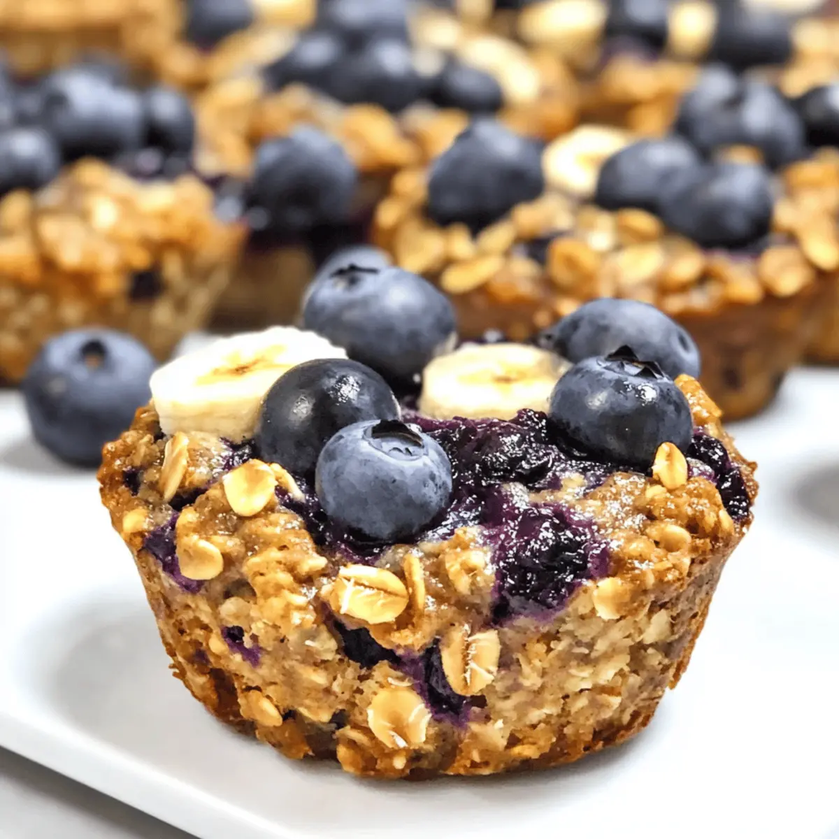 Jump to Recipe Print RecipeIn the hustle and bustle of mornings, finding a quick, nutritious breakfast can feel like a mini crisis. That’s when I discovered the magic of Healthy Blueberry Banana Baked Oatmeal Cups! These little wonders are not just a time-saver; they’re a deliciously wholesome start to your day, bursting with the natural sweetness of ripe bananas and juicy blueberries. Perfect for meal prep, they can be whipped up in no time and are ideal for busy schedules or on-the-go breakfasts. Plus, they offer a delightful chewy texture that will keep you satisfied without the guilt of fast food. Curious to see how easy it is to layer flavor and nutrition into your morning routine? Let’s dive into this scrumptious recipe! Why Choose Blueberry Banana Oatmeal Cups? Convenience at Its Best: Imagine having a healthy breakfast ready to go each morning with minimal effort! These cups are perfect for meal prep and can be made in batches. Nutritious and Wholesome: Packed with oatmeal, bananas, and blueberries, they’re loaded with fiber and essential nutrients to kickstart your day. Versatile Flavors: Feel free to mix in your favorite fruits or nuts; every batch can be a delicious surprise! You can even try these alongside my Baked Maple Donut Bars for an extra special brunch. Guilt-Free Indulgence: With natural sweetness and a chewy texture, these oatmeal cups satisfy your cravings without sacrificing health. Quick and Easy: From mixing to baking, this recipe fits seamlessly into even the busiest mornings, making it a must-try for anyone looking to escape fast food. Blueberry Banana Baked Oatmeal Cups Ingredients For the Oatmeal Base Old-fashioned rolled oats – Provides a sturdy base; opt for gluten-free oats for a gluten-free version. Mashed bananas – Adds natural sweetness and moisture; substitute with applesauce if you have a banana allergy. Honey – A natural sweetener; maple syrup is a great vegan alternative. Almond milk – Contributes creaminess and moisture; use any non-dairy or regular milk based on your preference. For the Flavor Boost Blueberries – Bursting with flavor and antioxidants; fresh or frozen work, but adjust baking time if using frozen. Feel free to experiment and enjoy making your Blueberry Banana Baked Oatmeal Cups tailored to your taste! Step‑by‑Step Instructions for Blueberry Banana Baked Oatmeal Cups Step 1: Preheat and Mix Start by preheating your oven to 350°F (175°C) and greasing a muffin tin or lining it with cupcake liners for easy removal. In a large mixing bowl, combine the old-fashioned rolled oats, mashed bananas, honey, and almond milk. Stir the mixture thoroughly until all ingredients are well blended, creating a thick and creamy batter that will form the base of your Blueberry Banana Baked Oatmeal Cups. Step 2: Incorporate the Blueberries Next, gently fold in the blueberries, taking care not to overmix. This step ensures that the berries are evenly distributed throughout the oatmeal mixture, creating delightful pockets of flavor in each cup. The vibrant blueberries should be incorporated just enough so they remain intact, adding a delicious burst of freshness to your Blueberry Banana Baked Oatmeal Cups. Step 3: Fill the Muffin Tin Using a spoon or an ice cream scoop, carefully fill each muffin tin cavity with the oatmeal mixture, filling them about three-quarters full. This allows space for the cups to rise without overflowing. Make sure each cup is evenly filled to ensure consistent baking. The mixture should look hearty and inviting, promising a wholesome treat once baked. Step 4: Bake to Perfection Place the filled muffin tin into the preheated oven and bake for 25-30 minutes. Keep an eye on them, looking for a golden hue and a set center. A toothpick inserted into the center of one of the cups should come out clean, indicating that the Blueberry Banana Baked Oatmeal Cups are perfectly cooked and ready to be enjoyed. Step 5: Cool and Transfer Once they’ve baked, remove the muffin tin from the oven and let the oatmeal cups cool in the tin for about 5 minutes. This cooling time helps them firm up and makes them easier to handle. After cooling slightly, carefully transfer the cups to a wire rack to cool completely, allowing their flavors to meld while they achieve the perfect texture. Make Ahead Options These Healthy Blueberry Banana Baked Oatmeal Cups are ideal for meal prep, saving you time on busy mornings! You can mix the oatmeal base (oats, mashed bananas, honey, and almond milk) and refrigerate it for up to 24 hours before baking. Just remember to add the blueberries right before filling the muffin tins to keep their freshness intact. Alternatively, you can bake the cups and store them in an airtight container in the refrigerator for up to 3 days. When ready to enjoy, simply reheat them in the microwave for a few seconds, and they’ll be just as delicious as when they were freshly baked! How to Store and Freeze Blueberry Banana Baked Oatmeal Cups Fridge: Store in an airtight container for up to 7 days. This keeps your Blueberry Banana Baked Oatmeal Cups fresh and ready for quick breakfast options. Freezer: For longer storage, freeze individually wrapped cups in plastic wrap or placed in a freezer-safe bag. They’ll keep for up to 3 months, making meal prep a breeze! Reheating: To enjoy, simply microwave for 30-60 seconds or place in the oven at 350°F (175°C) until warmed through. Enjoy them just like fresh out of the oven! Check for Freshness: Always check for any signs of spoilage before consuming; if they look or smell off, it’s best to discard them. What to Serve with Blueberry Banana Baked Oatmeal Cups Elevate your breakfast experience with these delightful oatmeal cups that pair beautifully with a variety of sides. Greek Yogurt: A dollop of creamy Greek yogurt adds a protein punch and pairs perfectly with the fruity sweetness. Fresh Fruit Salad: A vibrant mix of seasonal fruits enhances the freshness of your bre