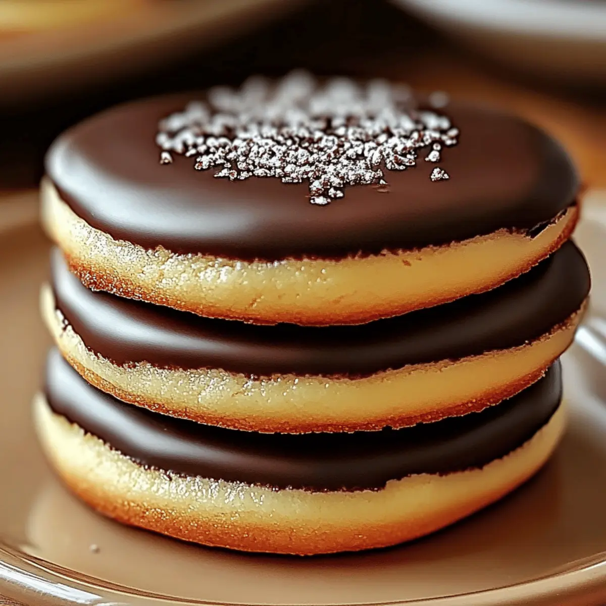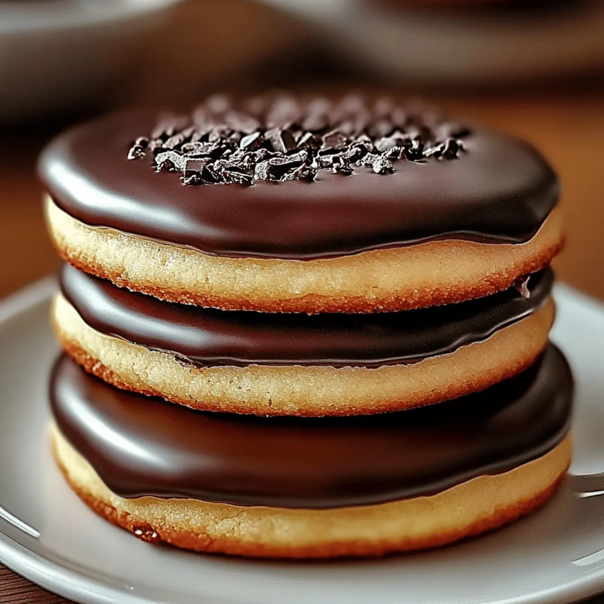 Jump to Recipe Print RecipeAs I stood in the kitchen, the sweet aroma of melting chocolate filling the air, I couldn’t help but smile at the idea of Boston Cream Pie Cookies — a delightful twist on the classic dessert I adore. These cookies blend the soft, comforting texture you crave with a luxurious cream filling and a glossy chocolate glaze that feels like a warm embrace. Perfect for gatherings or a cozy afternoon treat, they are not only quick to whip up but also a guaranteed crowd-pleaser. With every bite, you’ll experience the joy of a cherished dessert in a fun, portable form. Who’s ready to indulge in this sweet adventure? Why Will You Adore These Cookies? Indulgent Delight: Each bite is a heavenly mix of soft, cake-like cookies filled with rich pastry cream and topped with a glossy chocolate glaze. Fast & Easy: These cookies come together quickly, making them a perfect choice for last-minute gatherings or sweet cravings. Versatile Flavors: Experiment with different chocolate types or flavorings like almond extract for a unique twist that fits every palate. Perfect Pairings: Enjoy with a scoop of vanilla ice cream or a steaming cup of coffee for an elevated dessert experience. Make-Ahead Magic: Prepare the dough and filling in advance for effortless assembly and ultimate freshness on the day of serving. Boston Cream Pie Cookies Ingredients For the Cookie Dough Unsalted Butter – Adds richness and moisture to the cookie dough; for a dairy-free option, use margarine. Granulated Sugar – Provides sweetness and helps create a tender cookie. Eggs – Bind ingredients together and add necessary moisture. Vanilla Extract – Enhances the flavor of these delicious Boston Cream Pie Cookies. All-Purpose Flour – Provides essential structure to the cookies. Baking Powder – Helps the cookies rise and achieve a fluffy texture. Baking Soda – Works with baking powder for perfect leavening. Salt – Balances sweetness and enhances overall flavor. For the Cream Filling Heavy Cream – Used in the cream filling for a rich, velvety texture. Powdered Sugar – Sweetens the cream filling, ensuring a light and fluffy consistency. For the Chocolate Glaze Semi-Sweet Chocolate Chips – Creates a decadent glaze; substitute with dark chocolate for a richer flavor. Vegetable Oil – Added to the chocolate glaze for a smooth, glossy finish. Step‑by‑Step Instructions for Boston Cream Pie Cookies Step 1: Prepare the Cookie Dough In a large mixing bowl, cream together 1 cup of unsalted butter and 1 cup of granulated sugar until light and fluffy, about 3–4 minutes. Next, add in 2 eggs and 2 teaspoons of vanilla extract, mixing until well combined. In a separate bowl, whisk together 2 cups of all-purpose flour, 1 teaspoon of baking powder, 1 teaspoon of baking soda, and ½ teaspoon of salt, then gradually mix these dry ingredients into the wet mixture until just combined. Step 2: Chill the Dough Once the dough for the Boston Cream Pie Cookies is mixed, cover it with plastic wrap and refrigerate for at least 30 minutes. Chilling the dough will make it easier to handle and help the cookies maintain their shape while baking. While waiting, you can prepare your baking sheets by lining them with parchment paper for easy cleanup. Step 3: Make the Cream Filling While the cookie dough is chilling, whip together 1 cup of heavy cream and ½ cup of powdered sugar in a medium bowl until soft peaks form, which should take about 3–5 minutes with an electric mixer. Ensure the mixture is light and fluffy, as this will create a velvety filling for your Boston Cream Pie Cookies. Set aside in the refrigerator to keep it cold while you prepare the cookies. Step 4: Preheat and Shape Cookies Preheat your oven to 350°F (175°C) and retrieve the chilled dough. Using a tablespoon or cookie scoop, shape the dough into 1-inch balls and place them about 2 inches apart on the prepared baking sheets. Each cookie will spread slightly while baking, so make sure they have enough space. Step 5: Bake the Cookies Bake the cookies for about 10–12 minutes, or until the edges are lightly golden but the centers still appear soft. Keep an eye on them, as they can go from perfect to overbaked quickly! Once done, remove them from the oven and let them cool on the baking sheets for 5 minutes before transferring to a wire rack to cool completely. Step 6: Prepare the Chocolate Glaze In a microwave-safe bowl, combine 1 cup of semi-sweet chocolate chips and 2 tablespoons of vegetable oil. Microwave in 30-second intervals, stirring between each until the chocolate is fully melted and smooth, about 1–2 minutes total. The addition of the oil will give your glaze that beautiful glossy finish that’s perfect for draping over the cookies. Step 7: Assemble the Cookies Once the cookies are completely cool, take the whipped cream filling from the refrigerator and pipe or spoon a generous amount onto the bottom of half the cookies. Place another cookie on top, creating a sandwich. Finally, dip the tops of each assembled cookie into the melted chocolate glaze, allowing any excess to drip off. Set aside on a wire rack until the glaze is set. What to Serve with Boston Cream Pie Cookies For a truly memorable dessert experience, consider complementing these delightful cookies with these flavorful pairings. Vanilla Ice Cream: A classic choice, this creamy scoop enhances the cookies’ richness and balances their sweetness beautifully. Fresh Berries: Juicy strawberries or raspberries add a burst of tartness, cutting through the sweetness and providing a refreshing contrast. Coffee or Espresso: The robust flavors of coffee create a wonderful harmony with the sweet and creamy profile of the cookies, perfect for a cozy moment. Chocolate Milkshake: Indulge your sweet tooth further with a thick, luscious milkshake that echoes the chocolate glaze’s decadence. Fruit Salad: A mix of seasonal fruits adds a light and vibrant contrast, refreshing your pala
