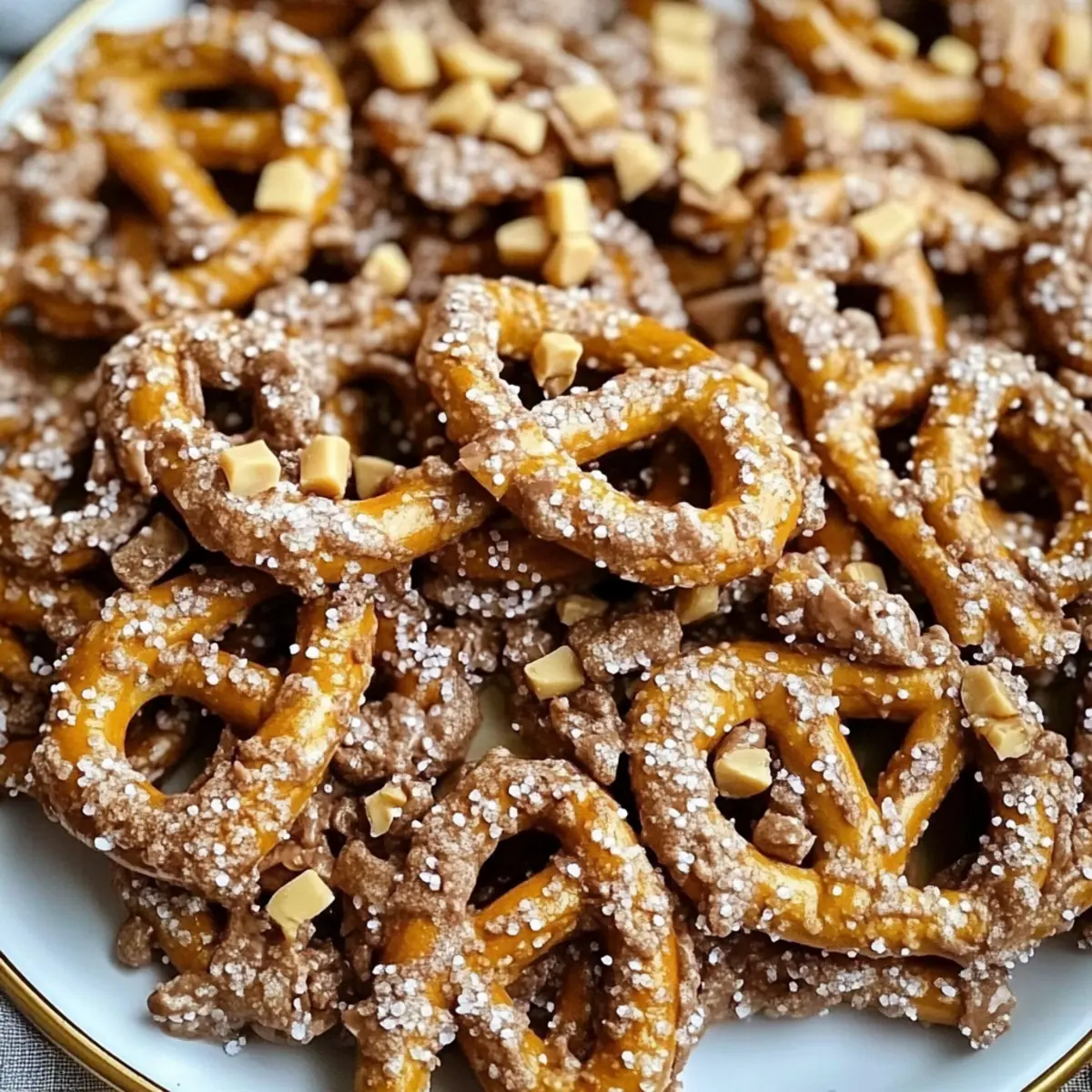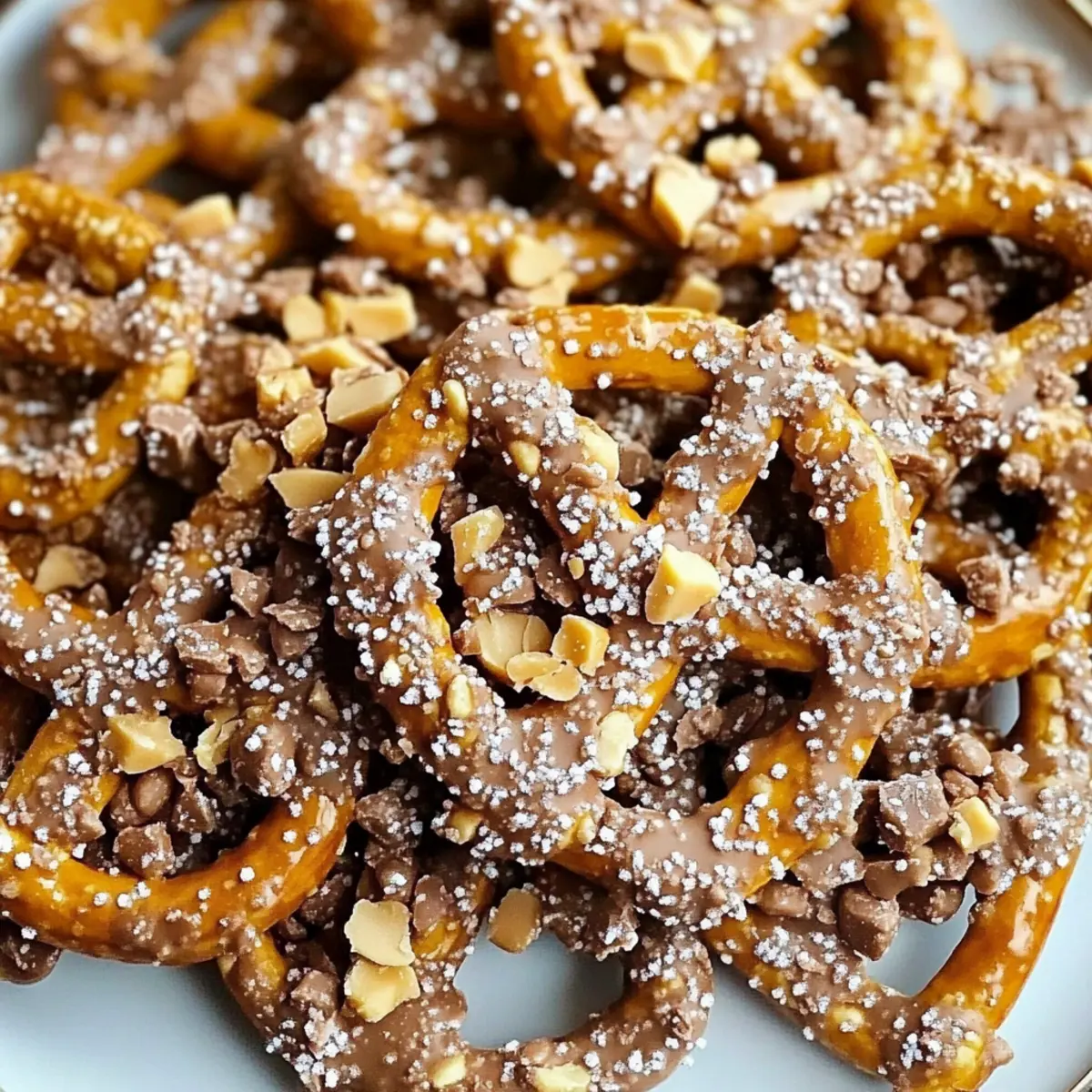 Jump to Recipe Print RecipeAs I stood in the kitchen, the sweet aroma of melting butter and brown sugar filled the air, instantly transporting me to cozy holiday gatherings. That’s when I knew it was time to make my favorite snack: Butter Toffee Pretzels. This delightful treat beautifully balances sweet and salty, with a satisfying crunch that makes it utterly addictive. Not only is this recipe super simple to whip up, but it also makes for an impressive addition to your snack table or a lovely gift for friends and family. With just a handful of ingredients and minimal prep time, you can create a bowl of these irresistible treats that everyone will adore. Ready to dive into the world of buttery, toasty bliss? Let’s make some magic together! Why Are These Pretzels So Irresistible? Sweet, Salty Delight: The combination of buttery toffee and crunchy pretzels provides a flavor experience that keeps you coming back for more. Quick Preparation: Made in just a short time, these treats are perfect for spontaneous cravings or last-minute gatherings. Crowd-Pleasing Snack: Whether it’s holiday parties or movie nights, these pretzels are guaranteed to impress guests and family alike. Versatile Variations: Feeling adventurous? Try adding mini chocolate chips or swapping in flavored nuts for a new twist! You might even love them alongside other comforting dishes like Butter Chicken Comfort. Easy Gifting: Packaged in a cute jar, they make a thoughtful gift that shows you care. Every bite creates smiles! Butter Toffee Pretzel Ingredients • Create a delicious batch of Butter Toffee Pretzels with these simple ingredients. For the Pretzel Base • Pretzel Snaps – Crunchy and square-shaped, they provide the perfect surface area for toffee coating. • Roasted Peanuts (optional) – Adds a delightful nutty flavor and texture; you can substitute with your favorite chopped nuts or omit for nut-free versions. For the Toffee Coating • Butter – Adds richness and flavor to the toffee; margarine can be used as a substitute if needed. • Brown Sugar – This sweet ingredient brings the classic toffee flavor; light or dark brown sugar works great. • Corn Syrup – Helps the toffee achieve a chewy consistency; honey or maple syrup can be delicious alternatives. • Vanilla Extract – Enhances the flavor depth; almond extract can provide an interesting twist if you prefer. • Baking Soda – Creates a light, foamy texture in the toffee; omit if you don’t have any on hand, though it is best used in the recipe. • Heath Bits – Optional but delicious, they offer extra crunch and flavor; chocolate-covered toffee bits can also be substituted. Bring together these delightful ingredients, and you’ll have the makings of your new favorite treat! Step‑by‑Step Instructions for Butter Toffee Pretzels Step 1: Preheat the Oven Begin by preheating your oven to 200°F (93°C) and lining a baking sheet with parchment paper. This preparation ensures that your Butter Toffee Pretzels bake evenly and do not stick to the pan, making clean-up a breeze later on. Set your lined baking sheet aside while you prepare your toffee mixture. Step 2: Prepare the Toffee Mixture In a medium saucepan over medium heat, melt 1 cup of butter. Once the butter is melted, add in 1 cup of brown sugar and 1/2 cup of corn syrup. Stir the mixture gently until combined, then let it come to a boil without stirring for 2-3 minutes. You’ll know it’s ready when it turns a lovely caramel color and begins to bubble vigorously. Step 3: Add Flavor Enhancements Remove the saucepan from heat and carefully stir in 1 teaspoon of vanilla extract and 1/2 teaspoon of baking soda. Be cautious, as the mixture will bubble up and foam nicely due to the baking soda. This step helps to create that delightful airy texture in your Butter Toffee Pretzels. Stir until the ingredients are fully combined and allow to cool slightly. Step 4: Coat the Pretzels In a large mixing bowl, combine 8 ounces of pretzel snaps. Pour the warm toffee mixture over the pretzels, using a rubber spatula to stir them until each pretzel is evenly coated. Ensure every pretzel is covered with the sweet, sticky toffee, as this will create that irresistible texture you crave in these delicious snacks. Step 5: Add Heath Bits If you’re using Heath bits, sprinkle them over the coated pretzels now. Gently mix the bits into the pretzel-toffee mixture, ensuring they are evenly distributed. The added crunch from the Heath bits enhances both the flavor and texture of the Butter Toffee Pretzels, providing delightful surprises in every bite. Step 6: Bake the Pretzels Spread the coated pretzels evenly onto your prepared baking sheet in a single layer. Place the sheet in the preheated oven and bake for 45 minutes, making sure to stir every 15 minutes. This stirring helps the toffee coat each pretzel uniformly, creating an even, crunchy texture throughout. Step 7: Finish with Peanuts After removing the pretzels from the oven, immediately sprinkle chopped roasted peanuts over them, if desired. Toss the pretzels gently to mix the peanuts in, adding an extra layer of flavor and crunch to your Butter Toffee Pretzels. Allow them to sit for a minute to cool slightly. Step 8: Cool and Store Let the Butter Toffee Pretzels cool completely on the baking sheet. Once they have cooled, break them apart into bite-sized pieces and transfer them to an airtight container. Storing them properly ensures they stay fresh and maintain their delightful crunch for up to two weeks, great for snacks or gifts! What to Serve with Crunchy Butter Toffee Pretzels Kick back and enjoy these delightful treats alongside a few comforting accompaniments that will elevate your snacking experience. Creamy Hot Chocolate: The rich flavors of hot chocolate will beautifully enhance the buttery sweetness of the pretzels, creating a cozy pairing that warms your heart. Crunchy Vegetable Platter: Fresh veggies like carrots and celery provid