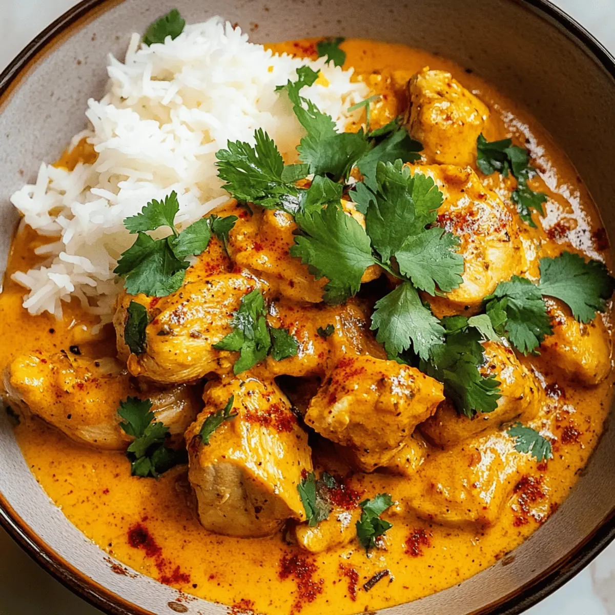 Jump to Recipe Print RecipeOn a chilly evening, nothing beats the warmth of a homemade dinner that wraps you in comfort. My Creamy Butternut Squash Butter Chicken is a delightful twist on a classic that transforms tender chicken into a cozy bowl of creamy goodness. Infused with sweet butternut squash and vibrant spices, this dish is not only a healthy recipe but also an easy dinner solution for busy weeknights. You can have it on the table in no time, making it the perfect antidote to takeout fatigue. Plus, it’s versatile enough to cater to dietary preferences with a dairy-free option available. What’s your favorite way to elevate a weeknight meal? Why is Butternut Squash Butter Chicken Unique? Comforting, this dish combines two beloved flavors—creamy butter chicken and sweet butternut squash, creating a cozy dinner experience. Ease of preparation is key; it’s a straightforward recipe even for busy evenings. Health-conscious eaters will love that it’s a nutrient-packed meal with options for dairy-free variations. Flavor explosion comes from a delightful mix of warming spices that elevate your dining experience. Versatile enough for guests or a family dinner, this dish appeals to all ages, making it a must-try! For even more delicious ideas, check out my Butter Chicken Comfort or Bbq Chicken Mac for a taste adventure! Butternut Squash Butter Chicken Ingredients For the Chicken • Boneless skinless chicken thighs – Tender and juicy, ideal for absorbing flavors; substitute with chicken breasts for a leaner option, though it may be drier. For the Sauce • Vegetable oil – A neutral-flavored fat for cooking with a high smoke point. • Medium onion – Adds sweetness and a savory base to the dish. • Garlic (3 cloves, minced) – Enhances depth and complexity in the sauce. • Fresh ginger (1 tablespoon, grated) – Infuses warmth and bright flavor into the curry. • Butternut squash puree (1 cup) – Provides natural sweetness and creaminess; can use homemade or store-bought. • Full-fat coconut milk (1 cup) – A rich, creamy texture alternative to heavy cream, perfect for making the dish dairy-free. • Tomato puree (1/2 cup) – Adds acidity and tang that balances the sweetness of the squash. • Butter (2 tablespoons) – Enriches the sauce, giving it a luscious shine and creaminess. For Seasoning • Spices (garam masala – 2 tsp, turmeric – 1 tsp, cumin powder – 1 tsp, coriander powder – 1 tsp, chili powder – 1/2 tsp) – Create a depth of flavor and warmth that truly elevates your butternut squash butter chicken. • Salt and pepper – Essential for enhancing the flavors throughout the dish. For Garnishing & Serving • Fresh cilantro leaves – Adds brightness and color, making the dish visually appealing. • Basmati rice or naan – Ideal for serving; perfect for soaking up that creamy, spiced sauce. Step‑by‑Step Instructions for Butternut Squash Butter Chicken Step 1: Sauté the Aromatics In a large pan, heat 2 tablespoons of vegetable oil over medium heat until shimmering. Add one chopped medium onion and sauté for about 5 minutes, or until it becomes translucent and fragrant. Follow with 3 minced garlic cloves and 1 tablespoon of grated fresh ginger, cooking for an additional 1–2 minutes until the mixture is aromatic, creating a welcoming base for your creamy butternut squash butter chicken. Step 2: Brown the Chicken Introduce 1.5 pounds of boneless skinless chicken thighs to the pan. Increase the heat to medium-high and brown the chicken pieces for about 8–10 minutes, turning occasionally until they develop a golden crust on all sides. This step is crucial for enhancing the flavors of the butternut squash butter chicken as it infuses the dish with depth and richness. Step 3: Add the Spices Sprinkle in 2 teaspoons of garam masala, 1 teaspoon each of turmeric, cumin, and coriander powder, along with 1/2 teaspoon of chili powder, and season with salt and pepper to taste. Stir the spices in for 1–2 minutes until they coat the chicken evenly and become fragrant, setting the stage for the creamy sauce that will follow. Step 4: Incorporate the Sauces Reduce the heat to low and carefully stir in 1 cup of butternut squash puree, 1 cup of full-fat coconut milk, and 1/2 cup of tomato puree. Mix well until everything is combined, creating a beautiful, vibrant sauce that envelops the chicken. Allow the natural sweetness from the squash to shine through in your butternut squash butter chicken. Step 5: Let it Simmer Cover the pan and let the mixture simmer on low heat for about 20 minutes. Stir occasionally to ensure the sauce thickens evenly and the chicken cooks thoroughly. Look for the sauce to become velvety and the chicken to be tender, signaling that your creamy butternut squash butter chicken is nearly ready. Step 6: Finish with Butter In the last few minutes of cooking, stir in 2 tablespoons of butter until melted, enriching the sauce for an irresistible creaminess. Taste your butternut squash butter chicken and adjust seasoning with more salt and pepper as desired to enhance the overall flavor profile. Step 7: Garnish and Serve Once cooked to perfection, remove the pan from heat. Garnish your creamy butternut squash butter chicken with fresh cilantro leaves for a pop of color and freshness. Serve this comforting dish over steaming basmati rice or with warm naan to soak up every delightful drop of the sauce, making sure each bite is a comforting experience! Make Ahead Options These Creamy Butternut Squash Butter Chicken preparations are fantastic for busy weeknights! You can chop the onions, garlic, and ginger up to 24 hours in advance, storing them in an airtight container in the refrigerator. Additionally, you can measure and mix the spices ahead of time for seamless cooking. For optimal quality, cook the entire dish up to 3 days in advance; simply cool and refrigerate it once finished. When you’re ready to serve, gently reheat the chicken on