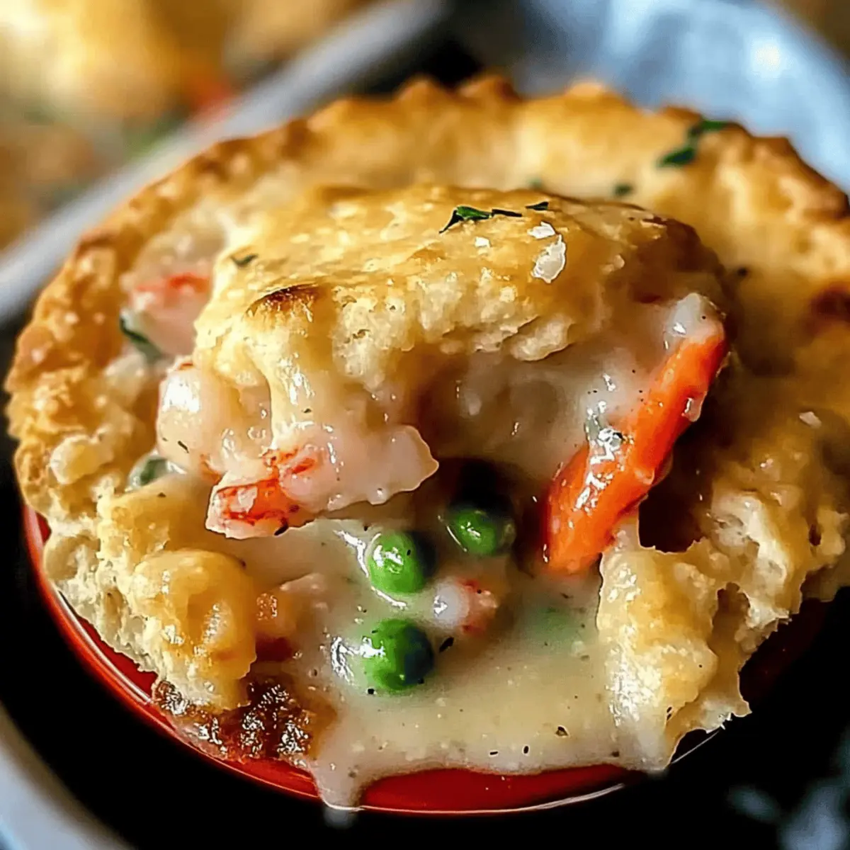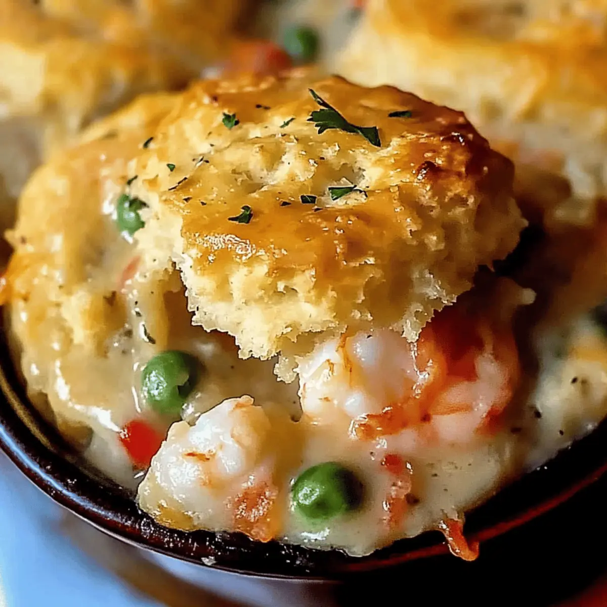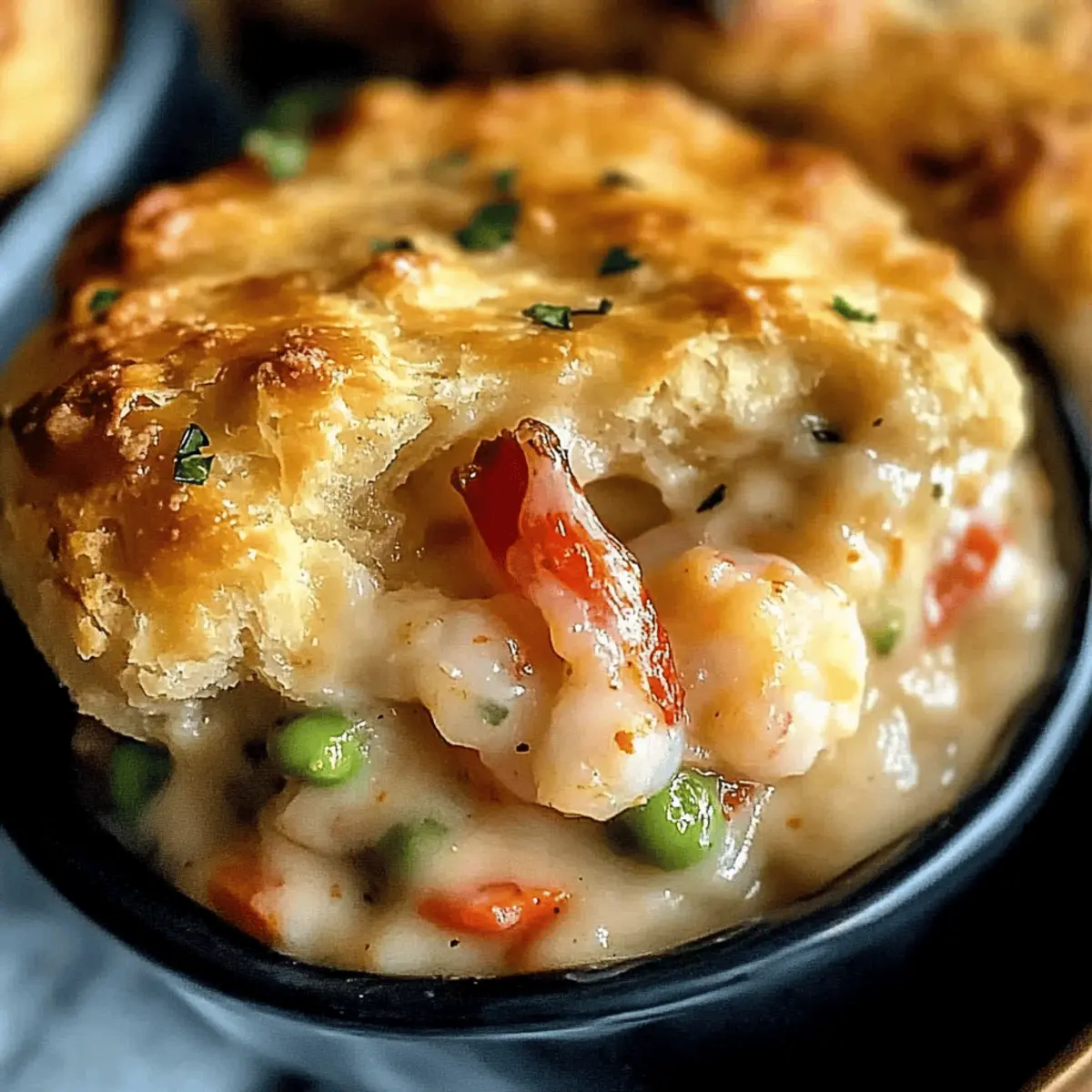 Jump to Recipe Print RecipeAs the sun dips below the horizon, the comforting aroma of something extraordinary wafts through my kitchen, filling me with nostalgia. This Cheddar Bay Biscuit Seafood Pot Pie has become my go-to dish, enveloping creamy shrimp, sweet crab, and colorful veggies in a golden, fluffy blanket. Perfect for cozy family dinners or a gathering with friends, this dish is not only quick to whip up but also a surefire crowd-pleaser. The crunchy biscuits on top create a delightful contrast to the rich filling, providing that essential comfort food vibe we all crave. Whether you’re a seasoned chef or just starting your culinary journey, this pot pie will elevate your dinner game. Curiosity piqued? Let’s dive into how to create this seafood masterpiece! Why is this pot pie so special? Comforting, this Cheddar Bay Biscuit Seafood Pot Pie redefines cozy meals with its creamy filling and flaky biscuit topping. Versatile, you can easily swap out ingredients, like using lobster or chicken for a twist. Time-saving, it’s a quick recipe that satisfies those busy weeknights without compromising on flavor. Crowd-pleasing, party guests and family alike will adore this dish! And if you’re craving more potato goodness, check out my Cheesy Ranch Potatoes or those delightful Potato Wedges Inside. It truly is the ultimate comfort food experience! Cheddar Bay Biscuit Seafood Pot Pie Ingredients For the Filling Cooked Shrimp – Use fresh or frozen shrimp, thawed to ensure a vibrant seafood flavor. Crab Meat – Adds sweetness and richness to the filling; imitation crab is a budget-friendly alternative. Frozen Peas and Carrots Blend – Provides color and nutrition; feel free to swap with fresh vegetables if preferred. Diced Celery – Brings crunch and an aromatic touch; replace with diced bell peppers for a different flavor. Diced Onion – Enhances the savory depth; shallots can serve as a suitable substitute. Butter – Essential for sautéing and flavor; olive oil works well for a dairy-free option. All-Purpose Flour – Thickens the filling beautifully; use gluten-free flour for an accommodating version. Seafood Broth – Serves as the flavor-packed base; chicken broth can be used if seafood broth is unavailable. Heavy Cream – Adds luxurious creaminess; substitute with half-and-half or a non-dairy alternative for lighter fare. Garlic Powder – Infuses depth of flavor; feel free to use minced fresh garlic as an alternative. Old Bay Seasoning – Key for that classic seafood essence; a mix of paprika and cayenne can mimic its taste. Salt and Pepper – Adjust to taste. For the Biscuit Topping Refrigerated Cheddar Bay Biscuits – The fluffy and cheesy star topping for your pot pie; homemade biscuit dough can be a delightful substitute. Shredded Cheddar Cheese – Adds an extra layer of flavor to the biscuits; try mozzarella for a fun variation. Step‑by‑Step Instructions for Cheddar Bay Biscuit Seafood Pot Pie Step 1: Preheat Oven Begin by preheating your oven to 375°F (190°C). This temperature is crucial for achieving the perfect golden-brown biscuits atop your Cheddar Bay Biscuit Seafood Pot Pie. Use a reliable oven thermometer to ensure accuracy, and let it heat up while you prepare the filling. Step 2: Sauté Vegetables In a large skillet, melt 2 tablespoons of butter over medium heat. Add the diced onions and celery, stirring frequently until the vegetables are translucent, about 5-7 minutes. This step is essential for developing the flavors in your pot pie, so keep an eye on them to prevent burning. Step 3: Make Roux Once the vegetables are softened, sprinkle 1/4 cup of all-purpose flour into the skillet. Stir constantly for 1-2 minutes until the mixture forms a thick paste and turns slightly golden. This roux will help thicken the creamy filling of your Cheddar Bay Biscuit Seafood Pot Pie. Step 4: Add Liquids Gradually whisk in 2 cups of seafood broth and 1 cup of heavy cream to the roux. Continue stirring until the mixture becomes smooth and thickens, about 4-5 minutes. You’ll know it’s ready when it coats the back of a spoon. Remove from heat once done. Step 5: Season Filling Stir in 1 teaspoon each of garlic powder, Old Bay seasoning, salt, and pepper into the creamy filling. This seasoning will elevate the flavors of the seafood and vegetables, creating that classic taste you expect in a Cheddar Bay Biscuit Seafood Pot Pie. Step 6: Incorporate Seafood Gently fold in 1 cup of cooked shrimp, 1 cup of crab meat, and 1 cup of frozen peas and carrots into the filling mix. Ensure everything is evenly distributed, then set the skillet aside. This step adds a delightful richness and texture to your pot pie filling. Step 7: Transfer Filling Pour the creamy seafood mixture into a 9-inch pie dish. Spread it evenly to create a solid base for your Cheddar Bay Biscuit Seafood Pot Pie. The filling should be just below the rim to allow space for the biscuit topping. Step 8: Prepare Biscuits Following package instructions for the refrigerated Cheddar Bay biscuits, prepare the dough in a mixing bowl. Stir in 1 cup of shredded cheddar cheese to add an extra cheesy layer to your biscuits, enhancing the overall flavor of the pot pie. Step 9: Top Filling Spoon the biscuit dough over the seafood mixture in the pie dish, ensuring an even distribution. Leave some space between spoonfuls to allow the biscuits to rise and become fluffy as they bake. This topping is what makes yourCheddar Bay Biscuit Seafood Pot Pie truly special. Step 10: Bake Place the pie dish in the preheated oven and bake for 30-40 minutes. Keep an eye on the biscuits as they bake, looking for the tops to turn golden brown and the filling to bubble underneath. This perfect crust will let you know it’s time to enjoy. Step 11: Cool and Serve Once baked, remove the pot pie from the oven and let it cool for 10-15 minutes before serving. This cooling period helps the filling set slightly, making it easier to serve. T