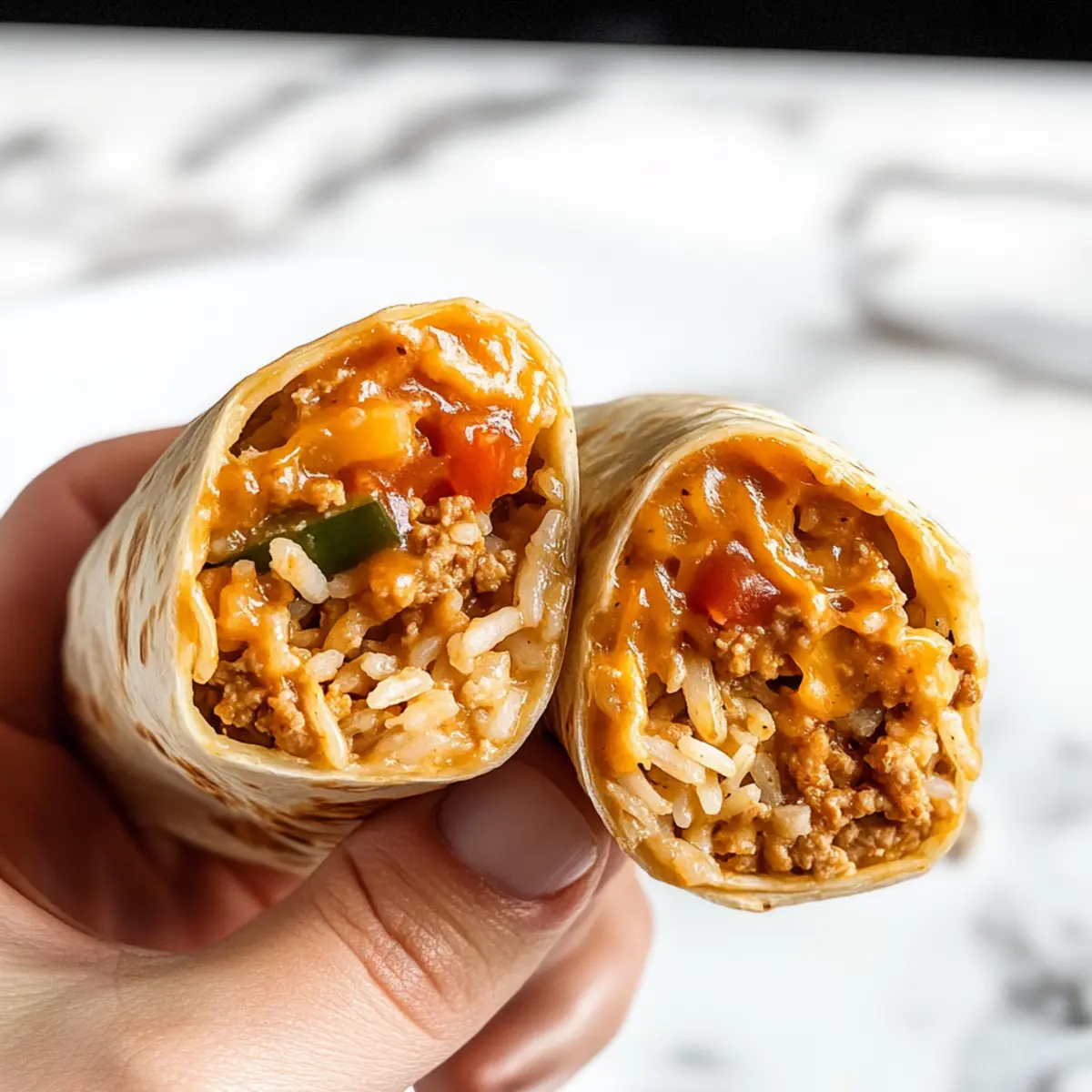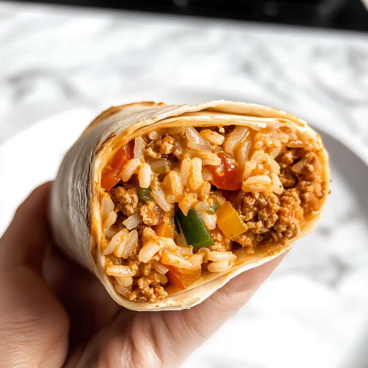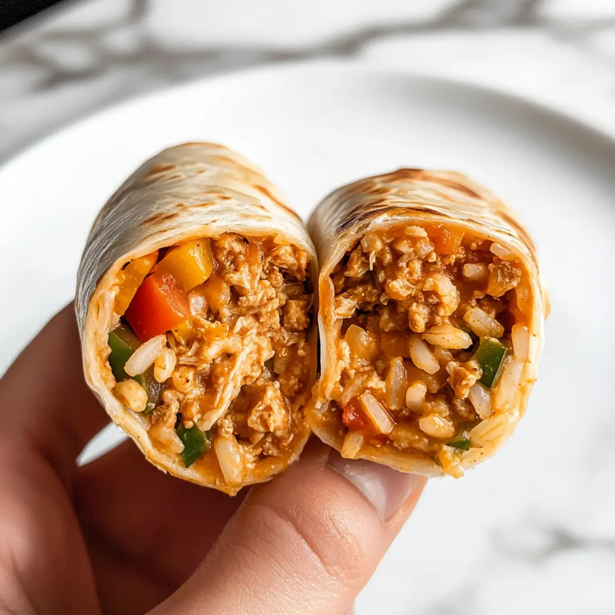 Jump to Recipe Print RecipeOne evening, as I scoured my fridge for something to whip up, the idea of Cheesy Ground Chicken and Rice Burritos sparked excitement in me. This quick and customizable weeknight dinner has become a household favorite, thanks to its balance of savory ground chicken, vibrant veggies, and gooey cheese wrapped snugly in a toasted tortilla. Not only are they incredibly easy to prepare, but they also cater to every family member’s taste buds, making them perfect for picky eaters or adventurous palates alike. Whether you’re in the mood for mild or spicy, these burritos welcome your unique twist with open arms. Ready to transform your weeknight meals into a Tex-Mex fiesta? Let’s dive in! Why Are These Burritos a Must-Try? Satisfying Comfort Food: These Cheesy Ground Chicken and Rice Burritos are perfect for busy weeknights. Filled with seasoned chicken and melty cheese, they deliver a comforting, flavorful punch! Customizable Ingredients: Change up the filling with black beans or corn, or even use shredded rotisserie chicken for a quicker option! Kid-Friendly Appeal: Whether your little ones are picky eaters or food adventurers, this dish suits all tastes. It’s a surefire way to get everyone excited about dinner. Quick Preparation: With minimal cooking time, you can whip these up in no time! Ideal when you’re short on time yet craving something homemade and delicious. Crispy Perfection: Enjoy a golden, crispy exterior that beautifully contrasts with the creamy, cheesy filling—each bite is a flavor explosion! Transform your ordinary weeknight dinners into an unforgettable experience with these delightful burritos. For more easy and delicious options, check out my Cheesy Chicken Wrap or Bbq Chicken Mac. Cheesy Ground Chicken and Rice Burritos Ingredients For the Filling • Avocado or Olive Oil – Provides necessary fat for cooking; vegetable oil makes a great alternative. • Ground Chicken – The star protein; flavorful and quick to prepare—ground turkey or lean beef can be substituted. • Red Bell Pepper – Adds sweet, vibrant color; you can swap in green, yellow, or orange peppers if preferred. • White Onion – Lends savory flavor to the mix; yellow onion works just as well. • Jalapeño Pepper (optional) – Introduces heat and depth; feel free to omit for a milder taste. • Garlic Powder – Enriches the flavor profile; fresh garlic can easily be used but in smaller quantities. • Chili Powder – Brings warmth to the dish; adjust the amount based on your family’s spice preference. • Kosher Salt – Essential for seasoning; you can use table salt, but it may require slight adjustments. • Ground Cumin – Adds a warm, earthy essence; it can be omitted if you’re out, but it enhances the flavor nicely. • Cooked Rice – Binds the filling together while adding bulk; use white, brown, or even leftover rice. • Salsa Verde – Provides moisture and zest; feel free to substitute with another favorite salsa or green chiles. • Chipotle Sauce – Adds a smoky kick; you can also use minced chipotles in adobo or omit it for a milder dish. • Shredded Cheddar Cheese – Delivers creaminess and flavor; any cheese you fancy will work well here. • Shredded Monterey Jack Cheese – Offers a creamy texture; can be replaced with your favorite cheese blend. • Extra Large Flour Tortillas – Perfect for wrapping the delicious filling; consider corn or whole-grain options if you prefer. Get ready to make these Cheesy Ground Chicken and Rice Burritos the star of your weeknight dinners! Step‑by‑Step Instructions for Cheesy Ground Chicken and Rice Burritos Step 1: Cook Chicken and Vegetables In a large skillet, heat 2 tablespoons of avocado or olive oil over medium heat. Once shimmering, add 1 pound of ground chicken, 1 diced red bell pepper, 1 chopped white onion, and optional chopped jalapeño. Sauté for 7-8 minutes, breaking the chicken apart, until it is browned and the vegetables are tender and fragrant. Step 2: Add Seasonings Sprinkle in 1 teaspoon of garlic powder, 2 teaspoons of chili powder, 1 teaspoon of kosher salt, and 1 teaspoon of ground cumin into the skillet. Stir well and continue to cook for an additional 1-2 minutes until the spices are fragrant and evenly distributed, ensuring your Cheesy Ground Chicken and Rice Burritos are packed with flavor. Step 3: Combine Filling Add 2 cups of cooked rice, ½ cup of salsa verde, and 1 tablespoon of chipotle sauce to the skillet, mixing thoroughly to combine all ingredients. Cook for about 2-3 minutes, allowing the mixture to heat through and meld the flavors together. Taste and adjust seasonings if necessary to achieve your desired flavor profile. Step 4: Assemble Burritos On an extra-large flour tortilla, create a base layer with ½ cup of shredded cheese, followed by a generous portion of your flavorful filling. Top with another sprinkle of cheese for extra creaminess. Carefully fold in the sides, then roll the tortilla tightly from the bottom to encase the filling completely. Step 5: Toast the Burritos Heat a nonstick pan over medium heat and place the burrito seam-side down. Toast for about 3-4 minutes until the bottom is golden brown and crispy. Flip and toast the other side for an additional 3-4 minutes until both sides are beautifully crisp, ensuring that the centers are heated through and the cheese melts. Step 6: Serve Remove the burritos from the pan and let them sit for a minute before slicing in half. Serve these delightful Cheesy Ground Chicken and Rice Burritos with your choice of sides like sour cream, salsa, or guacamole, and perhaps a handful of tortilla chips for extra crunch. Enjoy your Tex-Mex feast! Cheesy Ground Chicken and Rice Burritos Variations Feel free to get creative with your Cheesy Ground Chicken and Rice Burritos! These delicious wraps are perfect for adding your own personal touch. Black Beans Boost: Stir in a can of black beans for extra fiber and a he
