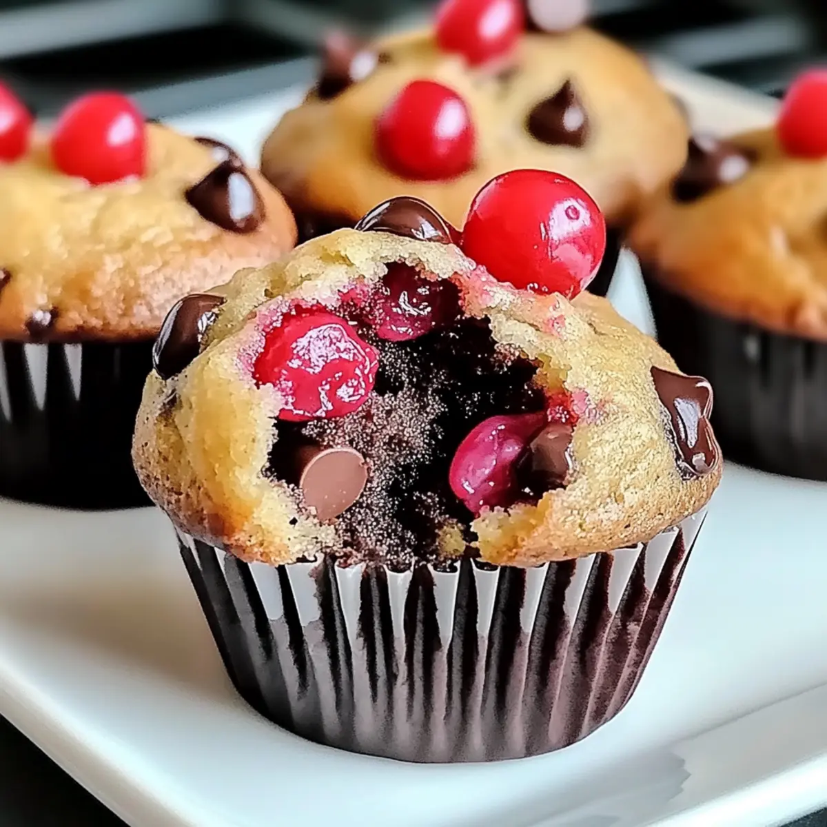 Delicious Cherry Chocolate Chip Muffins combining sweet cherries and rich chocolate chips, perfect for breakfast or a snack.