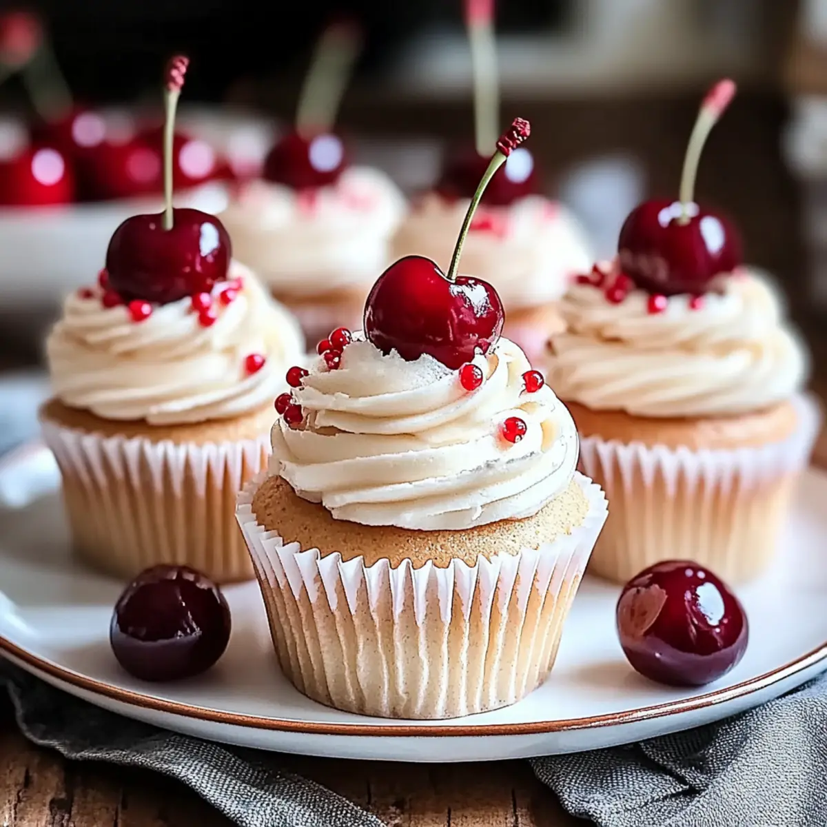 Jump to Recipe Print RecipeAs I sat watching the clouds drift lazily above, a sudden craving for something sweet and tart hit me—a lightbulb moment sparked in the kitchen! What better way to satisfy that craving than with Cherry Vanilla Cupcakes? This recipe brings together the comforting embrace of vanilla with the vibrant pop of cherries, delivering a treat that feels both nostalgic and refreshing. The best part? These cupcakes are not only a visually stunning addition to any gathering, but they are also adaptable enough for any dietary preference—from chocolate lovers to those seeking a vegan twist. Quick to prepare, they promise to make any occasion feel special without keeping you in the kitchen for hours. Are you ready to dive into a world of delightful flavors? Let’s get baking! Why are Cherry Vanilla Cupcakes unforgettable? Delightful balance: The combination of sweet vanilla and tart cherries creates a flavor profile that’s simply irresistible. Easily adaptable: Whether you crave a chocolate twist or a vegan version, this recipe has you covered. Quick prep time: Ready in about 30 minutes, these cupcakes fit perfectly into any busy schedule. Visual appeal: Topped with bright red cherries, they look as fantastic as they taste, making them perfect for celebrations. Crowd-pleaser: Everyone from kids to adults will adore their fluffy texture and vibrant flavor, ensuring they vanish from the platter! For more delightful recipes, check out this Cherry Cheese Danish for a wonderful dessert idea! Cherry Vanilla Cupcake Ingredients • Here’s what you need to create these delicious Cherry Vanilla Cupcakes: For the Cupcakes All-Purpose Flour – Provides structure to the cupcakes; substitute with gluten-free flour for a gluten-free version. Granulated Sugar – Adds sweetness and moisture; use coconut sugar for a healthier option. Unsalted Butter – Contributes rich flavor and moistness; can be replaced by vegetable oil for a dairy-free version. Eggs – Binds the batter together; substitute with flaxseed meal mixed with water for a vegan option. Vanilla Extract – Enhances flavor; almond extract can be used for a delightful twist. Whole Milk – Adds moisture; swap with almond or coconut milk for dairy-free cupcakes. Baking Powder – Acts as a leavening agent, helping the cupcakes rise; ensure it’s fresh for the best results. Salt – Balances the sweetness; essential for enhancing the overall flavor. Fresh Cherries – Adds tartness and texture; canned cherries can be used, but ensure they’re drained for best results. For the Frosting Powdered Sugar – Sweetens the frosting; use less if you prefer a less sweet topping. Cherry Juice – Provides flavor and color to the frosting; substitute with any berry juice for a delightful alternative. Optional: Additional cherries for garnish – Makes them extra special and beautiful! Dive into these Cherry Vanilla Cupcakes and let their vibrant flavors and easy-to-follow recipe brighten your baking adventures! Step‑by‑Step Instructions for Cherry Vanilla Cupcakes Step 1: Preheat and Prepare Begin by preheating your oven to 350°F (175°C). While the oven heats, grab a cupcake tin and line it with colorful paper liners, which will add a delightful touch to your Cherry Vanilla Cupcakes. Make sure you have all your ingredients ready for a smooth baking experience! Step 2: Cream the Butter and Sugar In a large mixing bowl, combine softened unsalted butter and granulated sugar. Use a hand mixer to beat them together on medium speed for about 3-4 minutes, until the mixture is light, fluffy, and pale in color. This step is crucial for ensuring your cupcakes are moist and airy. Step 3: Incorporate Eggs and Vanilla Next, add the eggs one at a time to your butter-sugar mixture, mixing thoroughly after each addition. Then, pour in the vanilla extract, continuing to beat the mixture until it is well combined. The liquid ingredients will contribute to the luscious texture of your Cherry Vanilla Cupcakes. Step 4: Combine Dry Ingredients In a separate bowl, whisk together the all-purpose flour, baking powder, and salt. This step ensures that your leavening agent is evenly distributed, so your cupcakes rise perfectly. Once combined, gradually add this dry mixture to the wet ingredients in your mixing bowl. Step 5: Alternate with Milk As you mix, alternate adding the dry ingredients and milk into the batter, starting and ending with the flour mixture. Mix until just combined; over-mixing can lead to dense cupcakes. The batter should be smooth and have a slight sheen, signaling readiness for the cherries! Step 6: Fold in Cherries Gently fold in the halved fresh cherries with a spatula, ensuring they are evenly distributed throughout the batter. This step will add bursts of flavor and texture to your Cherry Vanilla Cupcakes, making each bite a delightful surprise. Step 7: Fill the Liners Using a spoon or a measuring cup, fill each cupcake liner about two-thirds full with the batter. This gives the cupcakes room to rise without overflowing. Place the filled tin into your preheated oven and watch the magic happen! Step 8: Bake to Perfection Bake the cupcakes for 18-20 minutes, or until a toothpick inserted in the center comes out clean. The tops should be lightly golden, and a gentle spring back when pressed will indicate they are done. Keep an eye on them as they bake; you want them fluffy and light. Step 9: Cool Before Frosting Once baked, remove the tin from the oven and let it cool for 10-15 minutes. Carefully transfer the cupcakes to a wire rack to cool completely. Proper cooling is essential; frosting warm cupcakes can cause the frosting to melt and lose its beautiful shape. Step 10: Make the Frosting While the cupcakes cool, prepare the frosting by whisking together powdered sugar and cherry juice until smooth. Adjust the consistency by adding more powdered sugar if too thin or more cherry juice if too thick. This cherry-infused frosting wi