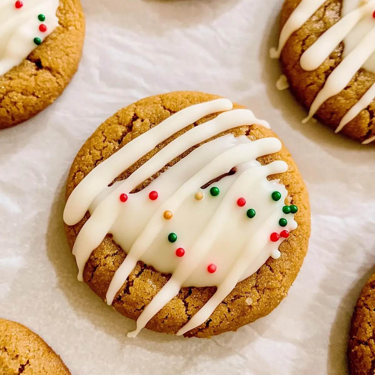 Jump to Recipe Print RecipeThe scent of cinnamon swirls through the air, instantly transporting me to cherished holiday memories, filled with laughter and sweet treats. Today, I’m excited to share my recipe for Chewy Maple Cinnamon Cookies, the perfect addition to your festive baking list. With their soft, chewy texture and a delightful white chocolate dip adorned with vibrant sprinkles, these cookies are a simple yet impressive dessert ideal for your cozy gatherings or cookie swaps. Plus, they require just a bowl and spoon, making them not only delicious but quick to whip up! Are you ready to fill your home with the warmth of these delightful cookies? Let’s get baking! What Makes These Cookies So Irresistible? Unmatched Warmth: The delightful aroma of cinnamon and maple fills the air, creating a cozy ambiance perfect for holiday gatherings. Effortlessly Simple: With just a bowl and a spoon, you’ll whip up these delicious cookies in no time. Versatile Treats: Ideal for cookie swaps, dessert boxes, or as a sweet companion to your hot cocoa. Crowd-Pleasing Flavor: The soft, chewy texture complemented by a creamy white chocolate dip satisfies every sweet tooth. Customizable Options: Feel free to experiment! Add peppermint for a festive twist or use gluten-free flour for dietary needs. You can even check out our Lemon Raspberry Cookies for another delightful treat! Chewy Maple Cinnamon Cookie Ingredients • Get ready to gather everything you need for these delightful cookies! For the Cookie Dough Pure Maple Syrup – Adds deep maple flavor; always choose real maple syrup for rich results. Maple Extract – Enhances the maple notes; optional but recommended for extra flavor intensity. Brown Sugar – Contributes to the cookie’s chewiness; substitute with coconut sugar for a different taste. Unsalted Butter – Provides richness and a soft texture; can be replaced with coconut oil for a dairy-free version. Large Egg – Binds the dough together; a flax egg can be used for a vegan alternative. All-Purpose Flour – Forms the structure of the cookies; a gluten-free flour blend works for a gluten-free version. Ground Cinnamon – Adds warmth and spice, elevating the cookie experience. Baking Soda – Provides leavening for a soft, chewy texture. Fine Sea Salt – Balances the sweetness, making the flavors pop. For the Coating White Chocolate Melting Wafers – Offers a creamy finish to the cookies; dark chocolate can be used for a more intense flavor. Holly Berry Sprinkles – Optional decoration that adds a festive touch and makes these Chewy Maple Cinnamon Cookies even more special! Step‑by‑Step Instructions for Chewy Maple Cinnamon Cookies Step 1: Mix Wet Ingredients In a large mixing bowl, melt ½ cup of unsalted butter and blend it with 1 cup of brown sugar, ¼ cup of pure maple syrup, and 1 teaspoon of maple extract using a whisk until smooth and well combined. This should take about 2–3 minutes to achieve a creamy consistency. Then, add in 1 large egg, whisking until fully incorporated to form the base of your Chewy Maple Cinnamon Cookies. Step 2: Combine Dry Ingredients In a separate bowl, whisk together 2 cups of all-purpose flour, 2 teaspoons of ground cinnamon, 1 teaspoon of baking soda, and ½ teaspoon of fine sea salt. This step is crucial for evenly distributing the baking soda and spices throughout the cookies. Once mixed, gradually add this dry mixture to the wet ingredients, stirring until a soft dough forms that is slightly sticky yet cohesive. Step 3: Chill the Dough Cover the cookie dough with plastic wrap and refrigerate it for at least 30 minutes. This chilling period is essential as it allows the flavors to meld and helps maintain the thickness of the cookies during baking. In the meantime, you can preheat your oven to 350°F (175°C) so it’s ready for baking when the dough is chilled. Step 4: Prepare the Baking Sheet While the dough is chilling, line a light-colored baking sheet with parchment paper to prevent over-browning. Once the oven has reached the desired temperature and the dough has cooled, remove it from the fridge. This is the perfect time to prepare for scooping the Chewy Maple Cinnamon Cookies onto the baking sheet. Step 5: Shape the Cookies Using a cookie scoop, portion out 1.5-ounce balls of dough and carefully place them on the prepared baking sheet, leaving about 2 inches of space between each ball. This spacing is important to ensure the cookies don’t merge while baking. You should aim to have about 12 balls on the sheet, ready for the oven. Step 6: Bake the Cookies Bake the dough in the preheated oven for 10 to 12 minutes, or until the edges are set while the centers remain slightly puffy and soft. Avoid waiting for brown edges, as the cookies will continue to firm up once removed from the oven. Keep an eye on them to ensure you achieve that perfect chewy texture! Step 7: Cool the Cookies After removing the baking sheet from the oven, let the cookies cool on the sheet for about 5 minutes. This will allow them to firm up a bit before transferring them to a cooling rack. Once they’ve set, use a spatula to gently lift them and place on the rack to cool completely while you prepare the chocolate coating. Step 8: Melt the Chocolate In a microwave-safe bowl, combine white chocolate melting wafers and melt them in the microwave at half power in 30-second intervals, stirring between each until smooth. This should take about 1–2 minutes total. It’s important to avoid overheating the chocolate to achieve a glossy finish for your Chewy Maple Cinnamon Cookies. Step 9: Dip the Cookies Once the chocolate has melted, dip half of each cooled cookie into the melted white chocolate, then place them back on the parchment-lined baking sheet. Make sure to gently shake off any excess chocolate for a neat finish. The glossy dip will provide a lovely touch to each cookie and enhance their festive appeal. Step 10: Add Sprinkles and Set Drizzle any remain