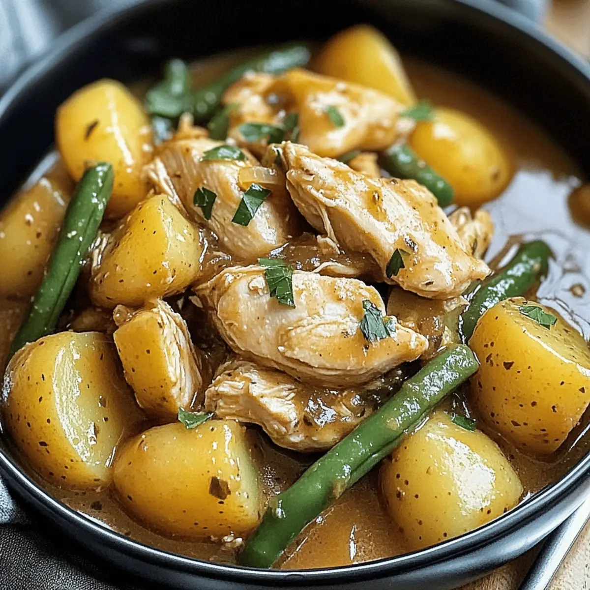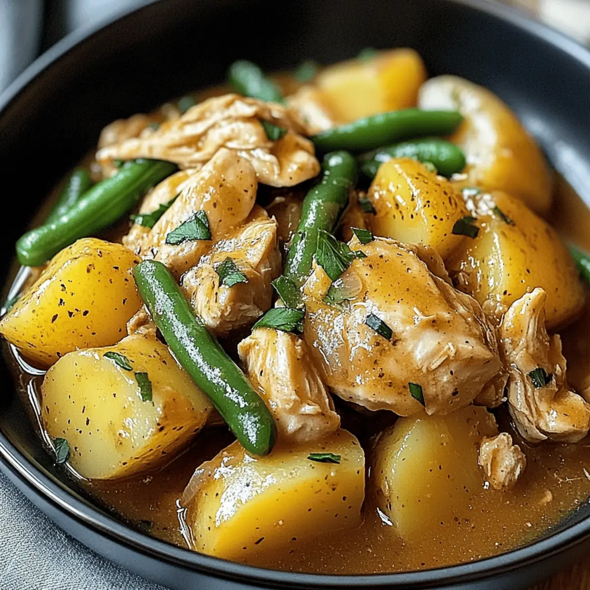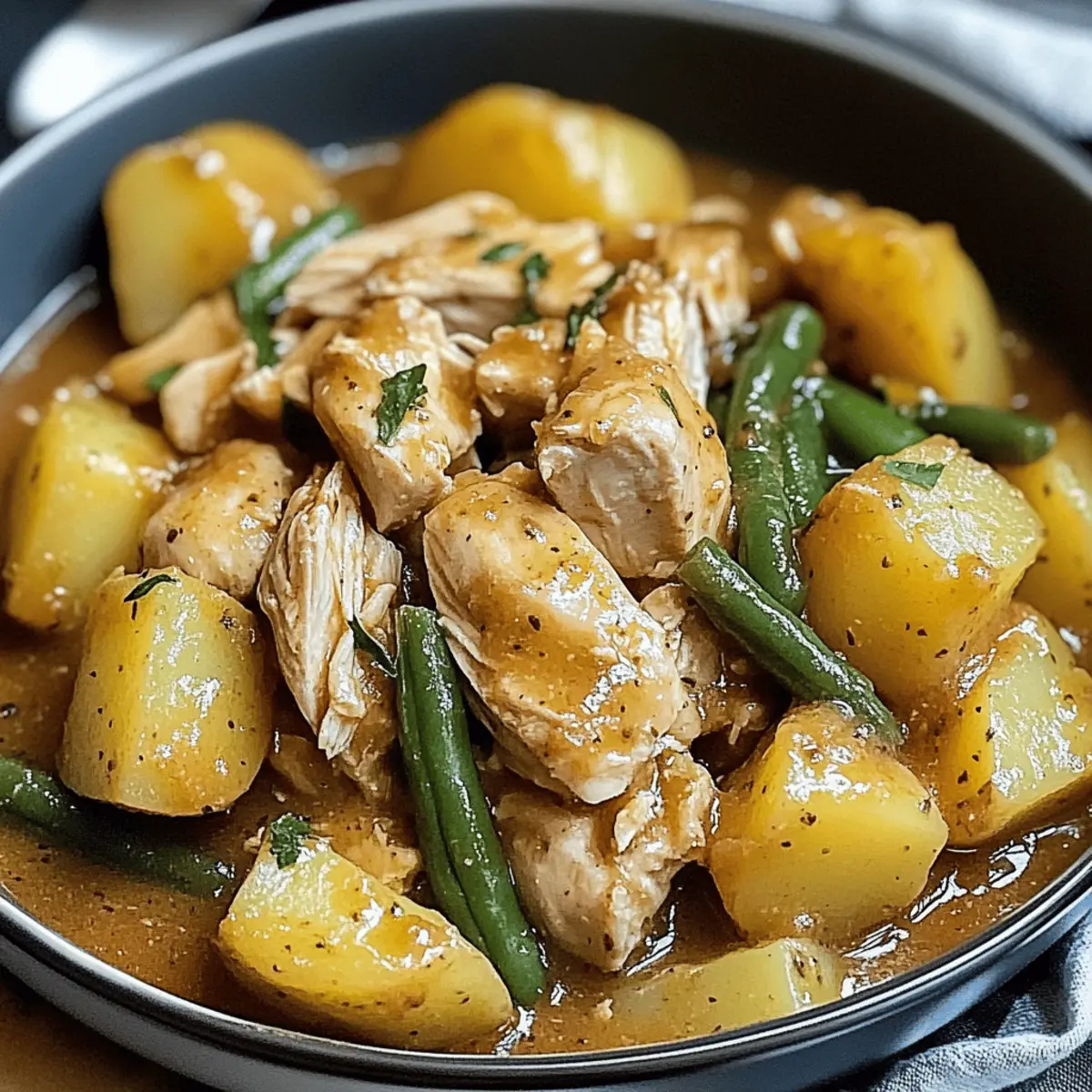 Jump to Recipe Print RecipeThe aroma that wafts through the kitchen when you come home to slow-cooked goodness is nothing short of magical. That’s exactly what I experience each time I make this Slow Cooker Chicken and Potatoes with Green Beans—a comforting dish that’s become my go-to for busy weeknights. It’s not just about the juicy chicken and creamy potatoes; the tenderness of the green beans adds a touch of vibrancy that finishes it all off perfectly. What’s even better? This recipe is incredibly easy and customizable, sparing you the hassle of meal prep stress while ensuring your family enjoys a hearty, satisfying dinner. Whether you’re a seasoned home chef or just looking for a cozy comfort food fix, this dish checks all the boxes. Are you ready to embrace those rich flavors and let your slow cooker do the heavy lifting? Why is this recipe a must-try? Simplicity at Its Finest: Just a few ingredients come together in your slow cooker for a delicious meal. Flavorful and Comforting: Juicy chicken, creamy potatoes, and vibrant green beans create a symphony of flavors that satisfy every palate. Customizable Options: Feel free to swap out ingredients; whether you prefer sweet potatoes or extra veggies like mushrooms, this recipe adjusts easily to your tastes. Time-Saving Delight: Prep in minutes and let your slow cooker do the work. You’ll have more time to relax or catch up on the day! Family-Friendly Appeal: Everyone will love this dish, making it perfect for dinner gatherings or busy weeknights. Plus, you can pair it with warm dinner rolls for a complete meal experience. If you’re looking for more delicious comfort food ideas, check out my Honey Pepper Chicken or the savory goodness of Chicken Broccoli Sizzling. Chicken and Potatoes with Green Beans Ingredients This easy recipe has the perfect combination of flavors and textures! For the Chicken Chicken Breasts (4 boneless skinless) – A lean and juicy protein; substitute with boneless thighs for a richer taste. For the Vegetables Baby Potatoes (1 ½ lbs, halved) – Provides a creamy base; choose Yukon gold or red potatoes for best results to prevent mushiness. Green Beans (12 oz, trimmed) – Adds vibrant color and crunch; can also use frozen green beans, adding them in the last 20-30 minutes for best results. For the Seasoning Olive Oil (3 tbsp) – Helps the seasonings adhere while adding healthy fats. Garlic (4 cloves, minced) – Infuses the broth with aromatic flavor; always opt for fresh if available. Italian Seasoning (1 tbsp) – Adds a delightful herby depth; swap with fresh herbs like thyme or rosemary for variation. Onion Powder (1 tsp) – Enhances the overall flavor profile. Salt and Pepper – Essential for tasting and balancing flavors. For the Broth Low-Sodium Chicken Broth (½ cup) – Forms the cooking liquid, enhancing flavor without excess sodium. For the Finishing Touch Butter (2 tbsp, cut into chunks) – Adds creamy richness to the dish. Lemon Juice (from 1 lemon, plus wedges for serving) – Brightens the flavors; adjust according to personal taste or omit altogether. Embrace this delightful Chicken and Potatoes with Green Beans recipe to create a comforting family meal! Step‑by‑Step Instructions for Chicken and Potatoes with Green Beans Step 1: Season the Chicken In a mixing bowl, combine olive oil, minced garlic, Italian seasoning, onion powder, salt, pepper, and lemon juice to create a flavorful rub. Ensure your chicken breasts are coated thoroughly, allowing the mixture to soak in. If you have the time, let it marinate for at least 15 minutes to enhance the flavors, making your Chicken and Potatoes with Green Beans even more delicious. Step 2: Load the Slow Cooker Spray your slow cooker with non-stick cooking spray for easy cleanup. Layer the halved baby potatoes at the bottom, sprinkling them with additional salt and pepper for flavor. Gently place the seasoned chicken on top of the potatoes. Then pour in the low-sodium chicken broth, allowing it to cover the potatoes, and scatter the butter chunks evenly over the chicken to enhance richness. Step 3: Cook Cover the slow cooker with its lid and set it to COOK on LOW for 6 to 7 hours or HIGH for 3 to 4 hours. During this time, the chicken will become tender and the potatoes creamy, as the aroma of your Chicken and Potatoes with Green Beans fills the kitchen. Test the chicken for doneness, ensuring it reaches an internal temperature of 165°F. Step 4: Add Green Beans About 30 minutes before the cooking time finishes, carefully open the slow cooker and add the trimmed green beans over the top of the chicken and potatoes. Re-cover the slow cooker and continue to cook, allowing the vibrant green beans to steam until they become bright green and tender, enhancing the visual appeal and flavor of your dish. Step 5: Serve Once everything is perfectly cooked, gently transfer the chicken, potatoes, and green beans onto plates. Spoon a little of the buttery broth over the dish for extra flavor. For a fresh finish, squeeze lemon juice over each serving and garnish with optional parsley if you desire. Your Chicken and Potatoes with Green Beans is now ready to enjoy! Chicken and Potatoes with Green Beans Variations Feel free to get creative and personalize this dish to suit your taste preferences and dietary needs! Sweet Potatoes: Swap regular potatoes for sweet potatoes for a touch of sweetness and extra nutrients. The flavor contrast is simply delightful! Bone-In Chicken: Use bone-in chicken pieces for more depth of flavor; just remember to adjust the cooking time accordingly, allowing them to become tender and juicy. Extra Veggies: Add chopped mushrooms, bell peppers, or onions to the slow cooker. This will beautifully enhance the meal’s flavor profile, creating a heartier feast for everyone. Herb Swap: Replace Italian seasoning with fresh herbs like thyme, rosemary, or even dill to provide a different twist on this comforting dish. Fresh herb