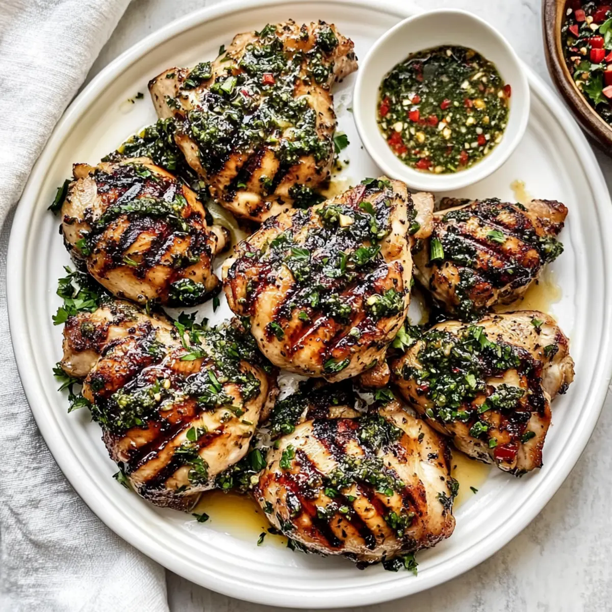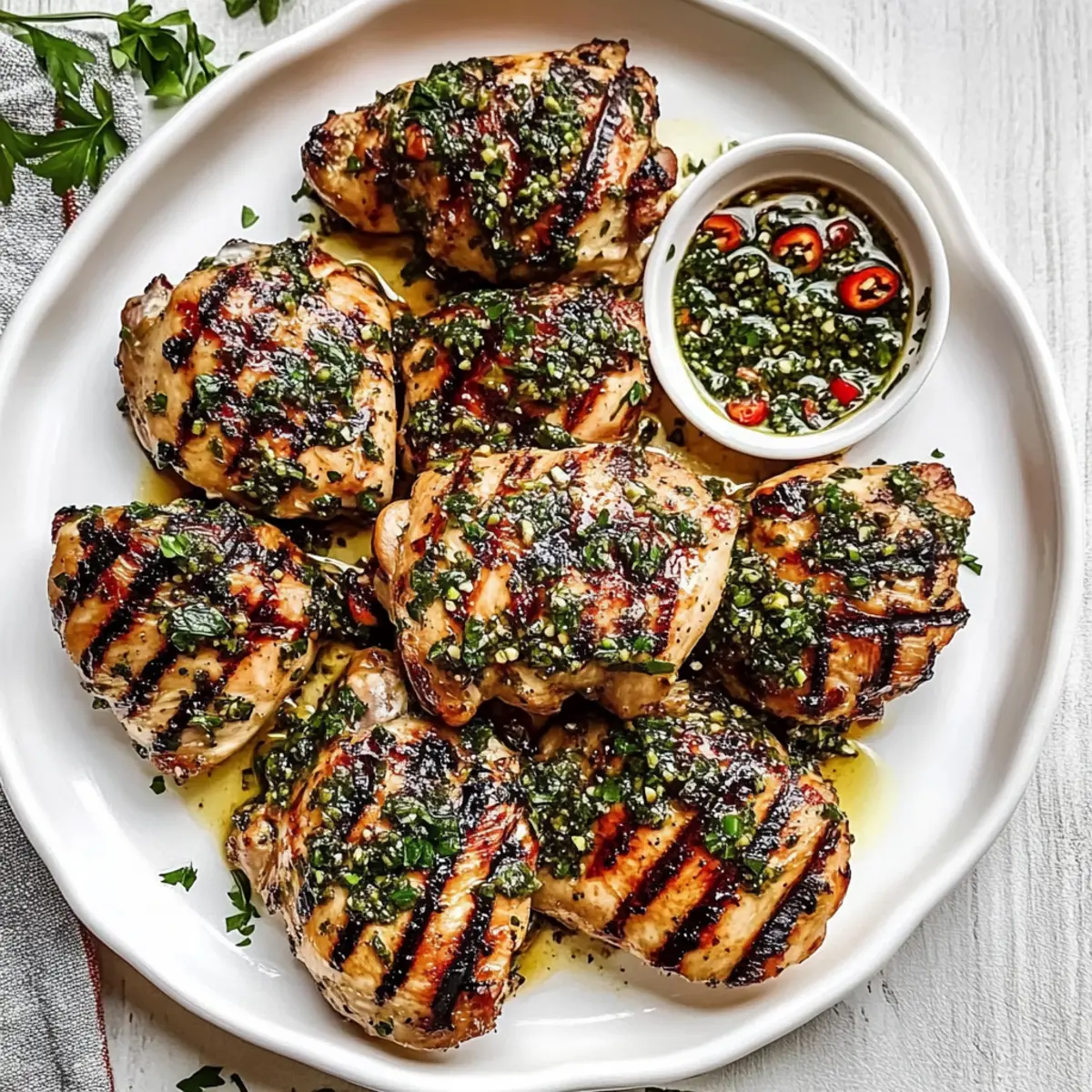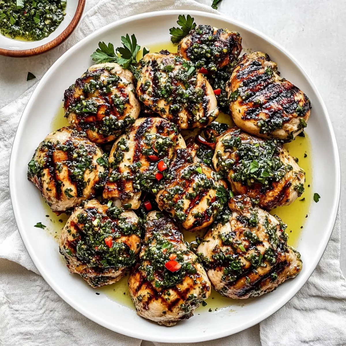 Jump to Recipe Print RecipeAs the sun begins to set and the scent of summer fills the air, I find myself reaching for my trusty grill to create a meal that’s both satisfying and refreshing. Introducing my Grilled Chimichurri Chicken, a recipe that perfectly captures the essence of outdoor dining! This juicy chicken, kissed by flames and drizzled with a vibrant chimichurri sauce, is your answer to quick, healthy summer dinners. With minimal prep time and minimal fuss, you can create a dish that dazzles the taste buds and uplifts the spirit. Imagine serving this at your next barbecue or sharing with family on a weeknight—it’s a sure crowd-pleaser that keeps everyone coming back for seconds. Curious how to unlock that fresh flavor with each bite? Let’s dive in! Why is Chimichurri Chicken a Must-Try? Quick and Easy: This recipe comes together in no time, making it perfect for busy weeknights or spontaneous summer gatherings. Healthy Delight: Packed with lean protein and fresh herbs, it’s a guilt-free option that’s also gluten-free and dairy-free. Flavor Explosion: The chimichurri sauce sends your taste buds on a culinary adventure, combining garlic, fresh parsley, and a hint of spice. Versatile: Think outside the box! Use the chimichurri not only for chicken but also for steak or fish, expanding your summer menu. Crowd Favorite: Serve this dish alongside grilled veggies or a fresh salad topped with chimichurri, and watch it disappear at your next barbecue! It’s the ultimate way to impress friends and family. Chimichurri Chicken Ingredients • Discover the essentials for a vibrant meal! For the Chicken • Chicken Thighs – Juicy, moist meat that stands up to grilling; substitute with chicken breasts if preferred. For the Chimichurri Sauce • Parsley – Fresh, flat-leaf parsley creates the backbone flavor; avoid curly parsley for best results. • Oregano – Adds depth to the sauce; use fresh for a bright taste or dried in a pinch. • Red Chili Pepper – Delivers a hint of heat; red pepper flakes work as a suitable substitute. • Garlic – Infuses bold flavor into the chimichurri; feel free to adjust the quantity based on your garlic affinity. • Extra Virgin Olive Oil – Rich base for the sauce; opt for quality oil to elevate the dish. • Red Wine Vinegar – Provides acidity that balances the sauce; white wine vinegar or lemon juice can be great alternatives. • Kosher Salt – Essential for enhancing all flavors in the dish. • Black Pepper – Adds a gentle kick, rounding out the flavor profile. With these Chimichurri Chicken ingredients at the ready, you’re on your way to a delightful summer meal that’s sure to be adored by all! Step‑by‑Step Instructions for Chimichurri Chicken Step 1: Make the Chimichurri Sauce In a medium bowl, combine 1 cup of finely chopped flat-leaf parsley, 2 tablespoons of fresh oregano, 1 finely diced red chili pepper, and 4 minced garlic cloves. Slowly drizzle in ½ cup of extra virgin olive oil, followed by 3 tablespoons of red wine vinegar, and season with 1 teaspoon of kosher salt and ½ teaspoon of black pepper. Mix well until all ingredients are thoroughly blended, creating a vibrant green sauce. Step 2: Marinate Chicken Place 4 chicken thighs in a large mixing bowl or resealable plastic bag. Pour about one-third of the chimichurri sauce over the chicken, ensuring each piece is evenly coated. Seal the bag or cover the bowl, and let the chicken marinate in the refrigerator for 20 to 30 minutes. This allows the flavors to penetrate the meat, enhancing the overall taste of your chimichurri chicken. Step 3: Preheat the Grill While the chicken is marinating, preheat your grill or grill pan to medium-high heat, aiming for around 400°F (200°C). If you’re using a charcoal grill, ensure the coals are glowing and covered with ash. For a gas grill, simply turn on the burners. A properly heated grill will create those beautiful grill marks and help seal in the juices of the chicken. Step 4: Cook the Chicken Carefully place the marinated chicken thighs on the grill. Cook for 4 to 6 minutes on one side, or until the meat turns golden brown and releases easily from the grill. Flip the chicken and grill the other side for an additional 4 to 6 minutes, checking that the internal temperature reaches 165°F (75°C) for safe consumption. The chicken should remain juicy with a slightly crisp exterior. Step 5: Serve with Chimichurri Once the chicken is cooked, transfer it to a serving platter. Drizzle the remaining chimichurri sauce generously over the top of the grilled chicken. The vibrant colors and aromatic scents of your chimichurri chicken will be a feast for the eyes. Optionally, serve with extra chimichurri on the side for dipping or drizzling, enhancing each savory bite with additional flavor. Storage Tips for Chimichurri Chicken Fridge: Store leftover chimichurri chicken in an airtight container for up to 4-5 days. Ensure the chicken is cooled before sealing to preserve freshness. Freezer: For longer storage, freeze the chicken in a freezer-safe container or bag for up to 3 months. When ready to enjoy, thaw in the fridge overnight before reheating. Reheating: To reheat, use the oven at 350°F (175°C) for about 15-20 minutes, or until heated through. Enjoy the chimichurri chicken warm, drizzled with extra sauce for that fresh flavor boost! Chimichurri Sauce Storage: Any leftover chimichurri sauce can also be stored in the fridge, tightly sealed, for up to 2 weeks. It’s great to use as a dip or dressing later! Make Ahead Options These Chimichurri Chicken dishes are perfect for those busy weeknights when time is precious! You can prepare the chimichurri sauce up to 3 days in advance—simply mix all the ingredients and store it in an airtight container in the refrigerator. Marinate the chicken thighs in the chimichurri sauce for up to 24 hours to really enhance the flavor, but avoid marinating for longer to prevent the meat from 