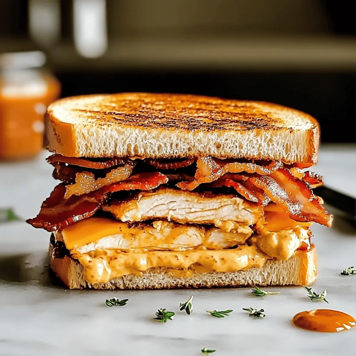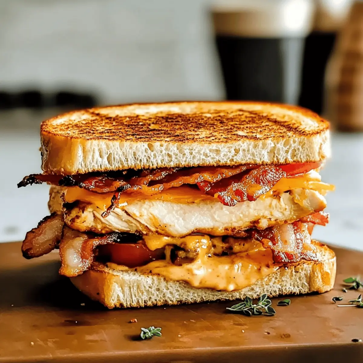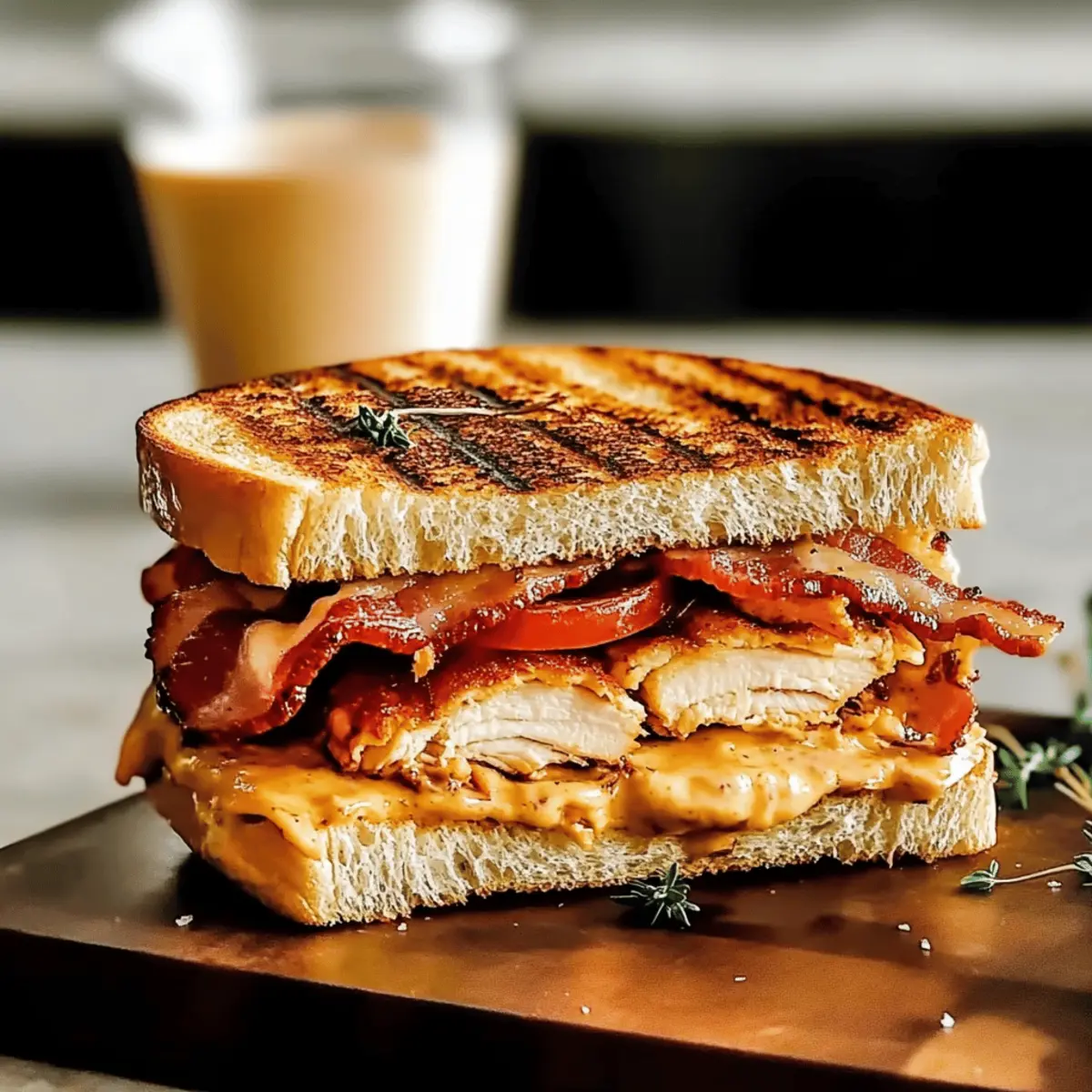 Jump to Recipe Print RecipeAs I rummaged through my fridge one evening, I stumbled upon a colorful assortment of ingredients, each whispering the promise of a flavorful meal. With visions of a hearty Chipotle Chicken Panini dancing in my mind—similar to the beloved version from Panera—I felt a surge of excitement. This recipe not only captivates the essence of that smoky, savory delight but also allows for creative customization with the addition of creamy avocado or gooey mozzarella. A true crowd-pleaser, this panini comes together in no time and transforms an ordinary weeknight dinner into a gourmet experience. Are you ready to take your sandwich game to the next level? Let’s dive into the delicious world of homemade paninis! Why is this Panini a Must-Try? Simplicity at its Best: This recipe features easy steps, perfect for both novice cooks and seasoned chefs alike. Rich, Smoky Flavor: The combination of chipotle mayo and grilled chicken creates a mouthwatering taste that’s a feast for your senses. Versatile Customization: Add bacon, avocado, or fresh mozzarella to make it your own, just like the classic Panera version! Quick and Convenient: Whip it up in under 30 minutes, making it a great option for busy weeknights or lazy weekends. Crowd-Pleasing Delight: Whether for family dinners or casual get-togethers, this panini is sure to impress everyone at the table. Elevate your meal with this delicious Chipotle Chicken Panini and consider pairing it with a side salad for a balanced meal that’s bursting with flavor! Chipotle Chicken Panini Ingredients For the Chipotle Mayo Chipotle Pepper in Adobo Sauce – Use finely chopped for a well-blended sauce that packs a smoky punch. Egg Yolk – Acts as an emulsifier, adding richness and creaminess to the mayo. Neutral Oil (Vegetable or Canola) – Provides a creamy texture; opt for high-quality oil for the best results. Lime Juice – Fresh lime is recommended for a zesty kick; it brightens the flavors. Dijon Mustard – Enhances flavor complexity; choose spicy or smooth based on your preference. Honey – Balances flavors with sweetness; substitute with agave syrup for a vegan option. Smoked Paprika – Introduces deep smoky notes that complement the chipotle. For the Chicken Chicken Breast – The main protein, seasoned and grilled for optimal tenderness. Salt and Pepper – Essential for seasoning the chicken to enhance its flavor. For the Panini Bacon – Offers crispy texture and savory goodness; consider turkey bacon for a lighter version. Cheddar Cheese – Sharp cheddar melts beautifully; it adds a bold flavor that elevates the sandwich. Tomato (beefsteak) – Freshly sliced, it adds juiciness and balance to the panini. Bread (Focaccia, Sourdough, or Italian) – Choose something hearty to provide structure and hold the delicious fillings together. This Chipotle Chicken Panini is a flavor-packed delight, ready to be whipped up in your kitchen! Step‑by‑Step Instructions for Chipotle Chicken Panini Panera Step 1: Prepare the Chipotle Mayo In a medium bowl, whisk together the egg yolk, lime juice, honey, Dijon mustard, salt, and pepper. Gradually drizzle in the neutral oil while continuously whisking until the mixture is thick and emulsified, about 2-3 minutes. Finally, stir in the smoked paprika and finely chopped chipotle pepper in adobo sauce, creating a luscious, creamy chipotle mayo that brings your Chipotle Chicken Panini to life. Step 2: Cook the Chicken Breast Season both sides of the chicken breast with salt and pepper. Preheat your grill or skillet over medium-high heat and cook the chicken for 4–5 minutes on each side, or until fully cooked and no longer pink in the center. The internal temperature should reach 165°F (75°C). Once cooked, remove the chicken from the heat and let it rest for a few minutes before slicing. Step 3: Prepare the Bread and Fillings While the chicken rests, select your hearty bread, such as focaccia or sourdough. Spread a generous layer of the chipotle mayo on one side of each slice of bread, allowing the smoky flavors to infuse into the sandwich. Prepare your fillings by slicing the cooked chicken, crispy bacon, and juicy beefsteak tomato, all set for assembly. Step 4: Assemble the Sandwich Begin layering your Chipotle Chicken Panini by placing the sliced chicken on one mayo-spread slice of bread. Top the chicken with crispy bacon, a slice of sharp cheddar cheese, and fresh tomato slices. Complete the sandwich by placing another slice of bread on top, mayo side in, forming a flavorful and hearty stack. Step 5: Grill the Panini Preheat a skillet or panini press over medium heat. Lightly butter the outsides of the bread to achieve a golden, crispy exterior. Place the assembled sandwich in the skillet or press, cooking for about 3-4 minutes. Flip halfway through grilling to ensure even browning, until the bread is golden and the cheese is melted, creating an irresistible crunch. Step 6: Slice and Serve Allow the Chipotle Chicken Panini to rest for a minute after grilling, which helps to set the gooey cheese and fillings. Slice the panini diagonally with a sharp knife to reveal the luscious layers inside. Serve it hot with a side of extra chipotle mayo for dipping, elevating your homemade experience and delighting your taste buds. What to Serve with Homemade Chipotle Chicken Panini? Transform your delicious panini into a complete meal with these enticing pairings that balance flavors and enhance your dining experience. Crispy Sweet Potato Fries: These golden fries offer a delightful sweetness and crunchy texture that contrast beautifully with the smoky panini. Classic Caesar Salad: A fresh, crunchy salad drizzled with creamy dressing adds a dose of bright flavors and complements the hearty panini. Zesty Coleslaw: This tangy side dish provides crunch and brightness, balancing the richness of the chipotle mayo and melted cheese. Grilled Vegetable Medley: Roasted bell peppers, zucchini, and o