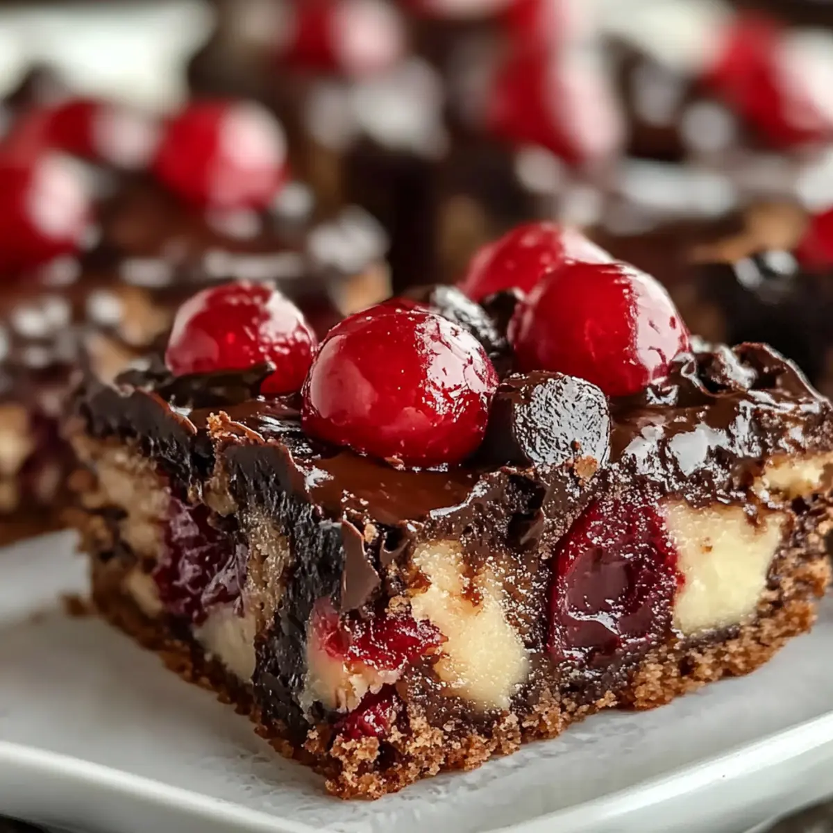 Jump to Recipe Print Recipe“Did you know that a simple combination of chocolate and cherries can bring back the nostalgia of childhood dessert tables? These Chocolate Covered Cherry Magic Bars are not just a trip down memory lane; they’re a quick and easy no-bake treat that you can whip up in less than an hour. Packed with rich chocolate flavor and bursts of fruity sweetness, they’re perfect for satisfying your sweet tooth or impressing guests at your next gathering. Whether you choose classic maraschino cherries or opt for fresh ones for an extra zing, this dessert will surprise and delight anyone who tries it. Ready to add some magic to your dessert repertoire?” Why Are These Magic Bars Unique? Irresistible Flavor: The fusion of rich chocolate and sweet cherries creates a decadent treat that will have everyone coming back for more. Quick & Easy: Made in just 45 minutes, these bars are perfect for a last-minute dessert or a cozy weeknight indulgence. No-Bake Convenience: With a minimal baking phase, you can spend less time in the kitchen and more time enjoying delicious bites. Versatile Variations: Feel free to substitute fresh cherries for a tart twist or even tweak the chocolate chips for a delightful flavor change! Crowd-Pleaser: Whether for potlucks or family gatherings, these bars will surely impress with their delightful taste—perfect for fans of both classic and modern desserts! To explore more delightful desserts, check out my recipes for Blueberry Cheesecake Bars or the delectable Chocolate Croissant Bake that are sure to impress! Chocolate Covered Cherry Magic Bars Ingredients Discover the delightful components that make these bars worthwhile! For the Base All-Purpose Flour – Provides structure; measure precisely by scooping and leveling for the best results. Sugar – Adds the perfect touch of sweetness. Salt – Enhances flavor balance for a richer taste. Baking Powder – Ensures the bars rise slightly for a lighter texture. Unsweetened Cocoa Powder – Adds a deep, rich chocolate flavor. Butter – Binds ingredients together and adds moisture; melt for easy mixing. For the Filling Chocolate Chips – Create delightful pockets of melted goodness; semi-sweet is recommended for balanced sweetness. Vanilla Extract – Elevates the overall flavor profile. Eggs – Binds all ingredients together and adds delicious richness; whip well until combined. Sweetened Condensed Milk – Contributes creamy texture and richness; you can also substitute with coconut milk for a dairy-free version. For the Topping Maraschino Cherries – Deliver juicy bursts of flavor; swap in fresh cherries for a delightful tart twist. Step‑by‑Step Instructions for Chocolate Covered Cherry Magic Bars Step 1: Preheat Your Oven Start by preheating your oven to 350°F (175°C). While the oven warms up, prepare a greased 9×13-inch baking dish to ensure that your Chocolate Covered Cherry Magic Bars come out easily after baking. This initial setup is essential for achieving that perfect golden crust. Step 2: Combine Dry Ingredients In a large mixing bowl, whisk together the all-purpose flour, sugar, salt, baking powder, and unsweetened cocoa powder. This essential step helps to evenly distribute the dry ingredients, which contributes to the texture of your bars. You’re aiming for a uniform mixture that smells like rich chocolate goodness! Step 3: Create the Crust Mixture Melt butter in a microwave-safe bowl, then pour it into your dry ingredients. Stir the mixture until it becomes crumbly. Press this crust mixture firmly into the bottom of the greased baking dish, ensuring even coverage. This forms the delicious, fudgy base for your Chocolate Covered Cherry Magic Bars. Step 4: Add Chocolate Chips Sprinkle the semi-sweet chocolate chips evenly over the crust you just pressed down. This will create delightful pockets of melted chocolate throughout the bars. Make sure to distribute them well for that signature chocolaty goodness in every bite! Step 5: Mix Wet Ingredients In another bowl, whisk together the eggs, vanilla extract, and sweetened condensed milk until the mixture is smooth and combined. This creamy blend is what holds your Chocolate Covered Cherry Magic Bars together, adding richness and moisture. Step 6: Assemble the Bars Pour the egg mixture evenly over the crust and chocolate chips in the baking dish. Gently press halved maraschino cherries on top, lightly submerging them into the mixture. This not only looks appealing but ensures that bursts of sweet cherry flavor will be throughout the bars when baked. Step 7: Bake Place the assembled bars into your preheated oven and bake for 25 to 30 minutes. You’ll know they’re done when the edges are set and a toothpick inserted into the center comes out with moist crumbs. Keep an eye on them to prevent over-baking! Step 8: Cool & Slice Once baked, remove the Chocolate Covered Cherry Magic Bars from the oven and let them cool in the dish for a bit. For best results, transfer them to the fridge and chill for about an hour. This helps firm them up, making it easier to cut them into squares for serving. Expert Tips for Chocolate Covered Cherry Magic Bars Measure Accurately: Precision is key for dry ingredients like flour. Use the scooping and leveling method to avoid a dense texture. Chill Before Cutting: For clean, even slices, cool the bars completely in the refrigerator after baking. This makes cutting much easier! Choose Cherries Wisely: If you’re using fresh cherries, ensure they are pitted and sliced evenly. This helps distribute their flavor throughout the bars. Check for Doneness: Insert a toothpick into the center; it should come out with moist crumbs, not wet batter, for perfectly baked Chocolate Covered Cherry Magic Bars. Store Properly: Keep leftover bars in an airtight container at room temperature for up to three days, or refrigerate them for a week to maintain freshness. What to Serve with Chocolate Covered Cherry Magic Bars I