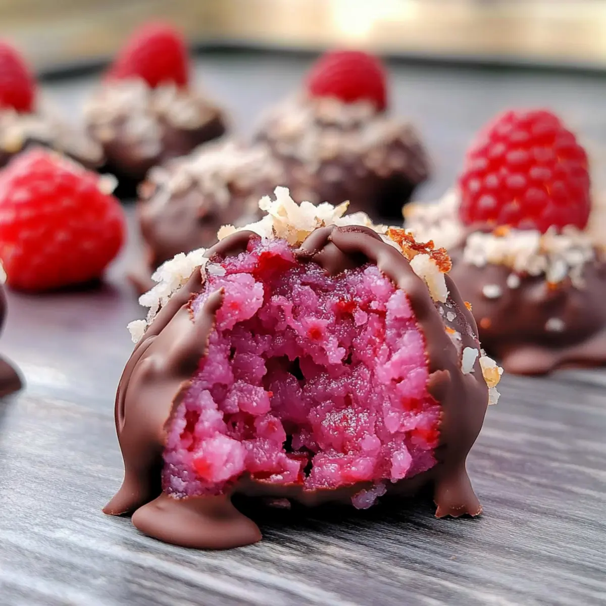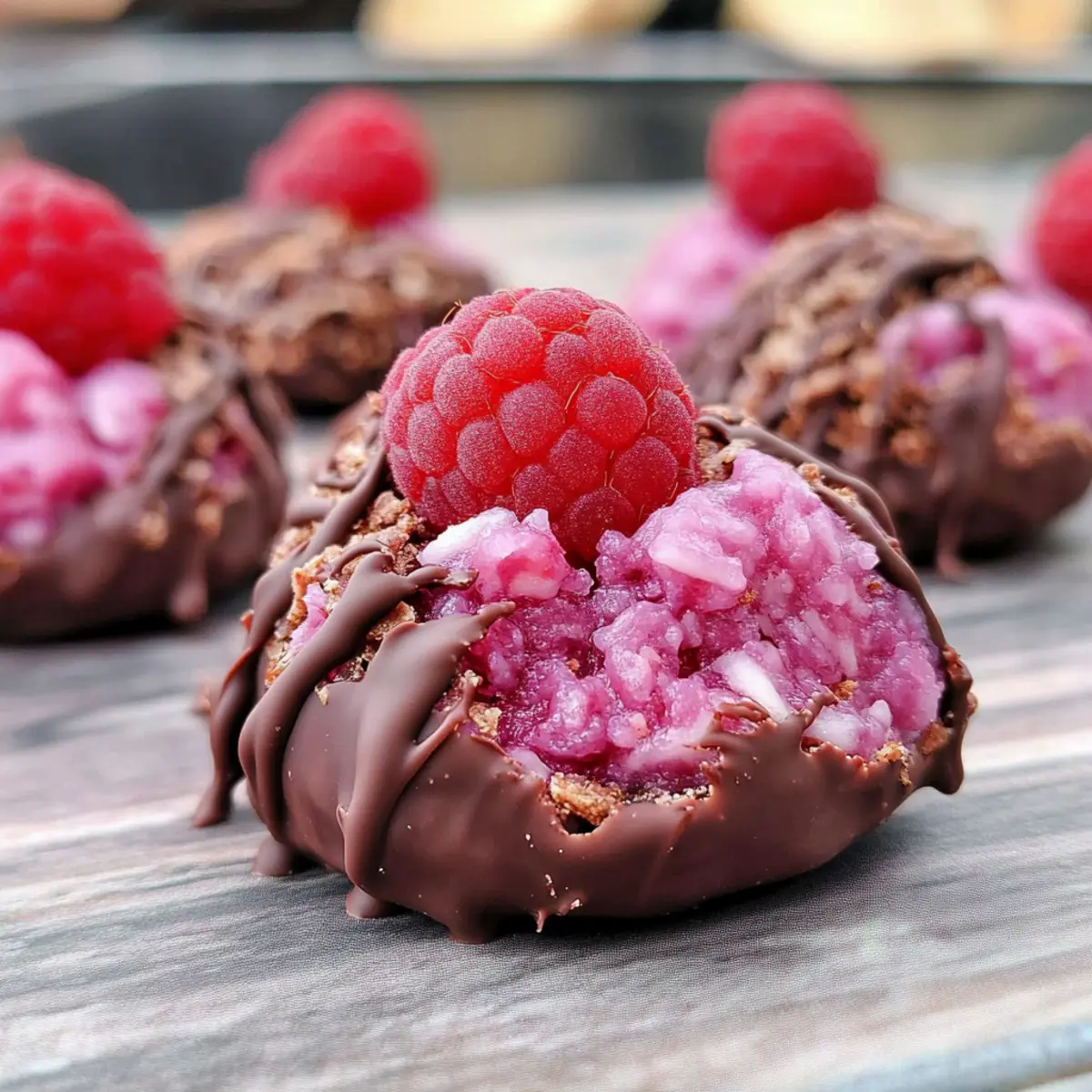 Jump to Recipe Print RecipeThe moment I dipped my spoon into the vibrant raspberry puree, I knew I was onto something special. It’s amazing how the simplest ingredients can come together to create a show-stopping dessert. These Chocolate Covered Raspberry Coconut Macaroons not only bring a delightful twist to the classic coconut macaroon but also serve as a surprising addition to your holiday cookie platter. What I love most about this recipe is how quick it is to prepare, making it an ideal choice for both novice and seasoned bakers. Plus, with the chewy coconut base paired with the rich chocolate coating, they are sure to impress your friends and family without any fuss! Who knew joy could be melted down into chocolate? Ready to get started? Why are These Macaroons a Must-Try? Unique Flavor Fusion: The combination of chewy coconut and tart raspberry pureé offers a taste sensation that’s both delightful and unexpected. Quick to Prepare: In just 30 minutes, you can whip up a batch that’s perfect for any occasion, just like my Chocolate Croissant Bake. Visual Appeal: These macaroons are not only delicious but also gorgeous, making them perfect for your holiday spread or a sweet surprise for guests. Versatile Ingredients: Feel free to experiment by swapping out raspberries for blueberries, or for a nutty finish, try topping your macaroons with crushed nuts! Crowd-Pleasing Treat: With their rich chocolate coat and chewy inside, they are sure to become a favorite, just like my Vegan Chocolate Chip Cookies. Easy Cleanup: Using parchment paper or a silicone mat makes your baking experience hassle-free, allowing you to enjoy your treats even more! Chocolate Covered Raspberry Coconut Macaroons Ingredients For the Macaroons • Shredded Sweetened Coconut – Provides the chewy texture and main flavor; no substitution necessary. • Granulated Sugar – Adds sweetness; alternative sugars may alter texture, so it’s not recommended. • Clear Vanilla Extract – Enhances flavor; use pure vanilla extract if clear is unavailable. • Sea Salt – Balances sweetness; optional, but enhances overall taste. • Fresh Raspberries – Adds a fruity burst of freshness and beautiful pink color; frozen raspberries can be used but may slightly alter texture. • Large Egg Whites – Acts as a binder to hold cookies together; ensure they are fresh for best results. For the Chocolate Coating • Melting Chocolate (White, Dark, or Milk) – Provides richness for coating the macaroons; melting rounds are preferred for even melting. These Chocolate Covered Raspberry Coconut Macaroons are a delightful treat that will usher in the holiday spirit with their irresistible taste! Step‑by‑Step Instructions for Chocolate Covered Raspberry Coconut Macaroons Step 1: Preheat the Oven Begin by preheating your oven to 325°F (163°C). While the oven is warming up, prepare a cookie sheet by lining it with parchment paper or a silicone baking mat to prevent sticking. These simple preparations set the stage for your delightful Chocolate Covered Raspberry Coconut Macaroons. Step 2: Prepare the Mixture In a food processor, combine shredded sweetened coconut, granulated sugar, clear vanilla extract, and a pinch of sea salt. Add in fresh raspberries, ensuring they are evenly distributed, followed by large egg whites. Pulse the mixture until well combined, about 30 seconds, creating a cohesive blend that will serve as the base for your macaroons. Step 3: Form the Macaroons Using a cookie scoop or your hands, form small mounds of the macaroon mixture and place them evenly on the prepared cookie sheet. Make sure to leave about an inch of space between each mound for spreading during baking. These small, mounded shapes will turn into deliciously chewy Chocolate Covered Raspberry Coconut Macaroons. Step 4: Bake the Macaroons Slide the cookie sheet into the preheated oven and bake your macaroons for 25 to 30 minutes. Keep an eye on them; they should be golden brown on the edges while the centers remain slightly firm. Once done, remove them from the oven and allow them to cool completely on the cookie sheet—this is where their flavor develops! Step 5: Melt the Chocolate While the macaroons are cooling, prepare the chocolate coating. In a microwave-safe bowl, melt your choice of chocolate according to package instructions, stirring every 30 seconds until smooth and completely melted. The rich chocolate will provide a luscious layer over your macaroons, enhancing their flavor and presentation. Step 6: Dip the Macaroons Once the macaroons are cool, carefully dip each one into the melted chocolate. Allow any excess chocolate to drip off before placing them back onto the parchment paper or silicone mat. Each Chocolate Covered Raspberry Coconut Macaroon should be generously coated for that indulgent touch! Step 7: Set the Chocolate Let the chocolate-coated macaroons sit at room temperature until the chocolate sets. This will take about 30 minutes. If you’re in a hurry, you can place them in the refrigerator for quicker setting. Once set, you’ll have a stunning array of Chocolate Covered Raspberry Coconut Macaroons ready to impress your guests! Make Ahead Options These Chocolate Covered Raspberry Coconut Macaroons are perfect for meal prep enthusiasts! You can prepare the macaroon base up to 24 hours in advance by mixing the shredded coconut, raspberry puree, sugar, and egg whites, then storing the mixture in an airtight container in the refrigerator. Keep in mind that this helps maintain their freshness and prevents any browning. When you’re ready to bake, simply scoop and shape the macaroons onto your prepared cookie sheet and follow the baking instructions. For the chocolate coating, it’s best to dip the cooled macaroons just before serving to ensure the chocolate remains luscious and inviting. Enjoy the convenience of this delightful treat without sacrificing flavor! Expert Tips for Chocolate Covered Raspberry Coconut Maca