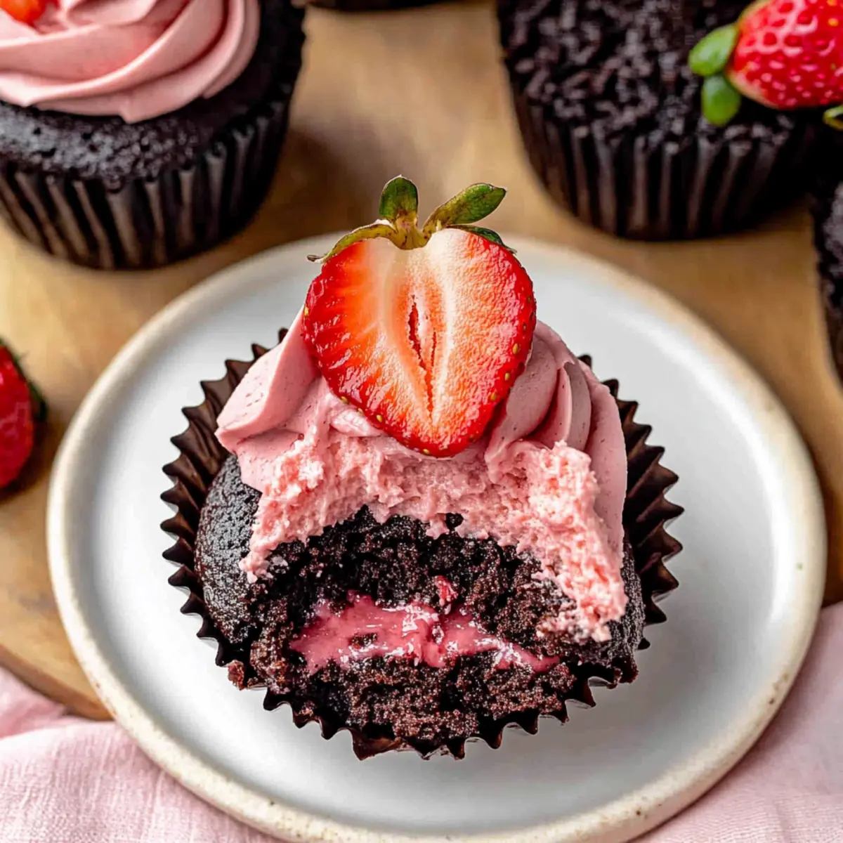 Jump to Recipe Print Recipe“Did you hear that cupcakes can be both indulgent and sophisticated?” I smiled as I watched my friend’s eyes light up at the mention of my Chocolate Strawberry Cupcakes with Chocolate Ganache Filling. These delightful creations combine the nostalgia of chocolate-covered strawberries with the decadence of freshly baked cupcakes, making them perfect for any occasion. Not only are they a visual masterpiece, but they also whip up in no time, giving you a sweet victory over takeout. Imagine filling moist chocolate cupcakes with silky ganache and topping them with a fluffy strawberry buttercream made from freeze-dried strawberries—now that’s a crowd-pleaser! Whether you’re celebrating a special day or just treating yourself, these cupcakes promise a delicious escape from the ordinary. Can you resist the temptation to bite into one? Let’s get baking! Why Should You Try These Cupcakes? Delightful Combination: These cupcakes merge the best of both worlds—rich chocolate and fresh strawberries—creating an irresistible treat that leaves a lasting impression. Easy to Make: The straightforward process means you can whip up a batch in no time, allowing you to indulge without taking too much time away from other activities. Perfect for Any Occasion: Whether it’s a birthday, holiday, or a simple afternoon treat, these cupcakes are sure to impress anyone fortunate enough to get one. Unique Flavor Experience: The silky chocolate ganache filling, paired with strawberry buttercream made from freeze-dried strawberries, results in a flavor burst with each bite. Versatile Options: Feel free to get creative with variations, like adding raspberry for a different twist. These cupcakes can easily suit any palate or occasion! Check out additional creative delights such as Strawberry Spinach Salad for a refreshing side dish or Chocolate Croissant Bake for another sweet treat! Heading Chocolate Strawberry Cupcake Ingredients Ingredient groups For the Cupcakes All-Purpose Flour – Provides structure; can substitute with gluten-free flour blend. Granulated Sugar – Sweetens the cupcakes for balanced flavors; no direct substitution recommended. Dutch-Processed Cocoa Powder – Adds deep chocolate flavor; substitute with unsweetened cocoa for a different taste. Baking Soda & Baking Powder – Helps cupcakes rise; ensure freshness and don’t substitute. Kosher Salt – Enhances flavors; use regular salt in equal amounts. Large Egg – Binds ingredients and adds moisture; for a vegan version, replace with flaxseed meal. Sour Cream – Adds moisture and richness; Greek yogurt can be an alternative. Vegetable Oil – Keeps cupcakes moist; can replace with melted coconut oil or butter. Vanilla Extract – Provides aromatic flavor; use pure for best results. Coffee or Water – Adds moisture and enhances chocolate flavor; decaf is a milder option. For the Ganache Semi-Sweet Chocolate – Creates a rich filling; milk chocolate can be used for sweetness. Heavy Whipping Cream – Adds creaminess; can substitute with half-and-half for a lighter ganache. For the Buttercream Egg Whites – Forms the base of swiss meringue buttercream; aquafaba is a vegan substitute. Granulated Sugar – Sweetens and stabilizes frosting; no substitutions are recommended. Unsalted Butter – Provides creaminess in frosting; use vegan butter for a dairy-free option. Powdered Freeze-Dried Strawberries – Intensifies strawberry flavor; fresh strawberries can be used, but texture may vary. Vanilla Extract – Enhances flavor; pure extract is preferred for the best taste. Indulge in these Chocolate Strawberry Cupcakes with Chocolate Ganache Filling and let your taste buds experience a delightful journey! Step‑by‑Step Instructions for Chocolate Strawberry Cupcakes with Chocolate Ganache Filling Step 1: Prepare the Cupcake Batter Preheat your oven to 350°F (175°C) and line a cupcake tin with liners. In a large mixing bowl, sift together the all-purpose flour, granulated sugar, Dutch-processed cocoa powder, baking soda, baking powder, and kosher salt. In a separate bowl, whisk together the egg, sour cream, vegetable oil, and vanilla extract until smooth. Gradually pour the wet mixture into the dry ingredients, stirring until just combined. Add the hot coffee and mix until you have a silky batter. Step 2: Bake the Cupcakes Fill each cupcake liner halfway with the prepared chocolate batter, which should be rich and glossy. Place the tin in the preheated oven and bake for 13-15 minutes, watching for the cupcakes to rise and domed in the center. To test for doneness, insert a toothpick into the center; it should come out clean. Remove the tin from the oven and allow the cupcakes to cool completely on a wire rack. Step 3: Make the Chocolate Ganache While the cupcakes are cooling, prepare the chocolate ganache filling. In a saucepan, heat the heavy whipping cream over medium heat until it just begins to simmer. Remove it from the heat and pour it over the chopped semi-sweet chocolate in a heatproof bowl. Let it stand for 5 minutes, then stir gently until smooth and shiny. Allow the ganache to chill in the refrigerator for about 30 minutes until it thickens to a spreadable consistency. Step 4: Prepare the Strawberry Buttercream Next, prepare the luscious strawberry swiss meringue buttercream. Start by placing the egg whites and granulated sugar in a heatproof bowl over a pot of simmering water. Whisk constantly until the mixture is warm to the touch and the sugar dissolves, about 3-5 minutes. Remove from the heat, then beat with a stand mixer on high speed until stiff peaks form and the mixture cools. Gradually add room temperature unsalted butter, mixing until creamy, and then blend in the powdered freeze-dried strawberries and vanilla extract. Step 5: Fill the Cupcakes Take each completely cooled cupcake and use a small knife or cupcake corer to remove a small section from the center. Fill each cupcake with t