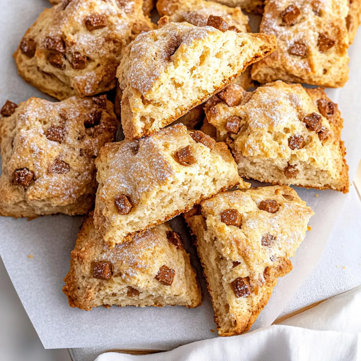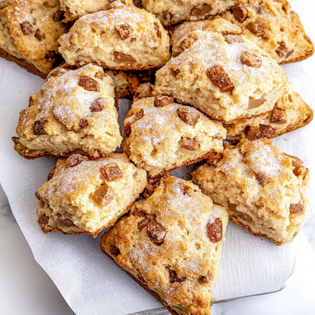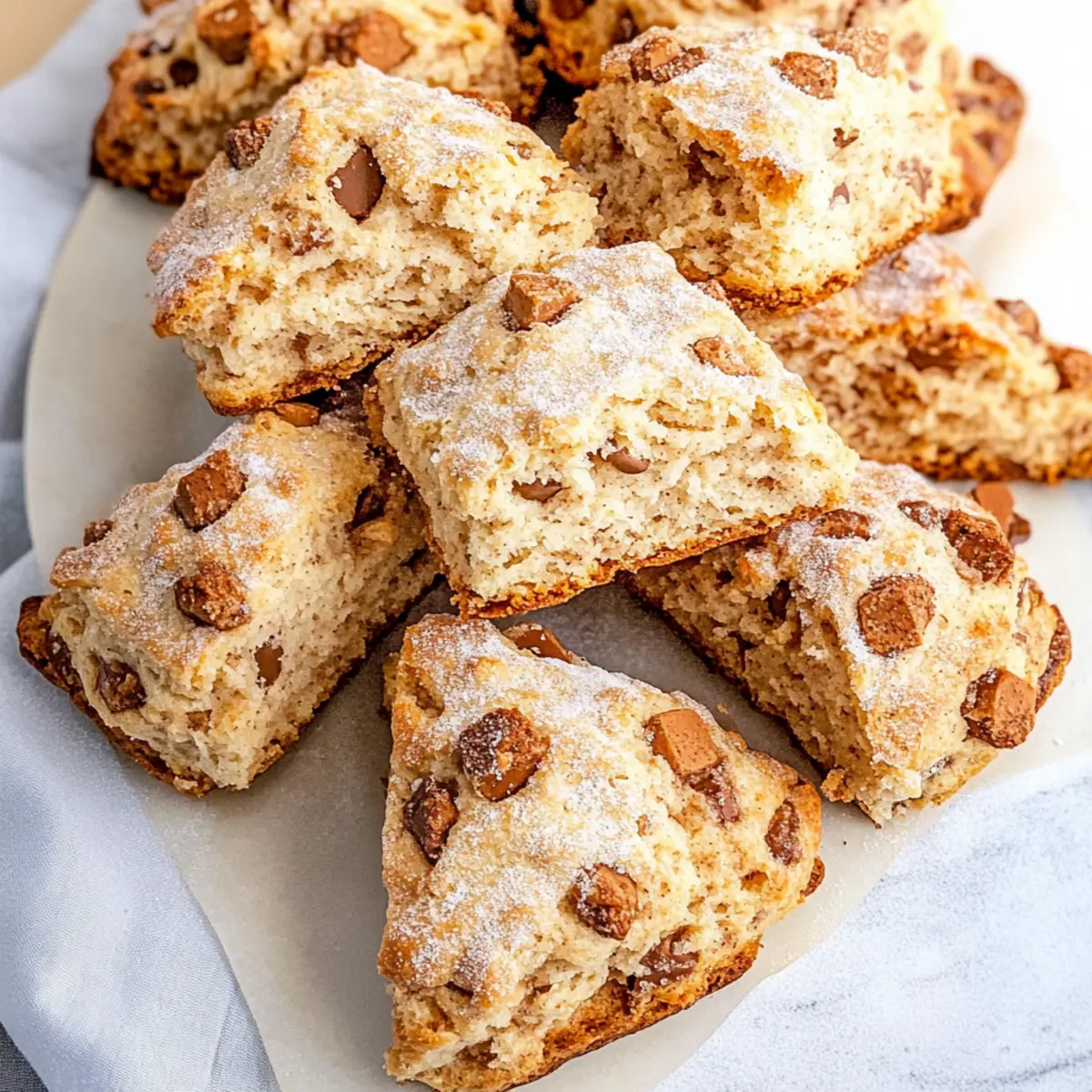 Jump to Recipe Print RecipeAs I stared at the half-empty carton of eggnog in my fridge, memories of holiday gatherings flooded my mind. It hit me—what better way to savor that festive flavor than by whipping up a batch of Cinnamon Eggnog Scones? These delightful treats are not only quick to prepare but also perfect for breakfast throughout the chilly season, making them ideal for cozy mornings or surprise brunches. With their tender, flaky texture and aromatic spices, these scones are a sweet embrace that will charm your taste buds and warm your soul. Whether you’re a seasoned home chef or a novice in the kitchen, you’ll find joy in creating these irresistible treats. So, are you curious about how simple it is to transform leftovers into something magical? Let’s dive in! Why You’ll Love These Scones Deliciously Festive: The flavors of cinnamon and eggnog create a unique holiday treat that feels special any day of the week. Quick and Easy: With just a few simple steps, these scones come together quickly, making them perfect for those busy mornings or last-minute brunch gatherings. Versatile Recipe: Feel free to experiment; try adding chopped pecans for a nutty twist or different flavored chips for a unique spin. For more sweet ideas, check out these delightful Cookie Butter Cinnamon treats! Perfect for Sharing: Light and flaky, they’re not just tasty; these scones are sure to impress family and friends at any get-together, making them a crowd-pleaser. Make Ahead Magic: They freeze beautifully, letting you prepare a batch in advance and bake them fresh when needed. Enjoy warm, delightful scones at any holiday gathering! Cinnamon Eggnog Scone Ingredients For the Scone Dough All-purpose flour – Provides structure; substitute with gluten-free flour for a gluten-free version. Granulated white sugar – Adds sweetness; can be replaced with brown sugar for a richer flavor. Baking powder – Creates leavening; ensure it’s fresh for best results. Salt – Enhances flavor; essential for balance. Ground nutmeg – Adds warm spice; can be omitted for a milder taste. Butter – Contributes to flakiness and richness; use cold butter for the best texture. Cinnamon chips – Provides bursts of sweetness and cinnamon flavor; substitute with chopped pecans or chocolate chips if needed. Eggnog – Adds moisture and festive flavor; can be replaced with milk or cream if desired. Large egg – Binds the ingredients together. Vanilla extract – Enhances overall flavor; optional but recommended. For the Topping Sparkling white sugar (or cinnamon sugar) – Adds a sweet crunch; regular granulated sugar can be substituted. These Cinnamon Eggnog Scones will transform your breakfast routine into something extraordinary—perfect for those who adore cozy, homemade treats! Step‑by‑Step Instructions for Cinnamon Eggnog Scones Step 1: Prepare Dry Ingredients In a large mixing bowl, whisk together 2 cups of all-purpose flour, 1/4 cup of granulated sugar, 1 tablespoon of baking powder, 1/2 teaspoon of salt, and 1/2 teaspoon of ground nutmeg. Ensure the mixture is well combined and free of lumps, creating a fluffy base for your Cinnamon Eggnog Scones that will yield a light texture once baked. Step 2: Combine Butter Cut 1/2 cup of cold butter into small cubes and add them to the dry mixture. Use a pastry cutter or your fingertips to incorporate the butter, mixing until the texture resembles coarse crumbs with some larger pieces. This step is crucial for the flakiness of your scones, setting the stage for a rich flavor profile. Step 3: Mix In Chips Gently stir in 1 cup of cinnamon chips, ensuring they are evenly distributed throughout the dough mixture. This additional flavor will elevate your Cinnamon Eggnog Scones, providing delightful bursts of sweetness. Take a moment to savor that aromatic scent wafting through your kitchen—it’s just a hint of what’s to come! Step 4: Combine Wet Ingredients In a separate bowl, whisk together 3/4 cup of eggnog, 1 large egg, and 1 teaspoon of vanilla extract until smooth. This mixture adds moisture and festive flavor to the scones. The combination will enhance the overall taste, ensuring each bite is packed with the warmth of the season. Step 5: Mix Dough Pour the wet mixture into the dry ingredients, stirring gently until just combined. Be careful not to overmix; a few floury patches are okay. Once the dough is moistened, you’ll see it start to form a cohesive mixture that promises tender and delicious Cinnamon Eggnog Scones. Step 6: Shape Dough On a lightly floured surface, pat the dough into a ball, then divide it in half. Flatten each half into a circle about 1 inch thick, and cut into wedges. Arrange the wedges on a baking sheet, making sure to separate them slightly for even baking. Your scone shapes should begin to take form, looking like a festive treat in the making. Step 7: Chill Place the baking sheet with the shaped scones in the freezer for 30 minutes. This step is key for retaining moisture and ensures a better rise during baking. As you wait, preheat your oven to 425°F so it’s ready to create a golden-brown crust on your delightful Cinnamon Eggnog Scones. Step 8: Bake Once chilled, remove the scones from the freezer and brush the tops lightly with a bit of eggnog. Sprinkle with sparkling white sugar for added crunch. Bake in the preheated oven for about 20 minutes or until the scones are golden brown and firm to the touch, with edges that are no longer wet. Your kitchen will soon be filled with delightful holiday aromas! Step 9: Cool After baking, let the scones cool on the baking sheet for a few minutes before transferring them to a wire rack. This allows them to firm up slightly. Serve your warm Cinnamon Eggnog Scones immediately for the best experience, and enjoy the cozy flavors that capture the essence of the festive season. Expert Tips for Cinnamon Eggnog Scones Keep Butter Cold: Use cold butter and handle it minimally to ensure a flak