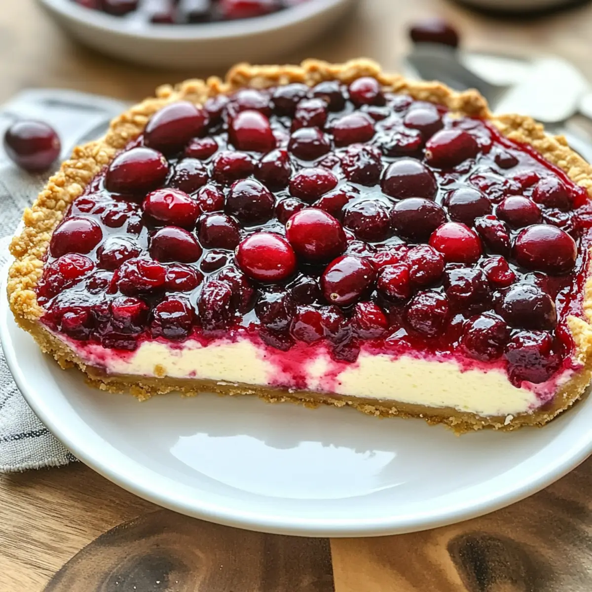 Jump to Recipe Print RecipeThe scent of cinnamon wafting through the air is enough to spark nostalgia, transporting me back to cozy autumn evenings spent with family. That’s exactly the feeling I hope to capture with my Cranberry Cheesecake Pie, a deliciously creamy dessert that beautifully marries the tartness of fresh cranberries with the smooth decadence of cream cheese. As a vegetarian-friendly treat, this pie is not only a feast for the eyes but also a heartwarming indulgence perfect for holiday gatherings or intimate dinners alike. Plus, with just a bit of prep time and the promise of a show-stopping dessert, it’s sure to impress your loved ones while freeing up your time to savor moments together. Curious about how to make this delightful autumn dessert? Let’s dive into the recipe! Why is this pie a must-try? Irresistible Flavor: The tangy cranberries paired with creamy cheesecake create a flavor explosion that evokes the spirit of autumn. Easy to Make: The recipe is straightforward, making it perfect for both novice bakers and seasoned chefs looking to add a special dessert to their table. Versatile Treat: Whether served at Thanksgiving or a cozy dinner, this pie is a versatile crowd-pleaser that complements any occasion beautifully. Customizable Ingredients: Feel free to swap ingredients like cranberries with your favorite tart fruits, making it uniquely yours! Show-Stopping Presentation: It’s visually stunning, ensuring your dessert will wow your family and friends. In just a few simple steps, you’ll have a delightful dessert that everyone will rave about! Cranberry Cheesecake Pie Ingredients • Here’s what you need for your delicious pie! For the Cheesecake Layer Cream Cheese – Provides rich, creamy texture; essential for the cheesecake layer. Make sure it’s soft for easy blending. Granulated Sugar – Adds sweetness to both the cheesecake and the cranberry filling. Can be substituted with granulated stevia for a lower-calorie option. Egg – Binds the cheesecake filling together, ensuring a smooth consistency. Aquafaba can be used as an egg substitute for vegan options. Cornstarch – Helps set the cheesecake layer for a firmer texture; you can omit it for a softer filling. For the Cranberry Filling Cranberries – Provide tartness and color. Fresh or frozen cranberries can be used—just ensure frozen ones are thawed and drained. Brown Sugar – Enhances flavor and moisture in the filling; can use coconut sugar if desired. Orange Zest – Adds bright flavor to the cranberry filling; lemon zest can be used as a substitute. Water – Helps cook the cranberries; use orange juice for added flavor. For the Crust Flour – Acts as the structural base for the crust. Use gluten-free flour for a gluten-free version. Granulated Sugar – Contributes to the sweetness of the crust; you can use brown sugar for a deeper flavor. Cinnamon – Infuses the crust with warm fall flavors; can substitute with nutmeg for a different spice profile. Baking Powder – Helps the crust rise slightly; baking soda can be used as an alternative. Salt – Balances sweetness; use sea salt or table salt interchangeably. Butter – Adds richness to the crust; for a dairy-free option, use a plant-based butter. This Cranberry Cheesecake Pie recipe is sure to become a cherished favorite in your autumn dessert repertoire! Step‑by‑Step Instructions for Cranberry Cheesecake Pie Step 1: Prepare Cranberry Filling In a medium saucepan, combine fresh or thawed cranberries with granulated sugar, orange zest, and water. Bring the mixture to a boil over medium heat, then reduce to a simmer for about 10 minutes, stirring occasionally, until the cranberries soften and burst. Once cooked, remove from heat and allow the cranberry filling to cool while you prepare the crust. Step 2: Make the Crust Preheat your oven to 350°F (175°C). In a mixing bowl, whisk together flour, granulated sugar, brown sugar, cinnamon, baking powder, and salt. Cut in cold butter using a pastry cutter or your fingers until the mixture resembles coarse crumbs. Pack the crumbly mixture firmly into a greased pie dish. Bake the crust in the preheated oven for approximately 8 minutes or until lightly golden, and then let it cool. Step 3: Prepare Cheesecake Filling In a large mixing bowl, beat softened cream cheese with granulated sugar and vanilla extract until smooth and creamy, about 2-3 minutes. Add in the egg and cornstarch, mixing just until combined—avoid overmixing to prevent cracks. Gently pour the cheesecake filling over the cooled crust, spreading it evenly with a spatula for a smooth finish. Step 4: Assemble Pie Once the cheesecake layer is in place, spoon the cooled cranberry filling evenly over the cheesecake. Use a spatula to gently spread the cranberries, ensuring every bite will have that delightful tartness. If you saved any crust mixture, sprinkle it on top for added texture. Step 5: Bake the Pie Bake the assembled Cranberry Cheesecake Pie in the oven for 33-38 minutes, or until the top is golden brown and the filling is set—check for a firm texture when gently touched in the center. The edges may puff slightly, giving a beautiful appearance. Remove from the oven and cool completely at room temperature for about 1 hour. Step 6: Chill and Serve Once cooled, cover the pie and place it in the refrigerator for at least 2 hours. This chilling time allows the flavors to meld beautifully and the cheesecake to firm up further. When ready to serve, slice the Cranberry Cheesecake Pie into pieces and enjoy it chilled, paired with a dollop of whipped cream or a scoop of ice cream for an extra treat! Cranberry Cheesecake Pie Variations Feel free to get creative with your Cranberry Cheesecake Pie and make it uniquely yours! Here are some delightful twists to inspire you. Nutty Crust: Incorporate crushed pecans or walnuts into the crust for an added crunchy texture. This will enhance the flavor and make every bite enjoyable. B