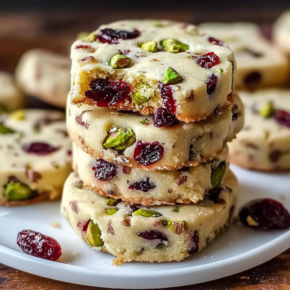 Jump to Recipe Print RecipeAs the first hint of winter chills the air, I find myself daydreaming about warm kitchens filled with the aroma of freshly baked treats. One of my absolute favorite delights during this festive season is the Cranberry Pistachio Shortbread Cookies. With their buttery, crumbly texture and the perfect balance of tart cranberries and crunchy pistachios, these cookies are not just a treat—they’re a celebration on a plate! They come together with a handful of simple ingredients, making them an easy cookie recipe ideal for anyone, from novice bakers to the most seasoned pros. Plus, they’re perfect for sharing with family and friends during cozy gatherings or tucking into holiday gift boxes. Can’t resist the allure of holiday cookies? Let’s dive into this mouthwatering recipe that will have everyone asking for seconds! Why Try These Cookie Wonders? Unique Twist: Combining chewy cranberries with crunchy pistachios makes these cookies a delightful surprise. Easy to Make: This straightforward recipe requires only simple ingredients and minimal baking skills, perfect for all! Festive Appeal: The vibrant colors and flavors make them a stunning addition to any holiday spread. Great for Gifting: Pack them up in pretty boxes for friends and family—who wouldn’t love a homemade treat? Endless Variety: Feeling adventurous? Try Chocolate Chip Cookies or mix up flavors for a new twist! You won’t just bake cookies; you’ll create memories with every batch! Cranberry Pistachio Shortbread Cookies Ingredients For the Dough • Unsalted Butter – Provides rich flavor and tender texture; use room temperature for easy creaming. • Powdered Sugar – Adds smooth sweetness and contributes to a fine, crumbly texture. • Vanilla Extract – Enhances flavor with warmth, turning ordinary cookies into something special. • All-Purpose Flour – Offers structure without making the cookies too heavy, perfect for the ideal shortbread. • Salt – Balances sweetness and highlights the flavors of the other ingredients. For the Mix-ins • Dried Cranberries – Adds a pop of tartness and chewy texture; use instead of fresh cranberries to avoid excess moisture. • Shelled Pistachios – Contributes nutty flavor and beautiful color; opt for unsalted for a better sweetness balance. With these delicious ingredients, your Cranberry Pistachio Shortbread Cookies are bound to be a hit, filling your home with warmth and festive spirit! Step‑by‑Step Instructions for Cranberry Pistachio Shortbread Cookies Step 1: Cream the Butter and Sugar In a large mixing bowl, beat 1 cup of room temperature unsalted butter and ½ cup of powdered sugar together using an electric mixer on medium speed until the mixture is smooth, creamy, and light in color—about 3 to 5 minutes. This step is crucial for achieving the light, crumbly texture of your Cranberry Pistachio Shortbread Cookies. Step 2: Add Flavors Mix in 1 teaspoon of vanilla extract and ¼ teaspoon of salt to the creamy butter-sugar blend. Use the mixer on low speed, allowing the ingredients to fully combine without splattering. This enhances the overall flavor profile, setting a warm and inviting base for the cookies. Step 3: Incorporate the Flour Gradually add 2 cups of all-purpose flour to the mixture, mixing gently on low speed. Continue until the dough appears crumbly and holds together when pressed—this takes about 1 to 2 minutes. Be cautious not to overmix, as it can weigh down your Cranberry Pistachio Shortbread Cookies. Step 4: Fold in the Mix-ins Gently fold in ½ cup of chopped dried cranberries and ⅓ cup of shelled pistachios into the dough using a spatula. Ensure they are evenly distributed, creating a colorful blend of flavors that will make each cookie a festive treat. Aim for a cohesive dough with visible chunks of cranberries and pistachios. Step 5: Shape and Chill the Dough Divide the dough into half and shape each portion into a 2-inch diameter log. Wrap the logs tightly in plastic wrap and refrigerate for at least 2 hours. Chilling the dough allows the flavors to meld and is essential to prevent spreading during baking, ensuring your cookies maintain their lovely shape. Step 6: Preheat the Oven Once the dough is chilled, preheat your oven to 325°F (163°C). Line a baking sheet with parchment paper, which provides a non-stick surface for the cookies to bake evenly. This preparation ensures you’re ready for baking when the dough comes out of the fridge. Step 7: Slice the Cookies Remove the chilled dough from the refrigerator and carefully slice each log into ¼-inch rounds using a sharp knife. Arrange the cookie slices on the prepared baking sheet, leaving about 1 inch of space between them. The cookies will spread slightly while baking, so this spacing is important for even cooking. Step 8: Bake Place the baking sheet in the preheated oven and bake the Cranberry Pistachio Shortbread Cookies for 14 to 16 minutes. Look for the edges to turn a light golden brown while the centers remain pale. Keep a close eye during the last few minutes to avoid over-baking. Step 9: Cool the Cookies Once baked, remove the cookies from the oven and allow them to cool on the baking sheet for about 5 minutes. This cooling time helps them firm up. Afterward, transfer them to a wire rack to cool completely, making sure they’re set for your delightful holiday gatherings. Expert Tips for Cranberry Pistachio Shortbread Cookies Chill, Don’t Skip: Ensure the dough is thoroughly chilled for at least 2 hours to prevent spreading and maintain a beautiful shape during baking. Slice with Care: When cutting the dough, use a sharp knife and press gently to avoid squishing the cookies, ensuring they keep their round shape. Avoid Overmixing: Once you add the flour to the dough, mix just until combined. Overmixing can lead to dense cookies instead of the light, crumbly texture you want. Watch the Oven: Cookies can go from perfect to overdone quickly!
