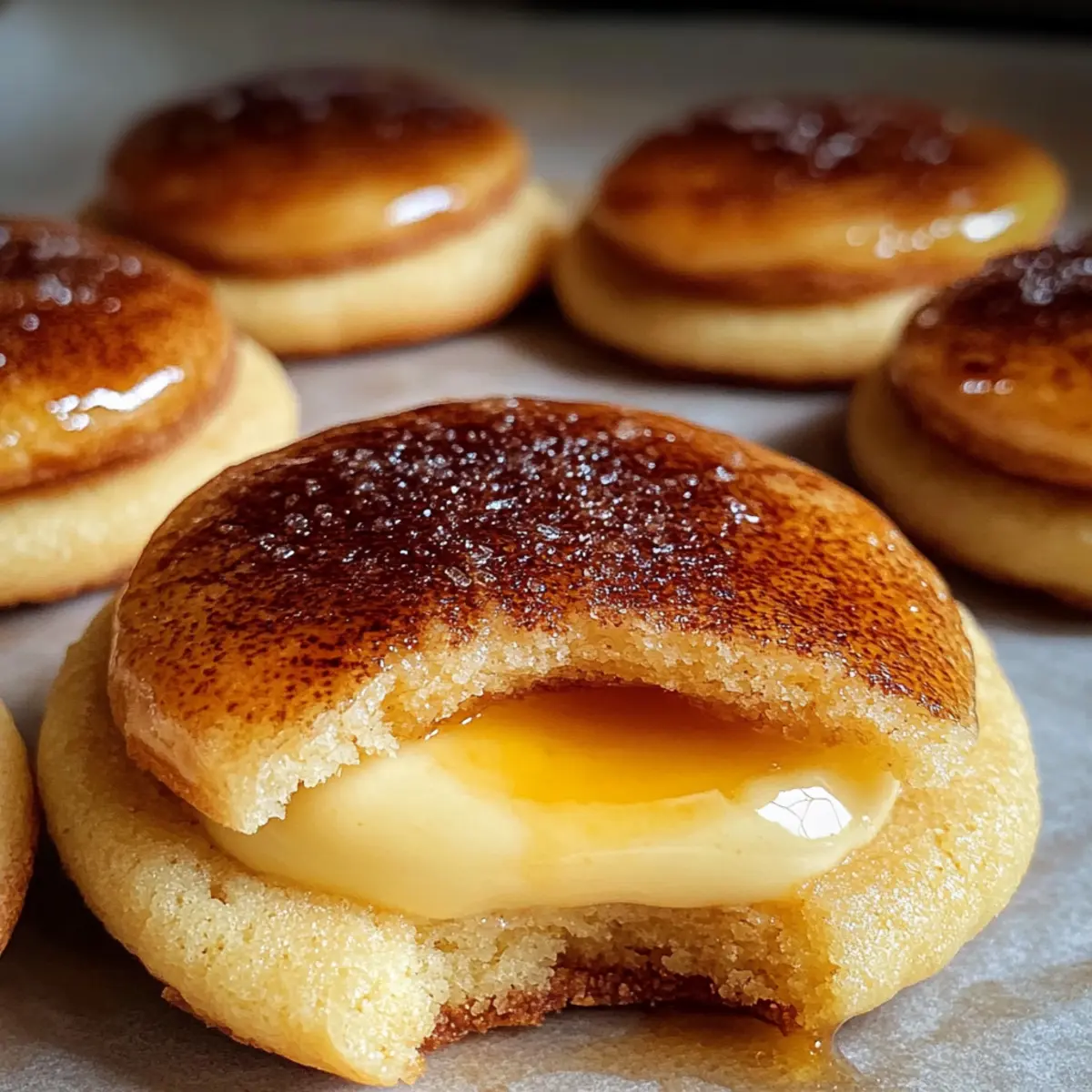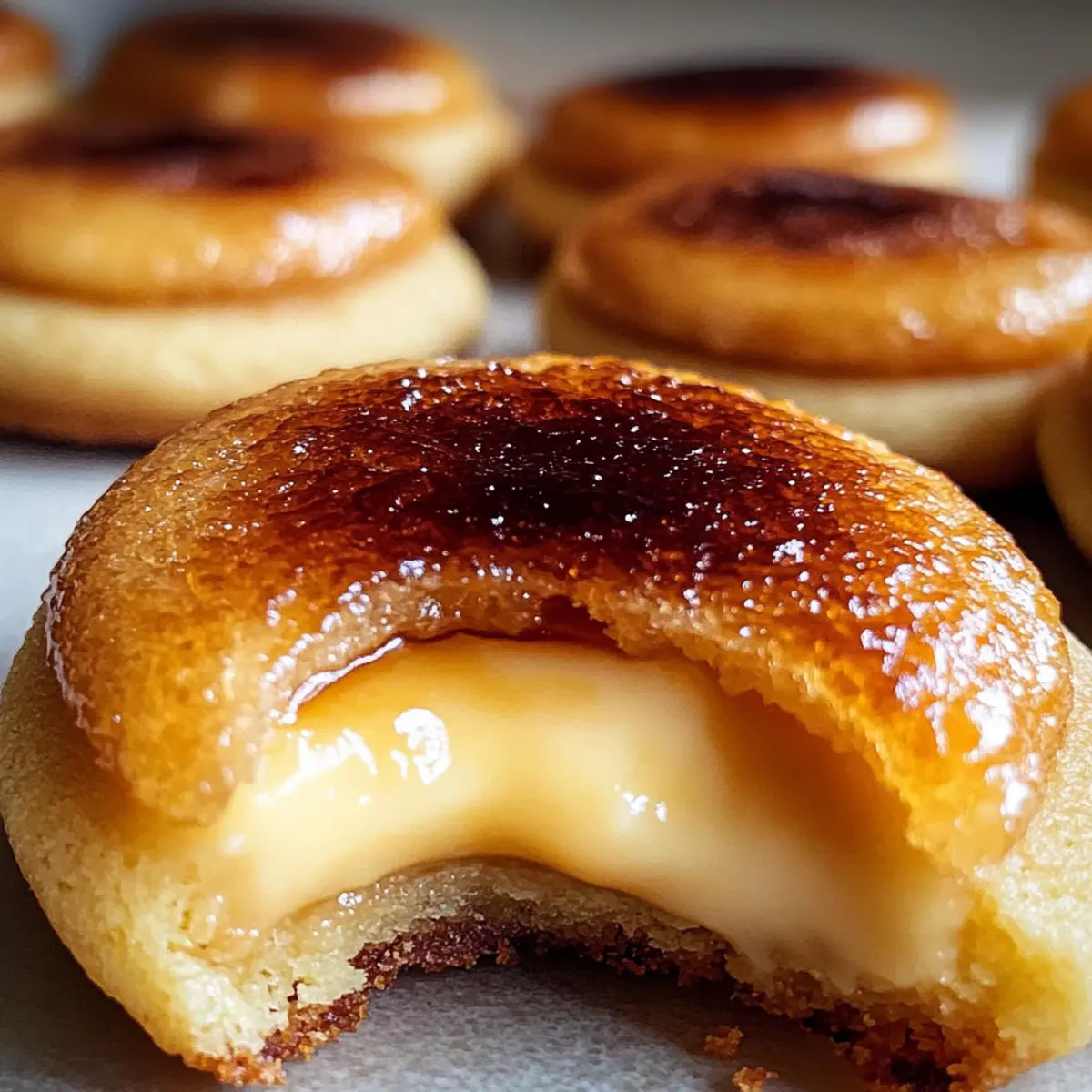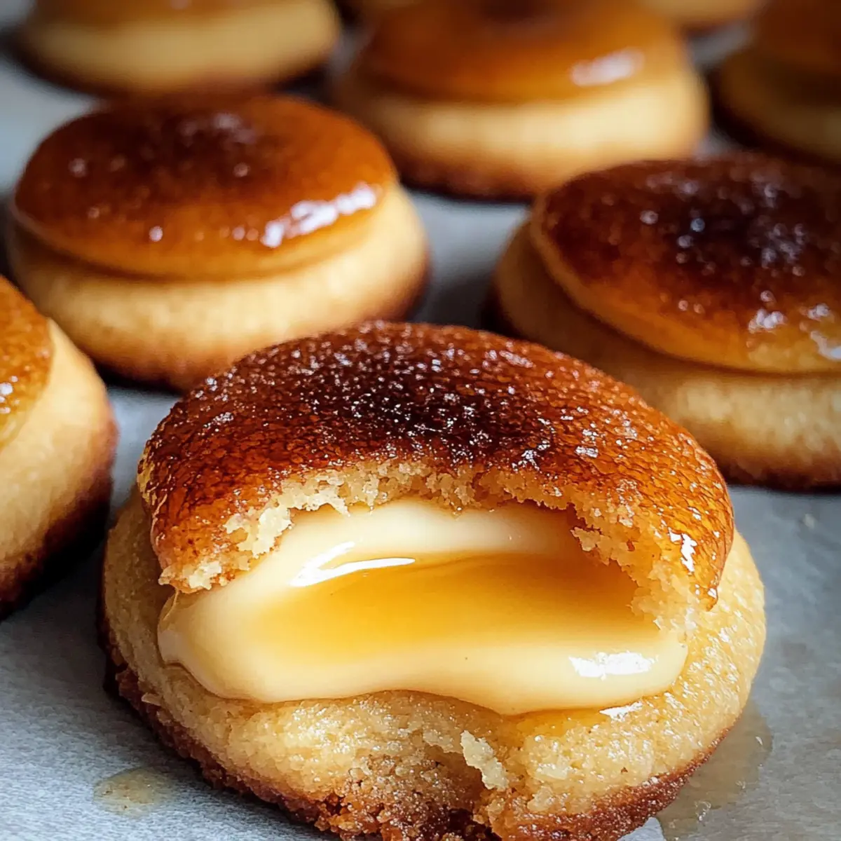 Jump to Recipe Print RecipeThere’s something magical about combining the richness of a classic dessert with the charm of a cookie, and that’s exactly what you’ll find with these delectable Creme Brûlée Cookies. Each bite reveals a chewy, buttery cookie that cradles a luxurious vanilla pastry cream filling—topped with caramelized sugar for that iconic crunch. Beyond their sophistication, these treats are perfect for any baking skill level, making them a joy to create. And with the added bonus of being easily adaptable to a gluten-free version, they can cater to various dietary needs without sacrificing flavor. So, why settle for ordinary when you can indulge in a cookie that elegantly transforms a beloved classic? Ready to take your cookie game to the next level? Let’s dive into this delicious recipe! Why are these cookies a must-try? Decadent Flavor: Each bite blends buttery cookie goodness with a creamy filling, evoking the classic dessert experience of crème brûlée. Impressive Presentation: Topping these cookies with caramelized sugar creates a stunning finish that’s sure to impress your guests. Gluten-Free Option: Easily adapt this recipe to gluten-free by using the suggested flour substitute, making it accessible for everyone. Simplicity: You don’t need to be a pro baker to achieve these delights; even novice bakers can tackle this recipe with ease. Versatile Treat: Enjoy these cookies as a dessert or elevate your tea party by pairing them with rich vanilla ice cream or an espresso shot. For more delightful flavors, try out my Lemon Raspberry Cookies or Tiramisu Cookies Melt. Creme Brûlée Cookie Ingredients Get ready to whip up these delightful treats! For the Cookie Dough All-Purpose Flour – Provides structure; substitute with gluten-free flour if needed. Butter – Adds richness and moisture; opt for high-quality butter for the best flavor. Granulated Sugar – Sweetens the cookie; can be swapped with coconut sugar for a unique twist. Brown Sugar – Enhances depth of flavor; both light and dark brown sugar are great options. Eggs – Binds ingredients and adds moisture; using room temperature eggs helps in better mixing. Vanilla Bean Paste – Infuses rich vanilla flavor; pure vanilla extract can be used as a substitute. Baking Soda – Helps cookies rise and spread properly. For the Pastry Cream Filling Milk – Provides creaminess; any milk variety works, but whole milk yields the best result. Sugar – Sweetens the filling; adjust depending on your taste preference. Egg Yolks – Enrich the filling and provide a lovely color; be sure to separate them carefully. Cornstarch – Thickens the pastry cream; ensure to whisk it well to avoid lumps. Vanilla – Enhances the filling’s flavor; you can use vanilla extract instead of bean paste if necessary. For Caramelizing Sugar for Caramelizing – Creates a crispy top; fine sugar will caramelize more evenly for that perfect finishing touch. These Creme Brûlée Cookies perfectly combine classic flavors and an elegant presentation, making them a delightful treat to share! Step‑by‑Step Instructions for Creme Brûlée Cookies Step 1: Prepare Pastry Cream In a medium saucepan, combine milk, sugar, egg yolks, cornstarch, and vanilla over medium heat. Whisk continuously for about 5-7 minutes until the mixture thickens and bubbles gently. Once thickened, remove from heat, transfer to a bowl, and cover with plastic wrap to prevent a skin from forming. Cool to room temperature, then refrigerate for at least 30 minutes to ensure it’s nicely chilled before filling your cookies. Step 2: Make Cookie Dough In a large mixing bowl, cream together softened butter, granulated sugar, and brown sugar until light and fluffy, about 3-4 minutes. Add the eggs one at a time, mixing well after each addition, followed by the vanilla bean paste. Gradually incorporate the all-purpose flour and baking soda until the dough is just combined, ensuring not to overmix for the best texture in your Creme Brûlée Cookies. Step 3: Chill the Dough Once your cookie dough is mixed, wrap it in plastic wrap and refrigerate for at least 30 minutes. This chilling step is crucial as it helps prevent the cookies from spreading too much while baking. This results in those lovely thick cookies that will beautifully house your pastry cream filling. Step 4: Shape Cookies Preheat your oven to 350°F (175°C) while you scoop the chilled dough. Using a cookie scoop or your hands, form tablespoon-sized balls and place them on a parchment-lined baking sheet, ensuring they are spaced a couple of inches apart. As you shape the cookies, imagine the deliciously soft and chewy texture they will have once baked, perfectly contrasting with the creamy filling. Step 5: Bake Bake the cookies in the preheated oven for 9-11 minutes, or until the edges are lightly golden but the centers are still soft. You want a slight underbake for that chewy interior, so keep an eye on them! After baking, remove the tray from the oven and allow the cookies to cool on the sheet for a few minutes before transferring them to a wire rack to cool completely. Step 6: Fill Cookies Once the cookies are completely cool, use your finger or a spoon to make a small well in the center of each cookie, creating space for the rich pastry cream. Spoon the chilled pastry cream into each well, being generous but careful not to overfill. The filling should create a delightful surprise when you take a bite of these Creme Brûlée Cookies. Step 7: Caramelize Sugar For the final touch, sprinkle a thin layer of granulated sugar over the pastry cream in each cookie. Using a kitchen torch, carefully caramelize the sugar until it becomes a beautiful golden brown and bubbly. This step creates that signature crispy texture reminiscent of the classic crème brûlée, adding a delicious contrast to the creamy filling beneath. What to Serve with Creme Brûlée Cookies? Picture a delightful gathering with friends where