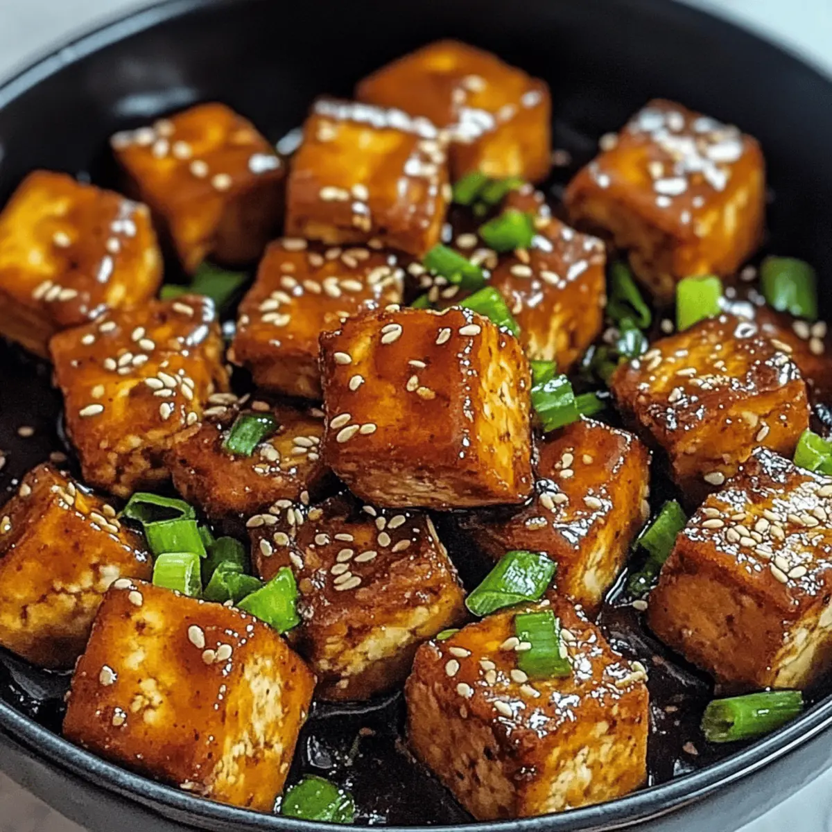 Jump to Recipe Print RecipeThe enticing aroma of frying tofu mingled with savory garlic and a hint of sweetness wafted through my kitchen, setting the stage for a weeknight culinary victory. The star of the show, Crispy Honey Garlic Tofu, transforms simple ingredients into a mouthwatering delight that even the pickiest eaters can’t resist. This plant-based dish is perfect for those busy nights when you crave something quick yet satisfying, effortlessly elevating dinner time. It’s not just delicious; it’s also a nutritious option packed with protein and versatility, making it a family-friendly addition to any meal rotation. With an irresistible glaze that clings beautifully to crispy tofu nuggets, you’ll find yourself reaching for seconds (and maybe even thirds!). Are you ready to dive into a recipe that brings joy back to home cooking? Let’s create some magic in the kitchen together! Why is Crispy Honey Garlic Tofu a Must-Try? Flavor Explosion: The luscious combination of sweet honey and pungent garlic creates a mouthwatering glaze that unapologetically elevates your dining experience. Quick Preparation: Perfect for busy weeknights, this dish takes minimal time while delivering maximum satisfaction. Plant-Based Perfection: Made with tofu, it’s rich in plant protein, making it a fulfilling choice for vegans and meat-lovers alike! Versatile Delight: Serve it over rice, quinoa, or stuffed in wraps for a nourishing meal. If you enjoy other flavorful dishes, don’t miss out on Garlic Butter Steak or Honey Pepper Chicken. Family-Friendly Appeal: With its irresistible crunch and savory sweetness, this dish is sure to win over even the pickiest eaters at your dinner table. Crispy Honey Garlic Tofu Ingredients For the Tofu • Extra-Firm Tofu – Essential for achieving that crispy texture; always choose extra-firm to prevent sogginess. • Cornstarch – Coats the tofu pieces for a wonderfully crunchy exterior when fried. For the Sauce • Soy Sauce – Adds a savory depth; substitute with tamari for a gluten-free version. • Rice Vinegar – Offers tanginess to balance the flavors; apple cider or white wine vinegar can be used as substitutes. • Honey – Brings in sweetness for the sauce; feel free to swap with maple syrup or agave for a vegan option. • Garlic – Minced to release its full aromatic potential; essential for flavor enhancement. • Fresh Ginger – Grated to incorporate warmth and spice throughout the dish. • Red Pepper Flakes – Optional for those who like a little heat in their meals. • Sesame Oil – Boosts the overall flavor profile; other oils can work if necessary. For Frying and Garnishing • Cooking Oil – Essential for frying; choose an oil with a high smoking point, like canola or coconut. • Sesame Seeds & Green Onions – Optional garnishes that add texture and visual appeal; don’t skip these for the finishing touch! These ingredients unite to create the irresistible Crispy Honey Garlic Tofu that will have everyone asking for your secret recipe! Step‑by‑Step Instructions for Crispy Honey Garlic Tofu Step 1: Press the Tofu Begin by wrapping the extra-firm tofu in clean kitchen towels. Place a heavy object, like a cast-iron skillet, on top to apply pressure. Let it sit for about 30-60 minutes to remove excess moisture, which will help achieve that coveted crispy texture that makes Crispy Honey Garlic Tofu so delightful. Step 2: Prepare the Tofu Once your tofu is pressed, carefully unwrap it and cut it into bite-sized cubes. Aim for even pieces to ensure uniform cooking. The resulting tofu cubes should be about one inch in size for optimal frying. Set these prepared pieces aside, ready for their delicious transformation! Step 3: Coat in Cornstarch In a mixing bowl, toss the cubed tofu with cornstarch until every piece is evenly coated. This thin layer of cornstarch will create a perfectly crispy exterior when fried. Using your hands works well to ensure every cube is covered, resulting in those irresistible crunchy nuggets that make up the Crispy Honey Garlic Tofu. Step 4: Prepare the Honey Garlic Sauce In a small bowl, combine soy sauce, rice vinegar, honey, minced garlic, grated ginger, sesame oil, and optional red pepper flakes. Stir until blended well, creating a luscious sauce with a balance of sweet and savory flavors. This will be the glaze that beautifully coats your tofu, elevating it to new heights of deliciousness. Step 5: Fry the Tofu Heat a generous amount of cooking oil in a skillet over medium-high heat. Once hot, carefully add the tofu cubes in batches, ensuring not to overcrowd the pan. Fry for about 3-4 minutes on each side, or until they are golden brown and crispy. Keep an eye on them, turning as necessary for an even, delightful crunch. Step 6: Combine Tofu and Sauce Once the tofu is fried to perfection, pour the prepared honey garlic sauce over the crispy tofu in the skillet. Gently stir to coat each piece evenly in the glaze, ensuring every nugget is enveloped in that sweet and savory goodness. Continue cooking for an additional minute to allow the sauce to thicken slightly and cling beautifully to the tofu. Step 7: Garnish and Serve Remove the skillet from heat and transfer your Crispy Honey Garlic Tofu to a serving platter. For an appealing finish, sprinkle sesame seeds and finely chopped green onions on top. Serve hot, as this dish is best enjoyed fresh, with steamed rice or quinoa, for a delicious and wholesome meal that everyone will adore. Variations & Substitutions for Crispy Honey Garlic Tofu Feel free to unleash your creativity and customize this beloved recipe according to your taste buds and dietary needs! Vegan Sweetener: Swap honey with agave or maple syrup for a delectable plant-based version. These alternatives will maintain the sweet, sticky goodness. Gluten-Free Swap: Replace soy sauce with tamari, and you’ll retain that rich, umami flavor without the gluten. It’s an excellent way to cater to gl