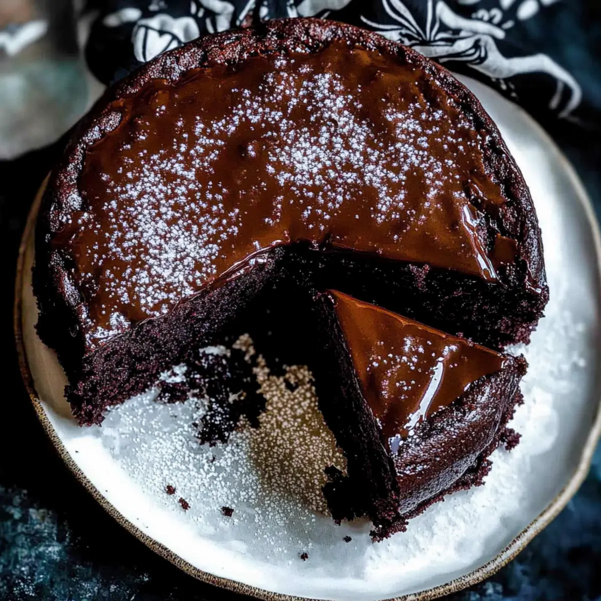 Jump to Recipe Print Recipe“Who knew that a humble cake could carry the spirit of a warm Irish pub right into your kitchen?” That’s exactly what my Indulgent Dark Chocolate Whiskey Cake with Silky Ganache does, combining deep, rich chocolate flavors with a splash of whiskey for a dessert that’s unlike any other. This delightful recipe is perfect for special occasions or simply when you want to elevate your dessert game at home. With its incredibly moist crumb and luxurious ganache, it serves as a boozy treat that delivers both nostalgia and sophistication in every bite. Plus, it’s surprisingly simple to whip up, making it a fantastic choice for novice bakers and seasoned chefs alike. Are you ready to create a slice of magic that will have everyone talking? Let’s dive into this delicious adventure! Why is this cake so irresistible? Decadent flavors meld beautifully: The combination of rich dark chocolate and whiskey creates an indulgent dessert experience. Easy to make: With straightforward instructions and simple ingredients, you’ll impress without the stress. Perfect for gatherings: Whether it’s a birthday, anniversary, or casual dinner, this cake is sure to be the star of the show. Versatile variations: Try swapping the whiskey for Kahlua in the ganache for a fun twist! Plus, for those who love chocolate, a scoop of ice cream on the side would perfectly complement this decadent delight. Dark Chocolate Whiskey Cake Ingredients Get ready to indulge in a homemade masterpiece that will make your taste buds dance! For the Cake Unsweetened Cocoa Powder – Provides chocolate flavor and moisture. (Avoid sweetened cocoa for best results.) Strong Brewed Coffee – Enhances the chocolate flavor depth. (Can substitute with hot water for a milder taste.) Favorite Whiskey – Adds distinct richness and warmth to the cake. (Bourbon or Irish whiskey works well.) Unsalted Butter – Contributes to moisture and richness. (May use salted butter but adjust salt in the recipe.) Granulated Sugar – Sweetness and structure. (Could substitute with a sugar alternative, though texture may vary.) Brown Sugar – Adds moisture and a slight caramel flavor. (Light or dark brown sugar works.) Dark Chocolate Chips – Intensifies chocolate flavor and adds texture. (Use semi-sweet if dark is unavailable.) All-Purpose Flour – Structure of the cake. (For gluten-free, substitute with a 1:1 gluten-free flour blend.) Baking Soda – Leavening agent for cake rise. Kosher Salt – Enhances flavors and balances sweetness. Ground Pepper – Adds subtle warmth and depth flavor. (Can be omitted if preferred.) Ground Cloves – Provides warmth and spiciness. (Substitute with nutmeg for a different flavor profile.) Eggs (3 large + 1 egg white) – Structure, moisture, and richness. (Egg replacement options exist, but may affect texture.) Vanilla Extract – Adds sweetness and aroma. (Use pure vanilla for best flavor.) For the Ganache Dark Chocolate Chips (for Ganache) – For rich chocolate flavor. (Ensure they are high-quality for the best ganache.) Heavy Whipping Cream – Creates a smooth ganache texture. (Light cream could be used, but results will be lighter.) Now that you have everything you need, let’s get baking and bring the warmth of this decadent Dark Chocolate Whiskey Cake with Whiskey Ganache to your kitchen! Step‑by‑Step Instructions for Dark Chocolate Whiskey Cake with Whiskey Ganache Step 1: Preheat Your Oven Begin by preheating your oven to 325°F (162°C). While the oven is warming up, prepare a 10-inch springform pan by generously spraying it with non-stick spray. This will help ensure your Dark Chocolate Whiskey Cake releases easily once it’s baked. Step 2: Melt the Ingredients In a medium saucepan over low heat, whisk together the cocoa powder, strong brewed coffee, whiskey, and cubed unsalted butter. Stir until the mixture is smooth and fully combined, which should take about 5 minutes. You want to see a glossy, silky texture before removing it from the heat. Step 3: Cool the Mixture Once your mixture has reached a silky consistency, take it off the heat and stir in the granulated sugar and brown sugar. Allow the mixture to cool slightly for about 10 minutes. This will prevent cooking the eggs in the next step, ensuring a tender cake. Step 4: Toss the Chocolate Chips While the mixture cools, take a small bowl and combine the dark chocolate chips with 1 tablespoon of cocoa powder. This will help the chocolate chips distribute evenly throughout the cake batter, ensuring that each bite of your Dark Chocolate Whiskey Cake is decadently chocolatey. Step 5: Combine the Dry Ingredients In a separate mixing bowl, whisk together the all-purpose flour, baking soda, kosher salt, ground pepper, and ground cloves. This dry mix is essential for the structure and balance of flavors in your cake. Make sure it’s evenly mixed for the best results. Step 6: Mix the Wet Ingredients With the chocolate mixture cooled, whisk in the eggs, egg white, and vanilla extract until fully incorporated. This should take about 2 minutes, and your mixture should look thick and glossy—just what you want for a rich Dark Chocolate Whiskey Cake. Step 7: Combine Mixtures Gradually add your dry ingredients to the chocolate mixture, stirring gently until just combined. Avoid overmixing; you want a smooth batter without any dry flour visible. Then, gently fold in the tossed chocolate chips, ensuring they’re evenly distributed. Step 8: Bake the Cake Pour the batter into your prepared springform pan and smooth the top with a spatula. Place it in the preheated oven and bake for about 1 hour, checking for doneness around 45 minutes. The cake should spring back when touched lightly and a toothpick inserted should come out clean. Step 9: Cool the Cake Once baked, remove the cake from the oven and let it cool in the pan for about 20 minutes. Then, carefully remove it from the springform pan and let it cool completely on a wir
