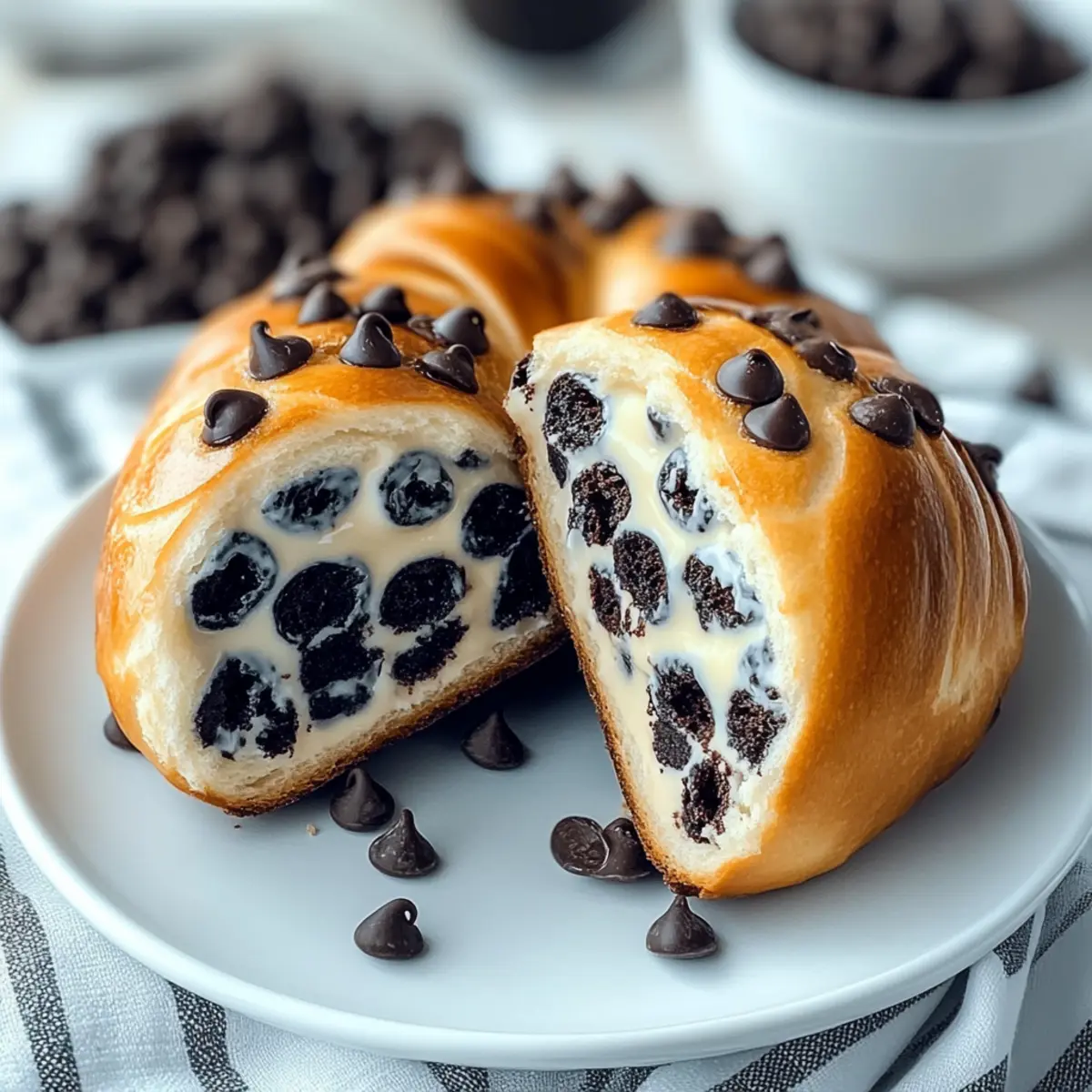 Jump to Recipe Print RecipeThere’s something utterly delightful about the scent of warm pastries wafting through the kitchen. These Decadent Chocolate Chip Vanilla Custard Brioches are like a warm embrace on a Sunday morning, combining the richness of buttery dough with a sweet, velvety custard core and irresistible chocolate chips. Not only are they perfect for a leisurely brunch, but they also offer an elegant touch that will impress any guest at your table. The beauty of this recipe lies in its flexibility—whether you’re seeking a gluten-free option or want to whip up a vegan version, these brioches can easily accommodate your needs. So, are you ready to elevate your baking game and indulge in the bliss of homemade pastries? Why Are These Brioches Irresistible? Warm aromas wafting through your kitchen set the scene for a delightful baking adventure. Rich custard combined with mini chocolate chips creates a deliciously sweet surprise with every bite. Versatile options make it easy to tailor this recipe to your dietary needs, whether gluten-free or vegan. Elevate your brunch with a touch of elegance that will surely wow your guests. If you’re curious about other tempting treats, don’t miss out on these Vegan Chocolate Chip cookies or our delicious Chocolate Croissant Bake for more pastry inspiration! Decadent Chocolate Chip Vanilla Custard Brioches Ingredients For the Dough All-Purpose Flour – Provides structure for the dough; substitute with gluten-free flour for a gluten-free option. Sugar – Adds sweetness to the dough; reduce for less sweetness or use coconut sugar for a healthier choice. Salt – Enhances flavor and is essential for balance—do not omit. Fresh Yeast – Leavens the dough for a light texture; can be replaced with active dry yeast (3g) if fresh yeast is unavailable. Eggs – Adds richness and binds ingredients; use flax eggs for vegan options. Unsalted Butter – Offers flavor and moisture; substitute with vegan butter for a dairy-free option. For the Custard Whole Milk – Creates a creamy custard; use almond or soy milk for a dairy-free version. Vanilla Pod – Infuses rich flavor into the custard; extract can be used as an alternative (1 teaspoon). Egg Yolks – Thickens custard; can replace with cornstarch for an egg-free custard. Sugar (for custard) – Same substitutions as previous sugar note. Cornstarch – Helps to thicken the custard; can be omitted if using a different thickener. For the Chocolatey Goodness Mini Chocolate Chips – Provides a sweet, chocolatey burst; semisweet or dark chocolate chips can also be used. When preparing your Decadent Chocolate Chip Vanilla Custard Brioches, keep in mind these easy substitutions and tips to accommodate various dietary preferences! Step‑by‑Step Instructions for Decadent Chocolate Chip Vanilla Custard Brioches Step 1: Prepare the Dough In a stand mixer, combine all-purpose flour, sugar, salt, and fresh yeast. Add in the eggs and mix on medium speed for about 10 minutes until the dough is smooth and elastic. Gradually incorporate the softened unsalted butter, kneading for an additional 15-20 minutes. The dough should be sticky yet elastic, indicating readiness for the first rise. Step 2: First Rise Cover the kneaded dough with plastic wrap or a clean kitchen towel, placing it in a warm environment. Allow it to rise for approximately 2 hours or until doubled in size. This fermentation process is crucial for achieving that fluffy texture in your Decadent Chocolate Chip Vanilla Custard Brioches. Step 3: Make Custard In a saucepan, gently heat whole milk and butter over low heat with a split vanilla pod, stirring until the butter has melted. Meanwhile, whisk together egg yolks, sugar, and cornstarch in a separate bowl. Once the milk is warm, slowly add it to the egg mixture, whisking continuously. Return the mixture to the saucepan and cook over medium-low heat until thickened, about 8-10 minutes. Transfer to a bowl and let it chill completely. Step 4: Shape Brioches After the dough has risen, turn it out onto a floured surface and roll it into a rectangle. Spread the chilled vanilla custard evenly across the dough and sprinkle mini chocolate chips on top. Carefully roll the dough, then cut it into 8 pieces. Place the pieces cut side up in a greased baking dish and let them rise uncovered for another 2 hours until puffed. Step 5: Bake Preheat your oven to 350°F (180°C) while the brioches are rising. Once ready, brush the tops of each brioche with an egg wash for a beautiful golden finish. Bake for 10-12 minutes, keeping an eye out for a golden brown crust and a soft, puffy texture. Your delectable brioches should fill the kitchen with a delightful aroma as they bake. Step 6: Finishing Touch Create a simple syrup by combining equal parts boiling water and sugar, stirring until dissolved. Once the brioches are out of the oven, brush the syrup over the warm pastries for a delightful shine and added sweetness. Allow them to cool slightly on a wire rack, ready to serve and impress with your homemade Decadent Chocolate Chip Vanilla Custard Brioches! What to Serve with Decadent Chocolate Chip Vanilla Custard Brioches? Indulging in freshly baked pastries creates a perfect moment to curate a delightful meal, and these brioches deserve exquisite companions. Fresh Berries: Enhance the sweetness of the brioches with a vibrant mix of strawberries, blueberries, and raspberries, adding a refreshing tartness. Their brightness complements the rich flavors beautifully. Creamy Whipped Cream: Light and fluffy whipped cream adds a luxurious touch that balances the density of the brioches, making every bite feel like a decadent dessert. Rich Coffee: A cup of strong, aromatic coffee pairs perfectly, cutting through the sweetness and enhancing the flavor profile of your delicious pastries. The combination is sure to wake up your senses. Citrus Salad: A refreshing citrus salad with oranges and grapefruits will act as a zes