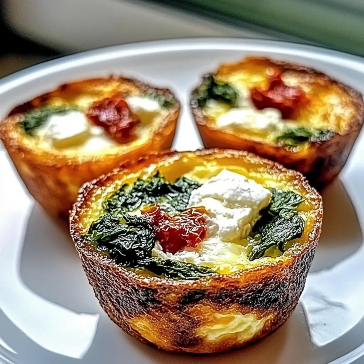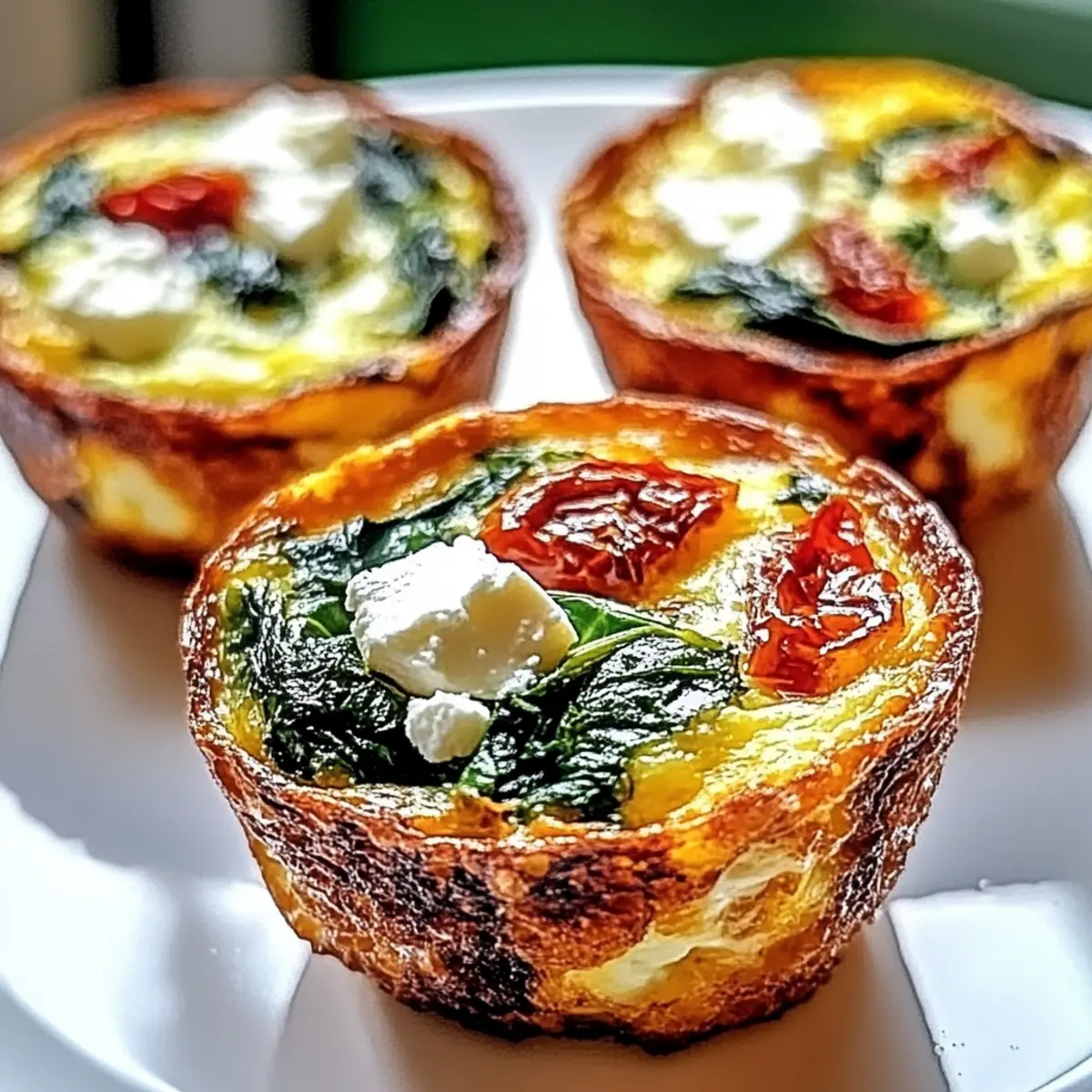 Jump to Recipe Print RecipeAs I lifted the lid on my muffin tin, a wave of savory aroma wrapped around me like a warm blanket, instantly making the kitchen feel cozy. These Spinach, Feta, and Sun-Dried Tomato Egg Muffins are my go-to for any occasion—whether it’s a leisurely weekend brunch or a quick weekday breakfast. Not only are they incredibly easy to whip up, but they also pack a nutritious punch that’ll keep you satisfied. With the rich flavors of creamy feta intertwined with fresh spinach and sweet sun-dried tomatoes, every bite is a delightful experience. Plus, they’re perfect for meal prep, making your busy days a little bit easier. Curious about how to make these delectable muffins your own? Let’s dive into the recipe! Why Are These Muffins a Must-Try? Fluffy Texture: Each muffin bakes to a perfect golden brown, crispy on the outside yet soft and fluffy inside—like a mini quiche in muffin form! Nutritional Powerhouse: Packed with spinach and feta, these muffins offer a healthy dose of vitamins and protein to energize your day. Customizable Delight: Feel free to swap in your favorite ingredients; whether it’s adding mushrooms or switching to goat cheese, the options are endless! Quick Meal Prep: In just over 20 minutes, you’ll have a batch of these delicious muffins ready to nourish you all week. Perfect for a busy lifestyle! Crowd-Pleasing Flavor: With their rich taste and vibrant colors, these muffins are sure to impress family and friends alike—serve them at your next brunch or gathering! For more ideas on delightful dishes, consider checking out these Cheesy Ranch Sausage or Chicken Mac Cheese recipes! Feta and Sun-Dried Tomato Egg Muffins For the Muffins Eggs – The foundation of the muffins, providing protein and structure; large eggs work best for fluffiness. Milk – Introduces moisture and tenderness; almond milk is a great dairy-free alternative. Fresh Spinach – Infuses flavor and nutrients into each bite; can be replaced with kale if desired. Feta Cheese – Adds a creamy and tangy essence; crumbled goat cheese or sharp cheddar can also shine here. Sun-Dried Tomatoes – Brings a sweet and intense flavor; feel free to swap with roasted red peppers for a different twist. Baking Powder – Essential for fluffiness; ensure it’s fresh for maximum rise. Salt & Pepper – Basic seasonings that elevate the overall taste; customize the quantity to suit your flavor preferences. With these simple ingredients, you’ll create delightful Feta and Sun-Dried Tomato Egg Muffins that are sure to impress! Step‑by‑Step Instructions for Feta, and Sun-Dried Tomato Egg Muffins Step 1: Preheat and Prepare Begin by preheating your oven to 375°F (190°C). While the oven warms, grease a muffin tin with nonstick spray to ensure your delicious Feta and Sun-Dried Tomato Egg Muffins release easily after baking. Take a moment to gather your ingredients, so you’re ready to start mixing. Step 2: Whisk the Egg Mixture In a large mixing bowl, crack open your eggs and whisk them until they are frothy, which should take about 1-2 minutes. Carefully add in the milk, followed by a sprinkle of salt and pepper, whisking until the mixture is well combined. This egg base is crucial for achieving that fluffy texture in your muffins. Step 3: Incorporate the Spinach and Cheese Next, gently fold in your fresh spinach, ensuring you’ve squeezed out any excess moisture—this helps avoid soggy muffins. Then, add the crumbled feta cheese and chopped sun-dried tomatoes, mixing everything together with a spatula until evenly distributed. The vibrant colors will start to shine through in this tasty mixture! Step 4: Add Baking Powder Once all ingredients are integrated, sprinkle the baking powder across the mixture and fold it in carefully. Be cautious not to overmix! Just a few stirs will ensure the baking powder is evenly incorporated, allowing your Feta and Sun-Dried Tomato Egg Muffins to rise beautifully in the oven. Step 5: Fill the Muffin Tin Now it’s time to fill your prepared muffin tin! Pour the egg mixture into each cup, filling them about ¾ full to allow space for rising. As you do so, keep an eye out for even distribution among the cups, ensuring that every muffin gets a hearty helping of the delicious filling you’ve created. Step 6: Bake Until Golden Place the muffin tin in the preheated oven and bake for 20-25 minutes. Keep an eye on them as they bake; you’re looking for a golden-brown top and a fragrant aroma filling your kitchen. A toothpick inserted into the center should come out clean, signaling that your muffins are ready. Step 7: Cool and Serve Once baked, remove the muffin tin from the oven and let it cool for about 5 minutes. After they’ve cooled slightly, gently use a knife to loosen the edges and transfer the warm Feta and Sun-Dried Tomato Egg Muffins onto a cooling rack. Serve them warm, and savor every delightful bite! What to Serve with Feta and Sun-Dried Tomato Egg Muffins The delightful flavors of these muffins create the perfect opportunity to craft a beautifully balanced meal that warms the heart and satisfies the palate. Fresh Green Salad: The crispness of a light salad filled with mixed greens and a tangy vinaigrette balances the savory muffins beautifully. Creamy Avocado Toast: This trendy adding a creamy avocado layer lends a rich, buttery flavor, ensuring each bite is a luxurious experience. Roasted Sweet Potatoes: The sweetness from roasted sweet potatoes complements the savory muffins and adds a satisfying heartiness to your meal. Indulge in the contrast of textures and flavors! A sprinkle of salt and pepper on the sweet potatoes elevates their flavor even further. Homemade Salsa: A zesty tomato salsa adds brightness and freshness, perfectly cutting through the richness of the muffins. Easy to whip up and bursting with flavor, salsa can easily be customized to suit your taste, making it a versatile sidekick! Prosecco or Sparkling Water: A bub