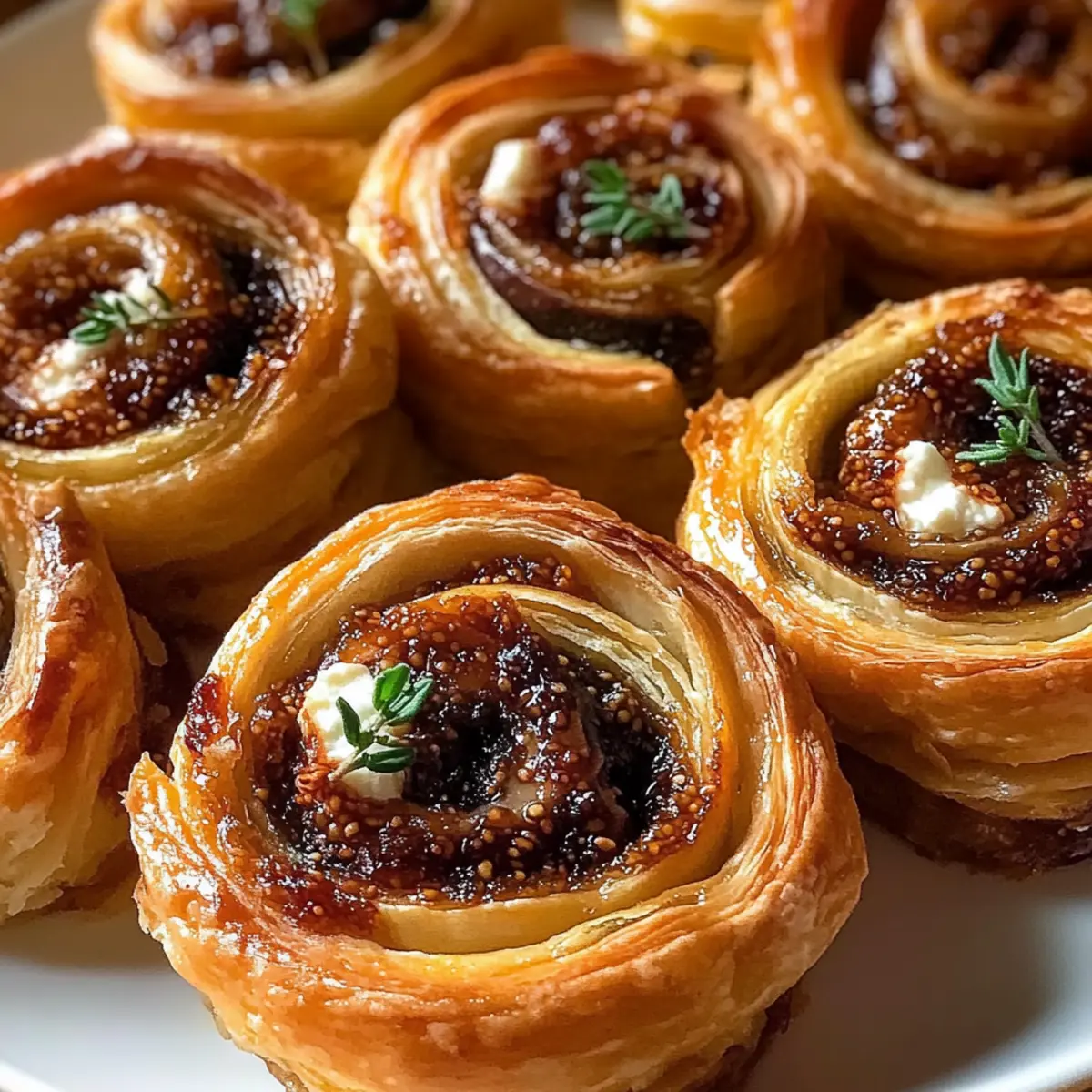 Jump to Recipe Print RecipeThe aroma of baked puff pastry wafting through the air is a comforting reminder that cooking can transform simple ingredients into something magical. My Fig and Goat Cheese Pinwheels are your ultimate solution for a show-stopping appetizer that’s both vegetarian and spectacularly easy to prepare. With their golden, flaky layers encasing a heavenly blend of earthy fig preserves and creamy goat cheese, they’re perfect for impressing guests at brunches, holiday gatherings, or even a cozy night in. These delightful bites not only tickle the taste buds but also invite you to get creative with your own variations, making them a versatile addition to any culinary repertoire. Ready to elevate your entertaining game and explore the endless possibilities? Let’s dive in! Why Are Fig Pinwheels So Irresistible? Delightful Simplicity: These Fig and Goat Cheese Pinwheels are incredibly easy to whip up, making them perfect for any cooking level. Endless Creativity: Transform the filling with apricot or cranberry jams, or swap goat cheese for brie to suit your taste. Perfect Presentation: The golden-brown, flaky exterior and rich interior make for a stunning appetizer that will wow your guests. Crowd-Pleasing Appeal: These bites cater to vegetarians and are sure to be a hit at any gathering, whether casual or formal. Looking for more savory snacks? Don’t miss my Sausage Egg Cheese or Mashed Potato Cheese options! Fig and Goat Cheese Pinwheels Ingredients Elevate your appetizer game with these delightful bites! For the Pinwheels Puff Pastry – This flaky, buttery base creates the perfect texture; keep it cold for easier handling. Fig Preserves – Adds a rich earthy sweetness; feel free to substitute with apricot or cranberry jams for a twist. Goat Cheese – Rich and creamy with a tart finish; brie or mascarpone can be swapped for a milder flavor. Egg Wash – Essential for that golden-brown sheen and for sealing the pastry edges tight. Optional Enhancements Fresh Thyme – Provides a fragrant touch; fresh herbs will elevate the flavors beautifully. Chopped Nuts – Add walnuts or pecans for a delightful crunch in your pinwheels. Honey Drizzle – A touch of honey post-baking enhances the sweetness and brings everything together. Get ready to savor these irresistible Fig and Goat Cheese Pinwheels that will surely impress your guests! Step‑by‑Step Instructions for Fig and Goat Cheese Pinwheels Step 1: Preheat and Prepare Begin by preheating your oven to 400°F (200°C). While the oven warms, line a baking sheet with parchment paper to prevent sticking and allow for easy cleanup. This will ensure your Fig and Goat Cheese Pinwheels bake evenly and come out beautifully golden brown, making for an impressive presentation. Step 2: Roll Out Puff Pastry Take your cold puff pastry and roll it out on a lightly floured surface until it is about 1/8 inch thick. Next, spread a thin layer of fig preserves evenly across the surface of the pastry, leaving a small border around the edges. Follow this with an even layer of creamy goat cheese, which will create a delightful contrast to the sweetness of the fig preserves. Step 3: Roll It Up Starting from one edge, carefully roll the puff pastry tightly into a log shape, ensuring that you keep the filling intact. Once rolled, slice the edges off to create clean ends. Wrap the log in plastic wrap and chill it in the freezer for 15–20 minutes. This chilling step makes it easier to cut the pinwheels neatly, maintaining their beautiful layers when baked. Step 4: Slice the Pinwheels After chilling, remove the log from the freezer and, using a sharp knife, slice it into even rounds approximately 1 inch thick. Clean the knife blade between cuts to ensure each slice remains clean and visually appealing. As you slice, let the aroma of the Fig and Goat Cheese Pinwheels fill your kitchen, reminding you of the deliciousness to come. Step 5: Arrange and Brush Place the sliced pinwheels on the prepared baking sheet, allowing space between each piece for even baking. Then, prepare an egg wash by whisking an egg with a splash of water, and brush this mixture generously over the tops of each pinwheel. This will contribute to a lovely golden color and a shiny finish while sealing the edges effectively during baking. Step 6: Bake to Perfection Carefully transfer the baking sheet to the preheated oven and bake the Fig and Goat Cheese Pinwheels for 15-20 minutes. Keep an eye on them as they cook; they should puff up and turn a gorgeous golden brown when done. The flakiness of the pastry combined with the fragrance of the fig and cheese will create an irresistible aroma throughout your home. Step 7: Cool and Serve Once baked, remove the pinwheels from the oven and allow them to cool slightly on the baking sheet. This brief cooling period will help them set while retaining their delightful crispy texture. Serve warm as a stunning appetizer to impress your guests, and savor the beautiful flavors of your Fig and Goat Cheese Pinwheels. Expert Tips for Fig and Goat Cheese Pinwheels Keep it Chilled: Always work with cold puff pastry to maintain its flakiness. Taking too long or letting it warm can lead to tearing. Don’t Overfill: Stick to a thin layer of fig preserves and goat cheese to prevent leaks during baking. Less is often more for balanced flavors! Use a Sharp Knife: For clean slices, use a sharp knife and clean the blade between cuts. This helps maintain the lovely layers of your fig and goat cheese pinwheels. Space Them Out: Arrange the pinwheels with enough space on your baking sheet. This ensures even cooking and prevents soggy bottoms. Experiment with Fillings: Don’t hesitate to try different combinations! Add chopped nuts or swap jams to create unique variations of these delightful pinwheels. Make Ahead Options These Fig and Goat Cheese Pinwheels are perfect for busy home cooks looking to save time! You can easily prepare the filling and roll t