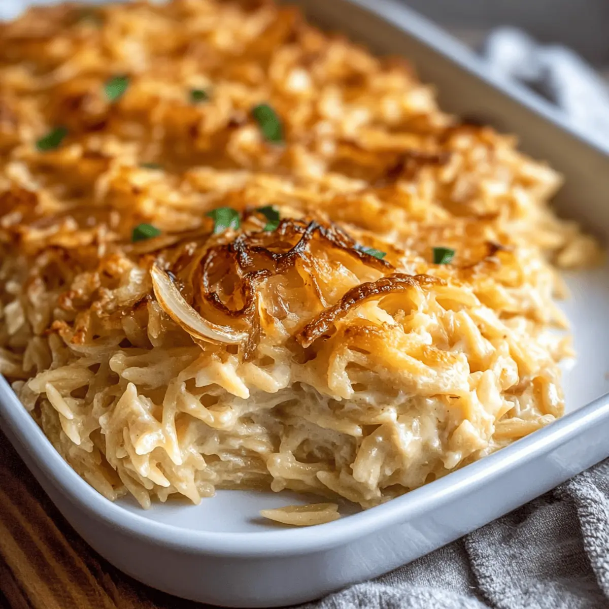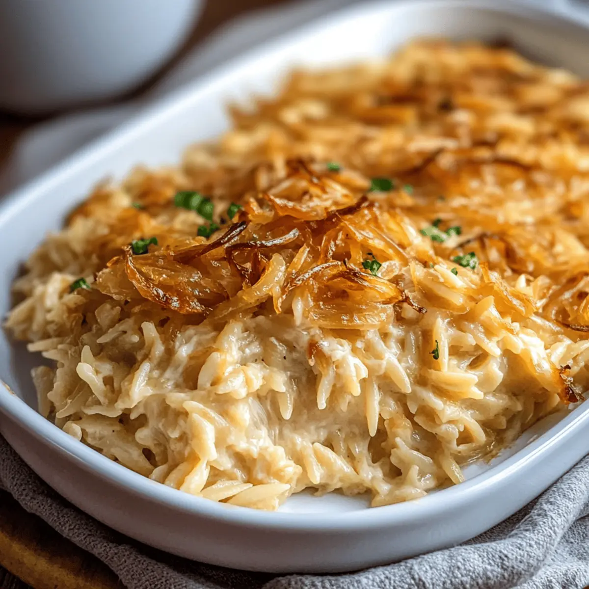 This delectable French Onion Orzo Bake is sure to become a family favorite, combining comforting flavors with endless customization options!