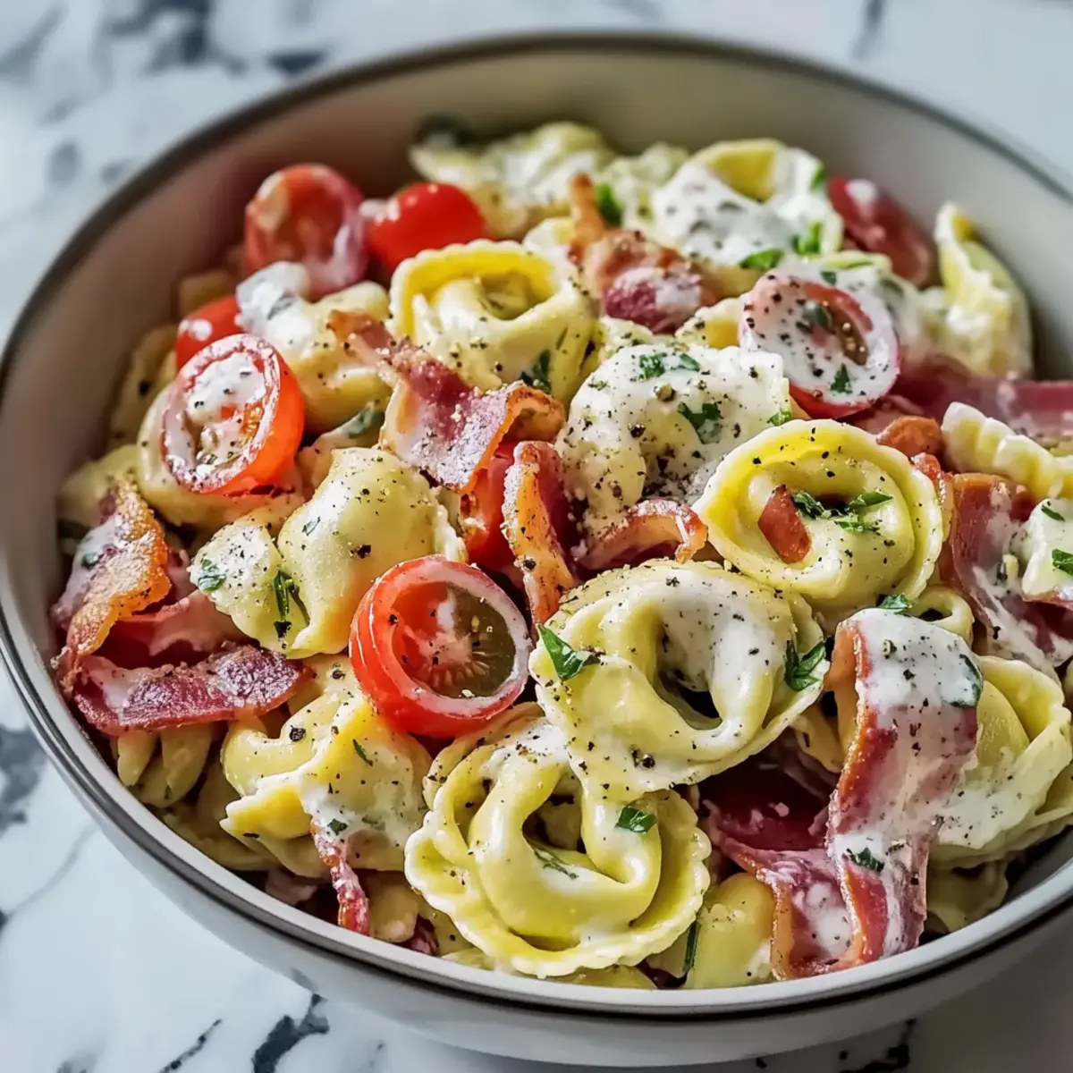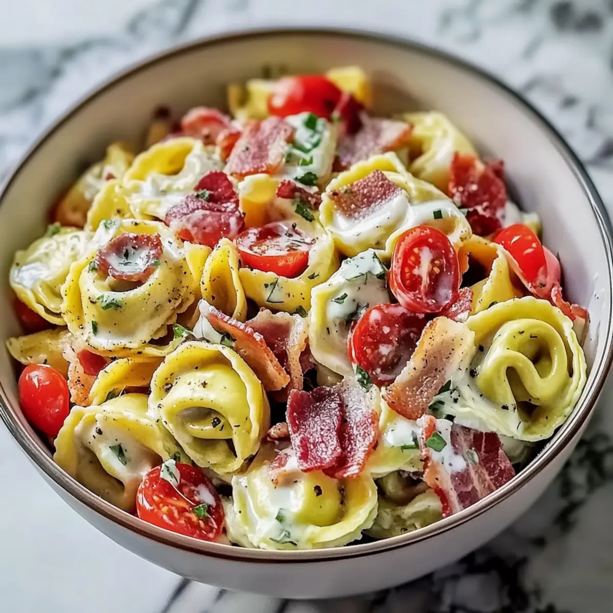 Jump to Recipe Print RecipeAs I tossed together the ingredients for my Fresh Grinder Tortellini Salad, a wave of nostalgia washed over me, transporting me to sun-soaked summer gatherings with family and friends. This pasta salad captures the essence of an Italian sub, but with a playful twist, making it an irresistible addition to any potluck or backyard barbecue. What I love most about this dish is its ability to adapt to your preferences—gluten-free pasta options and veggie swaps mean everyone can join in on the fun. Plus, it’s quick to prepare and can easily be made ahead, giving you more time to relax and enjoy the summer vibes. Are you ready to elevate your next meal with this delightful salad? Let’s dive into the recipe! Why Is This Salad a Summer Favorite? Vibrant, Flavorful Ingredients: The Fresh Grinder Tortellini Salad bursts with flavors reminiscent of classic Italian subs, showcasing a delightful mix of creamy, tangy, and savory elements. Quick & Easy Prep: You’ll love how simple it is to whip up! In just a few steps, you can have a delicious salad ready for any gathering. Versatile Options: Adapt it to your liking by using gluten-free pasta or swapping out ingredients like bacon for chickpeas—perfect for accommodating various dietary needs. Crowd-Pleaser: This salad is sure to impress your guests! Serve it at your next BBQ or potluck, and watch it disappear. Make-Ahead Convenience: Prep earlier in the day or a couple of days in advance and refrigerate, allowing flavors to meld beautifully while you focus on other dishes. For a refreshing side, consider serving it alongside a simple arugula salad with olive oil and lemon juice, or add some tasty elements from our Corn Salad Savory for a complete meal! Fresh Grinder Tortellini Salad Ingredients For the Salad • Frozen Cheese Tortellini – This serves as the hearty base; fresh tortellini can elevate the texture even more. • Mayonnaise – This adds creaminess; Greek yogurt is a lighter alternative if desired. • Red Wine Vinegar – Brings acidity and tang; white wine vinegar is a suitable alternative. • Bacon – Provides a savory crunch and richness; try pancetta or turkey bacon as substitutes. • Parmesan Cheese – Adds a delightful nutty flavor; consider Pecorino Romano for a sharper taste. • Pepperoncini Peppers – Contributes mild heat and tang; banana peppers can be swapped in if needed. • Red Onion – Offers sharpness and crunch; mild green onions or shallots work as alternatives. • Cherry Tomatoes – They provide sweetness and juiciness; any fresh tomato can substitute if necessary. • Dried Oregano & Italian Seasoning – These herbs deepen the flavor profile; fresh herbs can further enhance the dish. • Garlic Powder – Boosts the overall flavor; for a stronger aroma, use fresh minced garlic. • Red Pepper Flakes – An optional touch of heat; feel free to omit for a milder salad. For Serving • Fresh Basil – Chopped basil can brighten the dish; it pairs beautifully with the Italian flavors. • Olive Oil – Drizzling extra virgin olive oil before serving enhances richness; consider it a finishing touch. This Fresh Grinder Tortellini Salad will become a cherished staple at your summer gatherings—it’s a delicious way to bring loved ones together! Step‑by‑Step Instructions for Fresh Grinder Tortellini Salad Step 1: Cook Bacon In a skillet over medium heat, cook 4-6 slices of bacon until they are golden brown and crispy, about 6–8 minutes. Use tongs to transfer the cooked bacon to a plate lined with paper towels, allowing the excess grease to drain. Once cooled, chop the bacon into bite-sized pieces and set aside to add a savory crunch to your Fresh Grinder Tortellini Salad. Step 2: Cook Tortellini Bring a large pot of salted water to a rolling boil. Add 12-16 ounces of frozen cheese tortellini and cook according to the package instructions, typically 2–4 minutes, until al dente. Drain the tortellini in a colander and rinse under cold water to stop the cooking process. This step ensures the pasta retains its perfect texture when combined in the salad. Step 3: Prepare Dressing In a large mixing bowl, combine ½ cup of mayonnaise, 2 tablespoons of red wine vinegar, and a pinch of salt. Add 1 teaspoon of dried oregano, 1 teaspoon of Italian seasoning, ½ teaspoon of garlic powder, and a sprinkle of red pepper flakes for a touch of heat. Whisk everything together until smooth and creamy, creating a flavorful base for your Fresh Grinder Tortellini Salad. Step 4: Combine Ingredients Once the tortellini has cooled, add it to the dressing along with ½ cup of chopped pepperoncini, ½ cup of grated Parmesan cheese, ½ cup of finely chopped red onion, and 1 cup of halved cherry tomatoes. Carefully toss everything together using a spatula until the tortellini and vegetables are completely coated in the creamy dressing. This ensures each bite is packed with flavor. Step 5: Chill Salad Cover the mixing bowl tightly with plastic wrap or transfer the salad to an airtight container. Refrigerate for at least 2 hours to allow the flavors of the Fresh Grinder Tortellini Salad to meld beautifully. Chilling not only enhances the taste but also helps the textures blend together, making for a refreshing dish ready to serve at your next gathering. Expert Tips for Fresh Grinder Tortellini Salad Perfect Tortellini: Avoid overcooking the tortellini; ensure it’s al dente for the best texture in your Fresh Grinder Tortellini Salad. Flavor Fusion: Chill the salad for at least 2 hours before serving. This allows all the ingredients to meld and create a harmonious flavor profile. Dressing Ratio: Reserve some dressing to re-add just before serving. This keeps the salad from drying out and maintains its creaminess. Ingredient Flexibility: Feel free to substitute. Use gluten-free pasta or swap bacon for chickpeas to cater to different dietary preferences. Fresh Herbs: Consider adding fresh basil or parsle