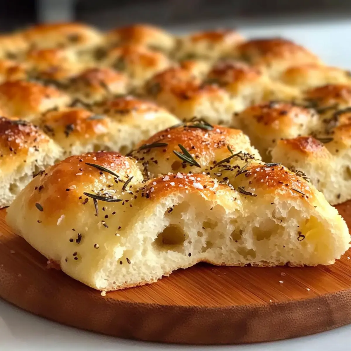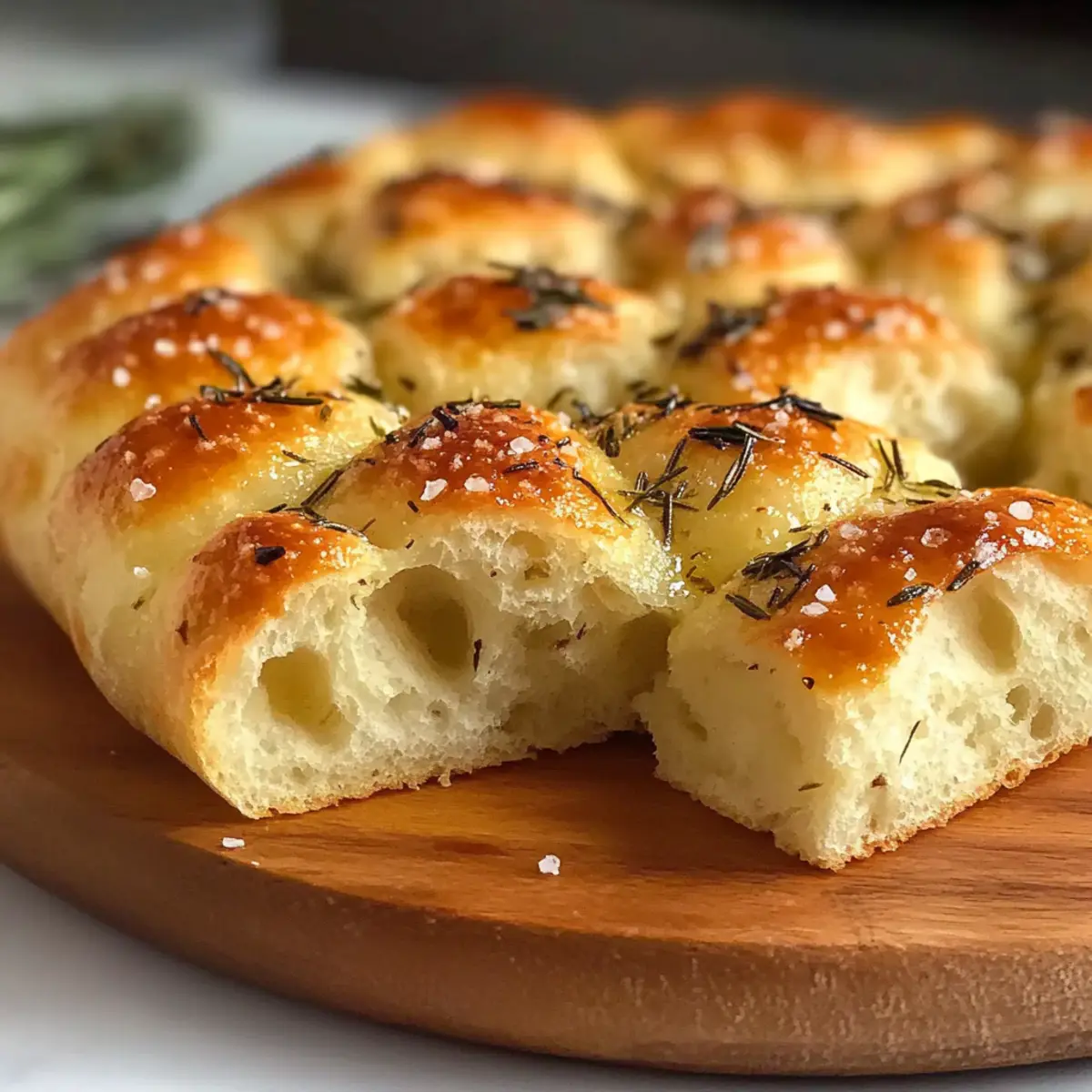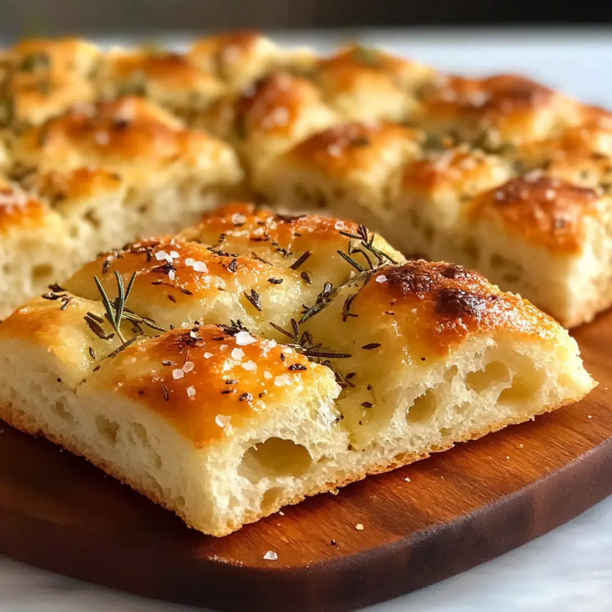 Jump to Recipe Print RecipeAs the warm aroma of freshly baked dough envelops my kitchen, I can’t help but feel a wave of nostalgia engulf me. There’s something utterly comforting about homemade bread, and today, I’m excited to share my recipe for Gluten-Free Focaccia Bread. This easy Italian flatbread captures the essence of classic focaccia while being completely gluten-free, allowing everyone to indulge without worry. The chewy texture and golden crust make it a versatile delight—perfect for an impromptu snack, a side to your favorite soup, or as a base for vibrant sandwiches. Plus, with minimal ingredients and straightforward steps, you’ll find yourself impressing friends and family in no time! So, are you ready to dive into a baking adventure that will elevate your homemade meals? Why is Gluten Free Focaccia Bread a Must-Try? Simplicity, this recipe features straightforward steps that require minimal effort, perfect for both beginner and seasoned bakers. Irresistible Flavor comes from the delightful blend of olive oil and dried rosemary, providing a taste that rivals traditional recipes. Versatile Use means it’s ideal as a standalone snack, savory side, or a delicious base for sandwiches. Time-Saving preparation ensures you can whip it up quickly without stress—perfect for busy weeknights! Crowd-Pleasing Appeal guarantees that everyone will enjoy it, whether they need a gluten-free option or not. Plus, if you’re looking for more easy baking ideas, check out my Cream Cheese Bread or Alfredo Garlic Bread for even more delicious options! Gluten Free Focaccia Bread Ingredients For the Bread Gluten-Free All-Purpose Flour Blend – Provides structure and chewiness; can substitute with almond flour or oat flour blends, but may alter texture. Warm Water (about 110°F) – Activates yeast for rising; ensure it’s not too hot to avoid killing yeast. Olive Oil – Adds moisture and flavor; extra may be drizzled on top for richness. Substitute with avocado oil if desired. Honey – Acts as a sweetener and helps activate yeast; can substitute with agave syrup for vegan options. Active Dry Yeast – Leavening agent that helps the bread rise; instant yeast can be used for easier preparation. Salt – Enhances flavor; essential for balanced taste—do not omit! Dried Rosemary – Adds aromatic flavor; can substitute with thyme or omit for a simpler bread. For the Topping Sea Salt Flakes – For topping, adds crunch and flavor contrast; kosher salt can be used if not available. Feel free to explore this gluten-free focaccia bread recipe, perfect for bread lovers eager to enjoy homemade goodness! Step‑by‑Step Instructions for Gluten Free Focaccia Bread Step 1: Prepare the Yeast Mixture In a small bowl, combine 1 cup of warm water heated to about 110°F with 1 tablespoon of honey. Sprinkle 2 teaspoons of active dry yeast over the top and let it sit for 5–10 minutes until it becomes frothy. This step is crucial for activating the yeast and ensuring your gluten free focaccia bread rises beautifully. Step 2: Mix the Dry Ingredients In a large mixing bowl, whisk together 3 cups of gluten-free all-purpose flour blend and 1 teaspoon of salt. This step helps evenly distribute the salt throughout the flour, ensuring your gluten free focaccia bread is flavorful. Once mixed, create a well in the center to prepare for the wet ingredients. Step 3: Combine Wet and Dry Ingredients Pour the frothy yeast mixture along with 2 tablespoons of olive oil into the well of the flour blend. Mix with a wooden spoon or spatula until a thick, sticky batter forms. This dough should be well combined but will not have the same consistency as traditional bread dough; it should resemble a thick cake batter. Step 4: Spread the Dough into the Pan Grease a 9×13 inch baking pan with olive oil to prevent sticking. Using oiled fingers, spread the gluten free focaccia dough evenly across the bottom of the pan. Dimple the top of the dough gently with your fingers to create the characteristic focaccia texture, ensuring each dimple is deep enough for toppings to settle. Step 5: Add Toppings and Let Rise Drizzle additional olive oil over the surface of the dough. Sprinkle 1 tablespoon of dried rosemary and sea salt flakes generously on top. Cover the pan loosely with a towel and let it rise in a warm place for about 20 minutes, or until puffed slightly—this step enhances the flavor and texture of your gluten free focaccia bread. Step 6: Bake the Focaccia Preheat your oven to 400°F (200°C). Once at temperature, place the focaccia in the oven and bake for 25–30 minutes, or until it turns golden brown on top. Keep an eye on it towards the end of the baking time; the perfect gluten free focaccia bread should have a crisp exterior and a soft, chewy interior. Step 7: Cool and Serve Once baked, remove the focaccia from the oven and allow it to cool in the pan for about 10 minutes. This cooling time helps set the texture. Then, transfer the focaccia to a wire rack to cool slightly before slicing into squares. Your gluten free focaccia bread is now ready to serve, whether as a snack, side dish, or a fabulous sandwich base! Gluten Free Focaccia Bread Variations Feel free to customize your Gluten Free Focaccia Bread with these creative twists and substitutions that will make your baking experience even more delightful! Herb-Infused: Add a mix of dried herbs like oregano or basil for a fragrant twist. Savory Toppings: Sprinkle olives, sun-dried tomatoes, or feta cheese into the dough before baking for added flavor. Spicy Kick: Incorporate red pepper flakes into the dough or drizzle chili oil on top for a spicy version. Cheesy Delight: Mix in shredded cheese or top with mozzarella before baking for a gooey, cheesy focaccia. Nutty Texture: Add finely chopped nuts like walnuts or pine nuts to the batter for a delightful crunch. Sweetened Version: Replace the honey with a spoonful of maple syrup for a lightly sweet twist—perfect