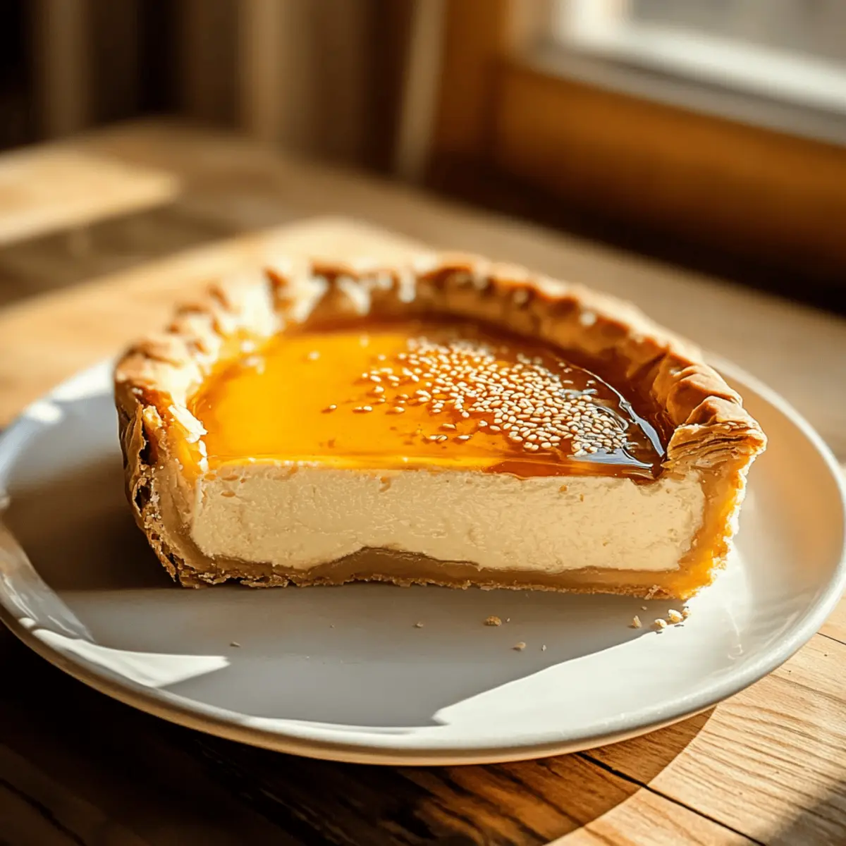 After baking, let your pie cool for about 10 minutes on a wire rack. This cooling period allows the filling to set, making slicing easier later. While it’s cooling, prepare to drizzle it with warmed honey and sprinkle toasted sesame seeds on top for that final, delightful touch.
