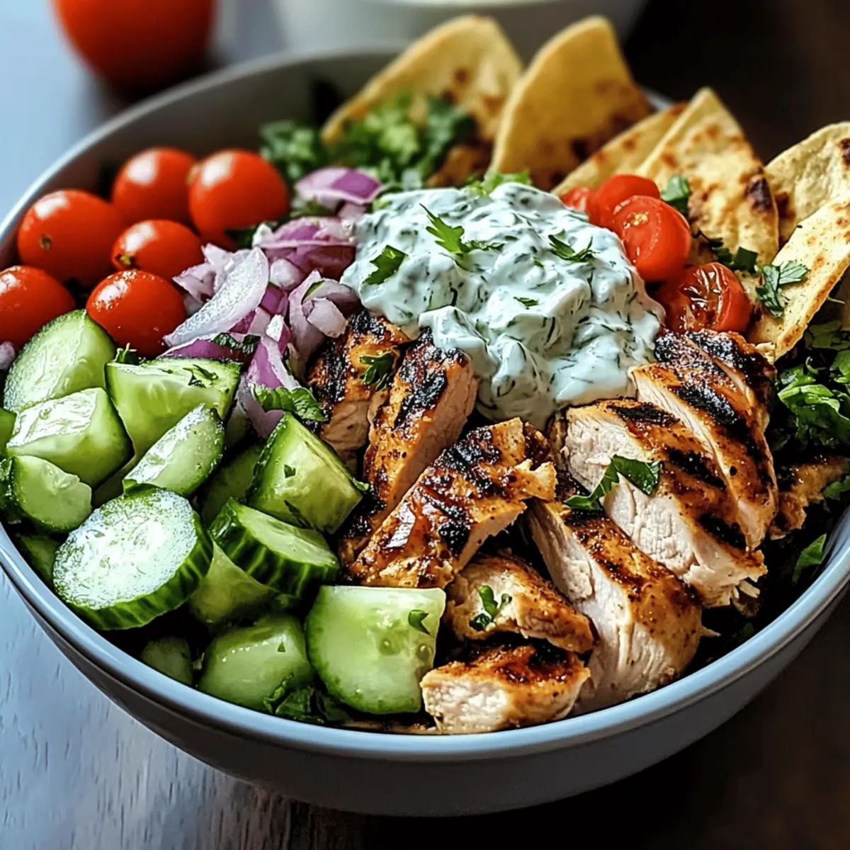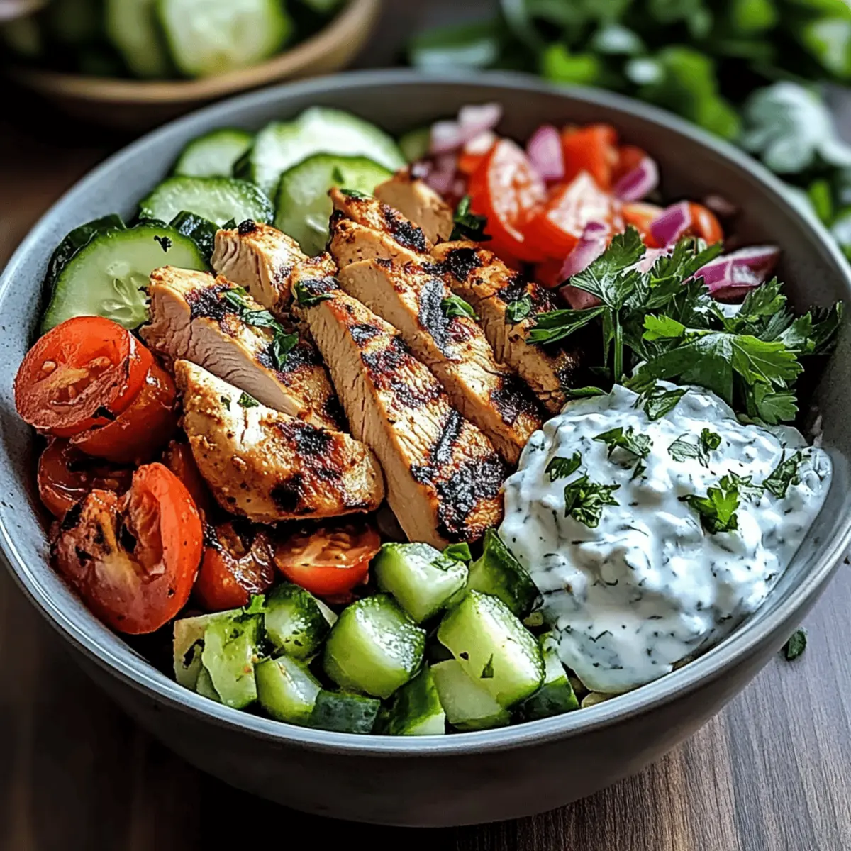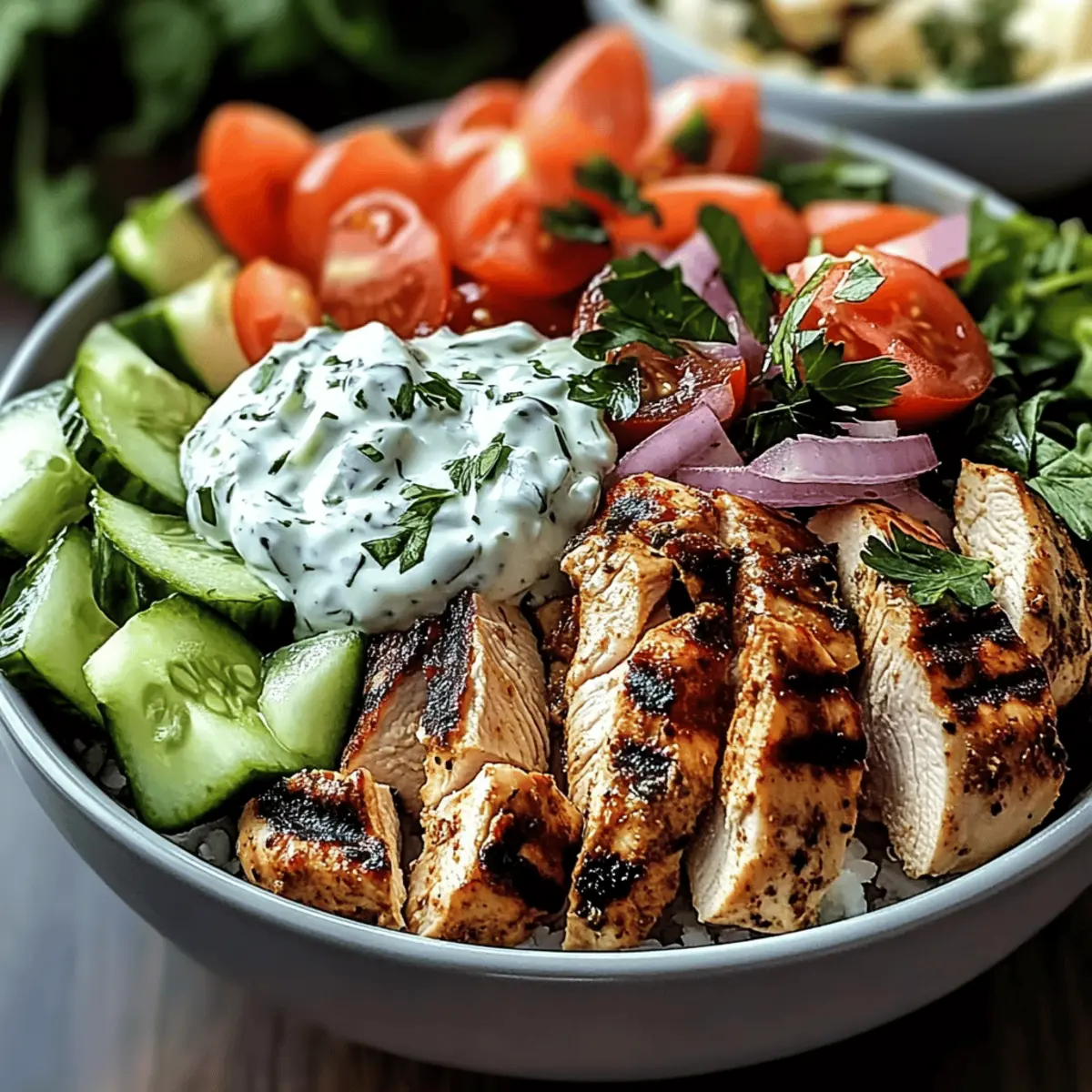 Jump to Recipe Print RecipeAs the sizzling aroma of marinated chicken fills your kitchen, it becomes impossible to resist envisioning a meal brimming with Mediterranean vibrance. Greek Chicken Gyro Bowls offer a delightful escape from ordinary dinners, marrying the tender juiciness of seasoned chicken with refreshing cucumbers, ripe tomatoes, and indulgent creamy tzatziki. What’s truly fantastic about this recipe is its flexibility; you can easily customize it to fit your family’s tastes or meal prep needs, all while enjoying a healthy, hearty dish. Whether you’re enjoying a quick weeknight dinner or impressing friends at a gathering, these gyro bowls are sure to satisfy every craving. Curious about how to assemble your perfect bowl today? Let’s dive into the flavors of Greece together! Why Make Greek Chicken Gyro Bowls? Delicious, healthy options: Filled with lean protein and fresh vegetables, these bowls are a wholesome choice for any meal. Customizable flavors: Easily swap ingredients like rice for quinoa or lamb for chickpeas to suit your taste. Quick preparation: Ready in under 30 minutes, perfect for busy weeknights or meal prep. Family-friendly appeal: With flavors everyone loves, it’s a hit for both kids and adults! Meal prep magic: Perfect for storing separately, making it easy to enjoy throughout the week, just like our Chicken Broccoli Savory or Butter Chicken Comfort. Mediterranean vibrance: Experience the freshness of Mediterranean cuisine that brightens any dinner table with these gyro bowls! Greek Chicken Gyro Bowls Ingredients Looking to create the perfect Greek Chicken Gyro Bowls? Here’s what you’ll need! For the Chicken Marinade Chicken Breast – lean and juicy; marinating boosts flavor. Olive Oil – adds moisture; substitute with avocado oil if needed. Lemon Juice – brightens flavors, tenderizes chicken; vinegar can be an alternative. Garlic – lends depth to the marinade; garlic powder works in a pinch. Greek Yogurt – creates creaminess in tzatziki; sour cream is a good replacement if you’re in a hurry. For the Bowl Base Rice or Quinoa – serves as a filling base; cauliflower rice lowers carbs. Cucumber – fresh and crunchy; zucchini can offer a similar texture. Tomatoes – brings juiciness and color; cherry tomatoes are a sweet substitute. Red Onion – provides a sharp flavor contrast; use shallots for a milder taste. For the Tzatziki Sauce Greek Yogurt – the main ingredient, offers creamy richness; opt for sour cream if you like. Garlic – amplifies flavor; adjust amount to your preference. Cucumber – shredded into the sauce for freshness; be mindful of moisture levels. Lemon Juice – adds brightness and acidity; consider apple cider vinegar for a twist. Dill – contributes a herby flavor; fresh, dried, or even parsley can work as replacements. Optional Toppings Feta Cheese – crumbled for a salty kick; omit for dairy-free options. Olives – add briney flavors and healthy fats; skip if you’re not a fan. Fresh Herbs – parsley or mint offer a lovely garnish; enhance with anything green! These Greek Chicken Gyro Bowls are not only delicious but also lend themselves to healthy customization, making them a perfect choice for your next meal! Step‑by‑Step Instructions for Greek Chicken Gyro Bowls Step 1: Marinate the Chicken In a mixing bowl, whisk together olive oil, lemon juice, minced garlic, Greek yogurt, and your choice of spices to create a flavorful marinade. Add the chicken breasts, ensuring they’re completely coated. Cover the bowl and let it marinate in the refrigerator for at least 15 minutes, or up to overnight for the best flavor development. Step 2: Cook the Chicken Preheat your grill or a non-stick skillet over medium-high heat. Once hot, remove the chicken from the marinade and place it on the grill or skillet. Cook for about 5-7 minutes on each side, or until the chicken reaches an internal temperature of 165°F and is nicely charred. Remove from heat and let rest for a few minutes before slicing. Step 3: Prepare the Base While the chicken is cooking, prepare your choice of base for the Greek Chicken Gyro Bowls. Cook quinoa or rice according to package instructions or place a bed of fresh greens in each serving bowl. Aim to have a fluffy texture for the grains, which should take around 15-20 minutes, allowing everything to come together seamlessly. Step 4: Chop the Vegetables On a cutting board, finely dice the cucumbers, tomatoes, and red onion. Aim for bite-sized pieces, making sure the colors pop for visual appeal. Set them aside in separate bowls to make assembly easier. The fresh crunch of these veggies will bring vibrant flavor and texture to your Greek Chicken Gyro Bowls. Step 5: Make the Tzatziki Sauce In a small bowl, combine Greek yogurt, minced garlic, shredded cucumber, lemon juice, and dill. Mix well until smooth and creamy, adjusting seasoning with salt to taste. This tzatziki sauce will bring a refreshing balance to the richness of the chicken, making it an essential component of your Greek Chicken Gyro Bowls. Step 6: Assemble the Bowls Take your cooked base and spoon it into bowls. Layer sliced marinated chicken atop the base, followed by the diced cucumbers, tomatoes, and red onion. Drizzle a generous amount of tzatziki sauce over the top, ensuring every bite captures the flavors of your Greek Chicken Gyro Bowls. Step 7: Add Optional Toppings For extra flavor and texture, feel free to sprinkle crumbled feta cheese and your choice of olives on top of the assembled bowls. Add some fresh herbs like parsley or mint to enhance the presentation. These little touches will elevate your Greek Chicken Gyro Bowls, making them truly delightful to enjoy! What to Serve with Greek Chicken Gyro Bowls Elevate your dining experience with delicious sides and accompaniments that perfectly complement these vibrant Greek Chicken Gyro Bowls. Warm Pita Bread: Soft and chewy, perfect for scooping up chicken and tzatzik