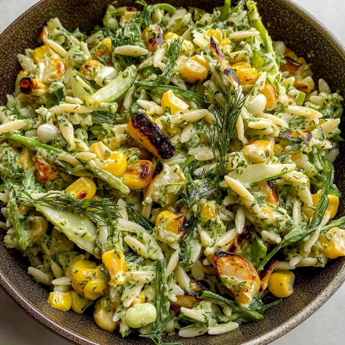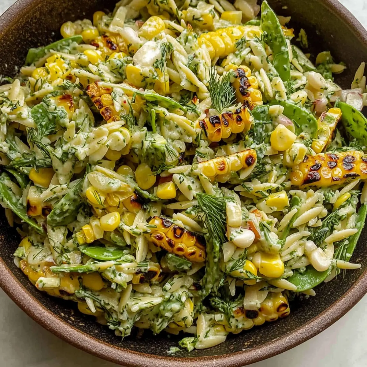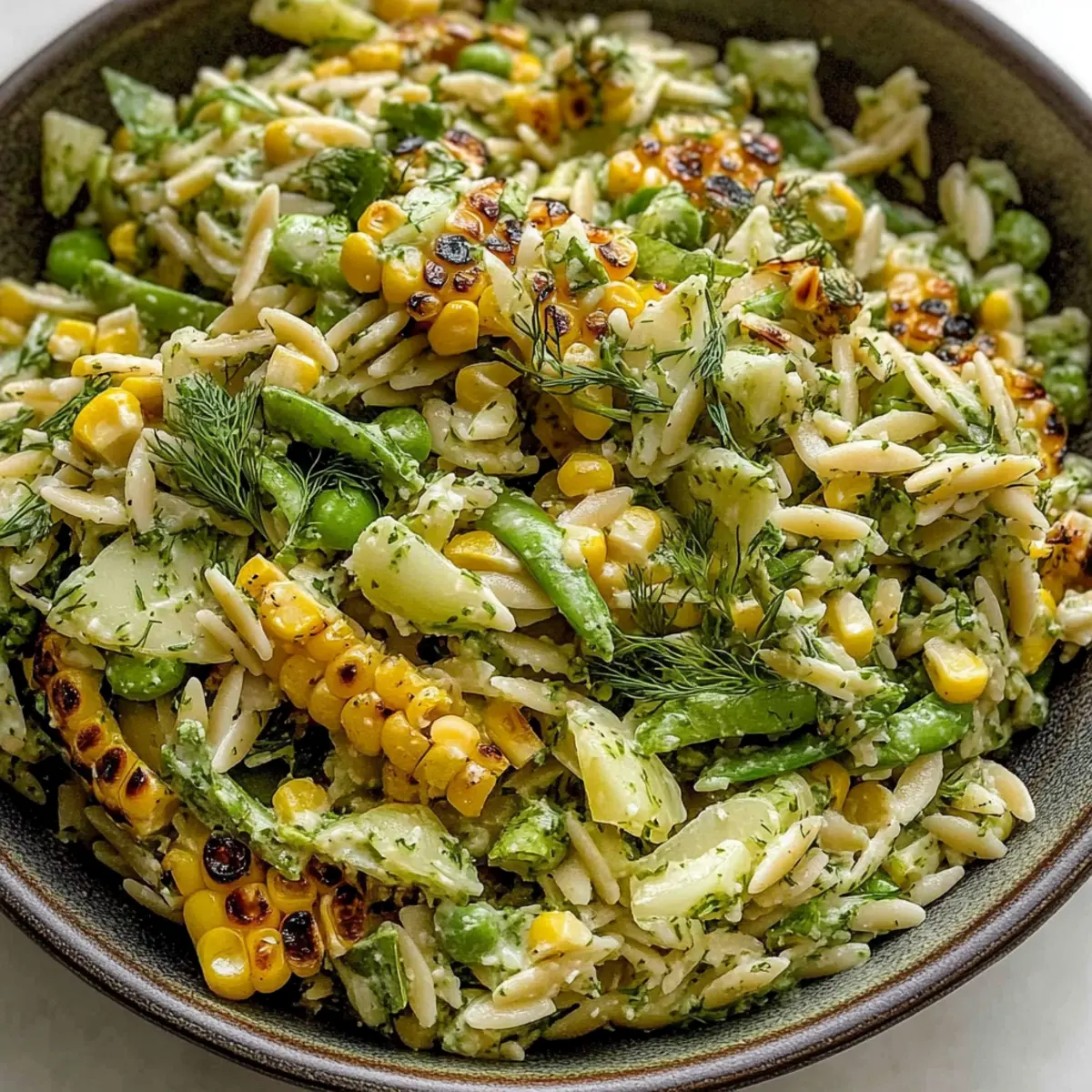 A refreshing Grilled Corn Orzo Salad with Scallion Dill Dressing that's perfect for summer gatherings.