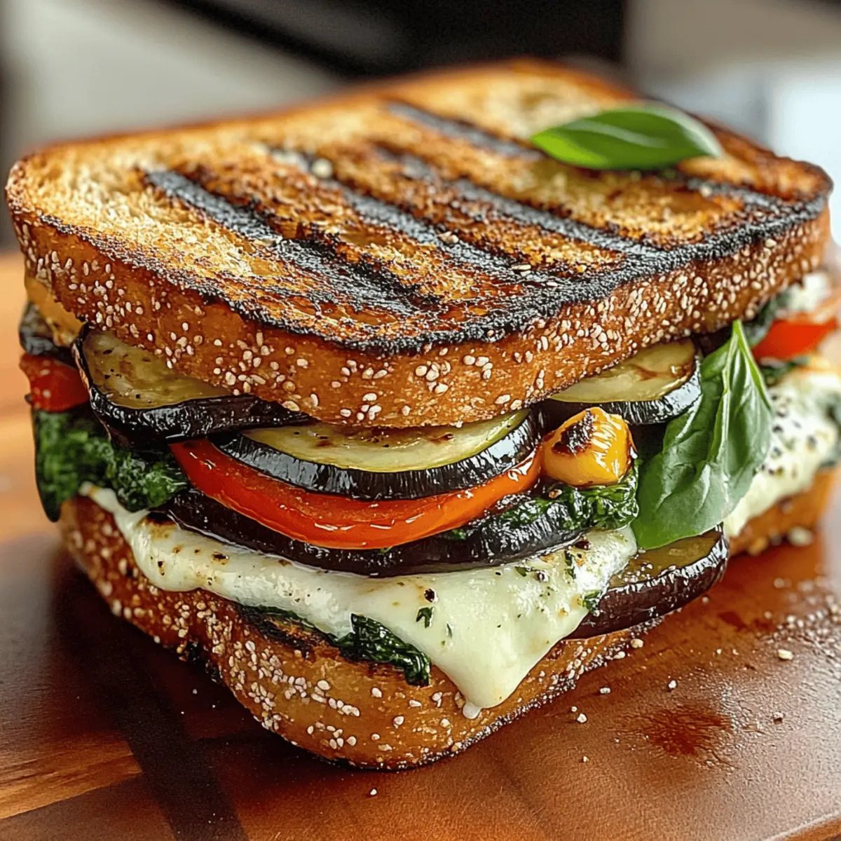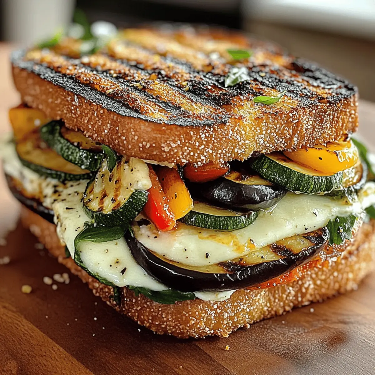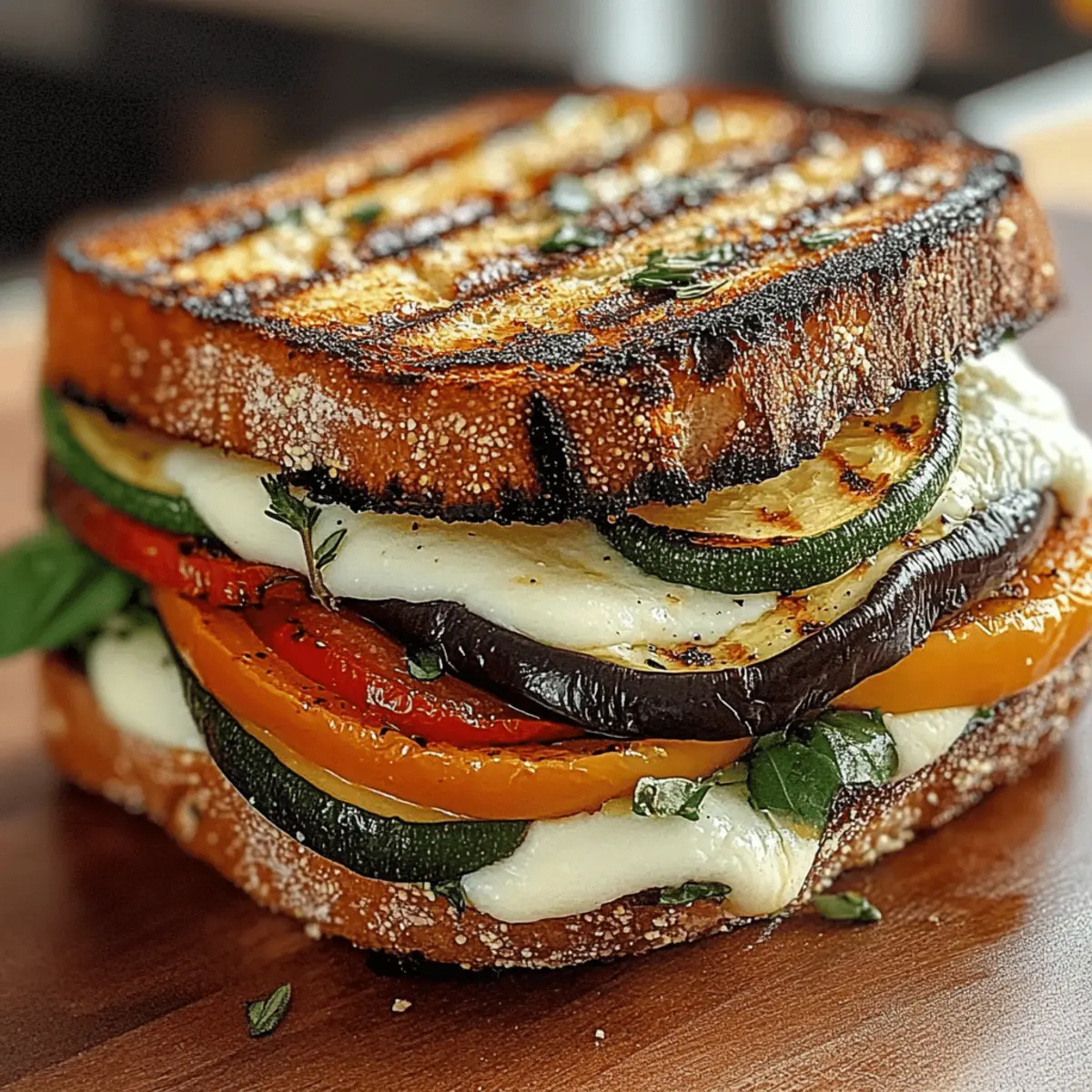 Jump to Recipe Print RecipeThe sizzle of vegetables hitting the grill is music to my ears, bringing back memories of sun-soaked weekends with friends. There’s something magical about creating Grilled Veggie & Mozzarella Sandwiches that not only warms the heart but also delights the palate. This recipe offers a wholesome escape from fast food, featuring fresh, seasonal veggies grilled to perfection and creamy mozzarella that melts like a dream. What sets these sandwiches apart is their quick prep time, making them an effortless choice for a satisfying lunch or an impressive dinner party dish. The smoky flavors and vibrant colors are sure to make everyone sit up and take notice. Ready to dive into a delightful world of flavor? Let’s get grilling! Why are Grilled Veggie Sandwiches so delightful? Freshness shines through in every bite with seasonal vegetables that elevate your meal to new heights. Easy to customize, this recipe lets you mix and match veggies, ensuring there’s something for everyone. Quick prep time means you can have a gourmet sandwich on your table in no time—perfect for busy weekdays! Impressive presentation makes these sandwiches ideal for gatherings; serve alongside a vibrant side salad or pair them with homemade chips for a complete meal. Embrace the deliciousness of plant-based eating and enjoy a satisfying, wholesome dish that your whole family will love! Grilled Veggie & Mozzarella Sandwich Ingredients For the Sandwich • Rustic Sourdough Bread – A flavorful base that provides a chewy crust and airy texture. • Zucchini – Low in calories and adds a slightly sweet taste when grilled, plus it’s a good source of vitamin C. • Red Bell Pepper – Brings a burst of sweetness and vibrant color, rich in vitamins A and C for immune support. • Eggplant – Offers a meaty texture and unique flavor, full of fiber and antioxidants for heart health. • Fresh Spinach Leaves – Adds a fresh, peppery taste while boosting nutritional content with vitamins and iron. • Fresh Mozzarella Cheese – Melts beautifully for a creamy texture, providing calcium and protein for healthy bones. For Grilling & Adding Flavor • Olive Oil – Enhances richness and helps achieve that perfect grill mark while offering anti-inflammatory benefits. • Balsamic Vinegar – A drizzle offers tangy sweetness that brightens the flavors of your grilled veggies. • Fresh Basil Leaves – Adds an aromatic note with additional anti-inflammatory properties. • Optional Pesto – Rich in herby flavor; a delicious choice made from basil, garlic, and pine nuts to elevate your sandwiches. Now that you have the essence of these Grilled Veggie & Mozzarella Sandwich ingredients, gather your fresh produce and let’s get cooking! Step‑by‑Step Instructions for Grilled Veggie & Mozzarella Sandwiches Step 1: Prep the Grill Start by preheating your grill or grill pan to a medium to medium-high heat, ideally between 375°F and 450°F. This ensures that your Grilled Veggie & Mozzarella Sandwiches will achieve those delightful grill marks and smoky flavors. Allow the grill to heat up for about 10 minutes before you begin grilling your veggies. Step 2: Prepare Vegetables While the grill heats, wash and slice the zucchini, red bell pepper, and eggplant into even rounds or strips. This uniformity helps them cook evenly. In a large mixing bowl, toss the sliced vegetables with olive oil, balsamic vinegar, salt, and pepper, ensuring they are well-coated to enhance flavor and encourage caramelization on the grill. Step 3: Grill Vegetables Once the grill is ready, place the vegetables carefully on it, avoiding overcrowding. Grill them for about 3 to 5 minutes on each side, or until they become tender and develop beautiful grill marks. Keep an eye on them to prevent burning; the vegetables should be soft with a slight char for those perfect smoky notes in your Grilled Veggie & Mozzarella Sandwiches. Step 4: Assemble Sandwiches With your grilled vegetables ready, take two slices of rustic sourdough bread. If you’d like to add a flavorful twist, spread a layer of pesto on one or both slices. Now, layer your grilled vegetables and slices of fresh mozzarella between the two pieces of bread, creating a delicious and colorful sandwich ready for grilling. Step 5: Grill Sandwiches Brush the outside of each sandwich lightly with olive oil, which will help achieve a golden-brown crust. Place the assembled sandwiches on the grill and cook for about 3 to 4 minutes on each side, or until the bread is crispy and the mozzarella has melted beautifully, creating an irresistible Grilled Veggie & Mozzarella Sandwich experience. Step 6: Serve Once grilled to perfection, remove the sandwiches from the grill and let them rest for a moment. This allows the flavors to meld beautifully while making them easier to slice. Garnish with fresh basil leaves for an added touch, and serve alongside a crisp salad or a dipping sauce to enjoy a wholesome and satisfying meal. How to Store and Freeze Grilled Veggie & Mozzarella Sandwiches Fridge: Store leftovers in an airtight container for up to 2 days. Wrap individual sandwiches in foil to maintain freshness while preventing sogginess. Freezer: For longer storage, wrap each sandwich tightly in plastic wrap and aluminum foil, then freeze for up to 3 months. Thaw in the fridge overnight before reheating. Reheating: To enjoy your Grilled Veggie & Mozzarella Sandwiches, reheat in a pan over low heat for 5-7 minutes or in the oven at 350°F (175°C) until heated through. This keeps the bread crispy while melting the cheese again. What to Serve with Grilled Veggie & Mozzarella Sandwiches Elevate your meal with delightful accompaniments that perfectly balance the vibrant flavors of your vegetarian creation. Crispy Sweet Potato Fries: These golden, caramelized fries add a delightful sweetness and crunchy texture, making for a comforting side. The pairing is hearty yet not heavy, creating a complete