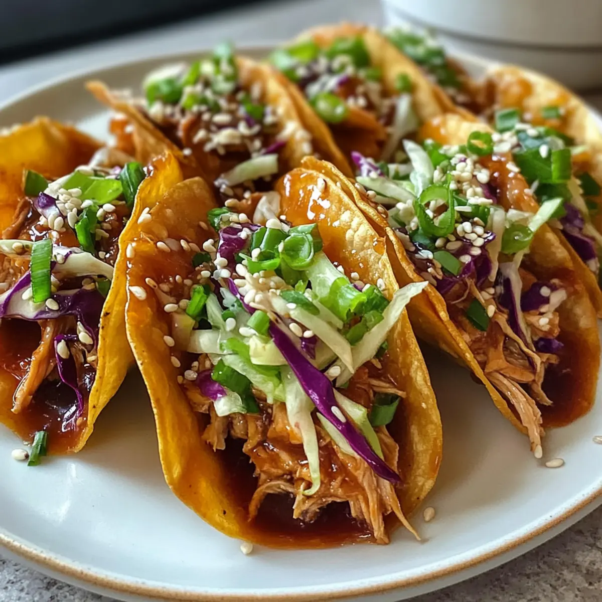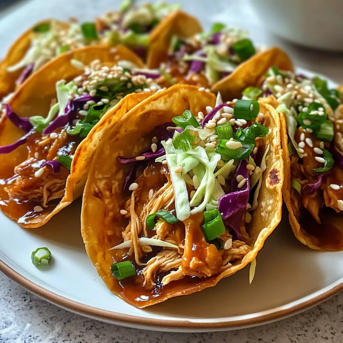 • Warm Chicken: Ensure the chicken filling is warm before assembling to create a delightful contrast with the chilled slaw in your Honey Garlic Chicken Wonton Tacos.