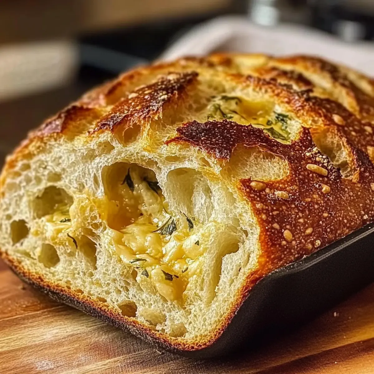Jump to Recipe Print RecipeThe moment those warm, herbal aromas waft through your kitchen, you know you’ve tapped into something extraordinary. This Italian Herb and Cheese Sourdough Bread isn’t just a loaf; it’s a journey into the heart of Italian culinary tradition, perfect for those who crave comforting, homemade goodness. With its gooey cheese melting into a beautifully fermented crust, every bite transforms your lunch or dinner into a delightful celebration. Plus, the best part? It’s surprisingly easy to prepare, making it an ideal recipe for both novice bakers and seasoned chefs alike. You’ll find that this herb-infused bread is not only a showstopper for gatherings but also a fantastic way to elevate any simple meal. Are you ready to put your baking skills to the test and fill your home with the irresistible scent of fresh bread? Why is this bread a must-try? Irresistible Aroma: The moment your oven puffs out fragrant wisps of warm herbs, you’ll understand the allure of this loaf. Easy to Master: Even if you’re a baking newbie, the process is straightforward, making it an approachable project for all skill levels. Versatile Delight: This bread shines on any table—serve it with soups, as part of a charcuterie board, or simply toasted with butter. Gourmet Flavor: The combination of cheese and Italian herbs brings delightful richness to every slice, elevating a simple meal into a feast. Crowd-Pleasing Appeal: Impress your guests with this artisanal bread, making it the talk of your next gathering. Try pairing it with our Sausage Egg Cheese for a delightful breakfast option! Italian Herb and Cheese Sourdough Bread Ingredients For the Dough • Sourdough Starter – Essential for fermentation; make sure it’s lively and active for the best results. • Water – Hydrates the flour and activates the starter; aim for room temperature for optimal mixing. • Bread Flour – Provides a chewy texture; while all-purpose flour works, bread flour truly gives structure. • Salt – Enhances flavor and builds gluten strength; essential for balancing the yeast activity. For the Add-ins • Cheese (e.g., mozzarella, cheddar) – Adds creaminess and flavor; feel free to adjust based on how cheesy you want your bread! • Italian Herbs (e.g., oregano, basil) – Infuses the bread with aromatic goodness; fresh herbs give a more vibrant taste. This Italian Herb and Cheese Sourdough Bread will become a beloved staple in your home! Step‑by‑Step Instructions for Italian Herb and Cheese Sourdough Bread Step 1: Mix Starter and Water In a large glass or ceramic bowl, combine your active sourdough starter with room temperature water, mixing well until fully blended. This creates a lively base for your Italian Herb and Cheese Sourdough Bread. Once combined, let it sit for a moment to loosen up before adding the flour and salt. Step 2: Incorporate Flour and Salt Add in the bread flour and salt, stirring until the mixture forms a shaggy dough. Use a wooden spoon or your hands to combine everything thoroughly. Once the ingredients are well blended, cover the bowl with a clean kitchen towel and allow it to rest for 1 hour. This autolyse step helps develop gluten for a better texture. Step 3: Stretch and Fold After the resting period, moisten your hands and perform 20 to 25 stretch and folds, creating a round ball of dough. Gently gather the edges toward the center while tucking and folding. Once folded, cover the dough again with the towel and let it rest for another 30 minutes to allow the gluten to relax. Step 4: Continue Stretching and Adding Ingredients Over the next 1 to 2 hours, perform several sets of stretch and folds every 15 to 30 minutes, gradually incorporating the cheese and herbs during the second or third set. The dough will become increasingly elastic and flavorful, infusing the Italian herbs and melted cheese throughout. Step 5: Bulk Fermentation Once you complete your stretch and fold sessions, let the dough bulk ferment at room temperature. Keep an eye on it for 4 to 6 hours, or until the dough has doubled in size and shows air bubbles forming, indicating it’s ready for shaping. Step 6: Shape the Dough Gently turn the dough onto a lightly floured surface and shape it into a round loaf. Carefully tuck the edges underneath to create surface tension. Place the shaped dough seam side up in a floured banneton to proof. Cover it with a towel and refrigerate for cold fermentation for 5 to 36 hours, if desired, enhancing the flavor. Step 7: Preheat the Oven About 30 minutes before you intend to bake, preheat your oven to 230°C (450°F) with a Dutch oven inside. This ensures that your Italian Herb and Cheese Sourdough Bread will develop a crispy crust in a hot, steamy environment. Step 8: Score and Bake Gently remove the dough from the banneton and place it onto a piece of parchment paper. Using a sharp knife or a bread lame, score the top of the dough to allow it to expand while baking. Carefully transfer it to the hot Dutch oven, covering it with the lid, and bake for 30 minutes. Step 9: Finish Baking After 30 minutes, lower the oven temperature to 210°C (410°F) and remove the lid to allow the crust to crisp up. Continue baking for an additional 10 to 15 minutes, or until the bread turns a deep golden brown and sounds hollow when tapped on the bottom. Step 10: Cool and Slice Once baked, remove the Italian Herb and Cheese Sourdough Bread from the Dutch oven and transfer it to a wire rack. Allow it to cool completely before slicing to maintain its tender crumb and crispy crust, ensuring the best flavor and texture possible. Expert Tips for Italian Herb and Cheese Sourdough Bread Active Starter: Make sure your sourdough starter is bubbly and active; this ensures a good rise and flavor for your bread. Poke Test: Use the “poke test” to check for readiness; the dough should spring back slowly, indicating it’s ready to bake. Cold Fermentation: Consider cold fermentation to en
