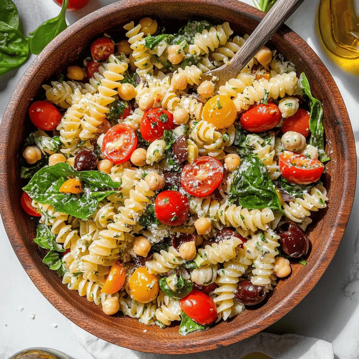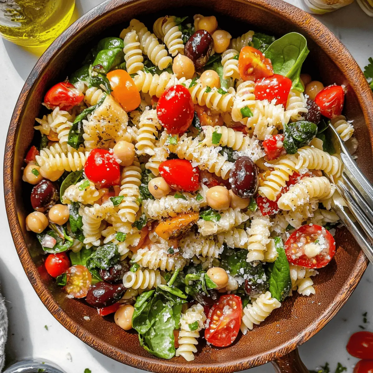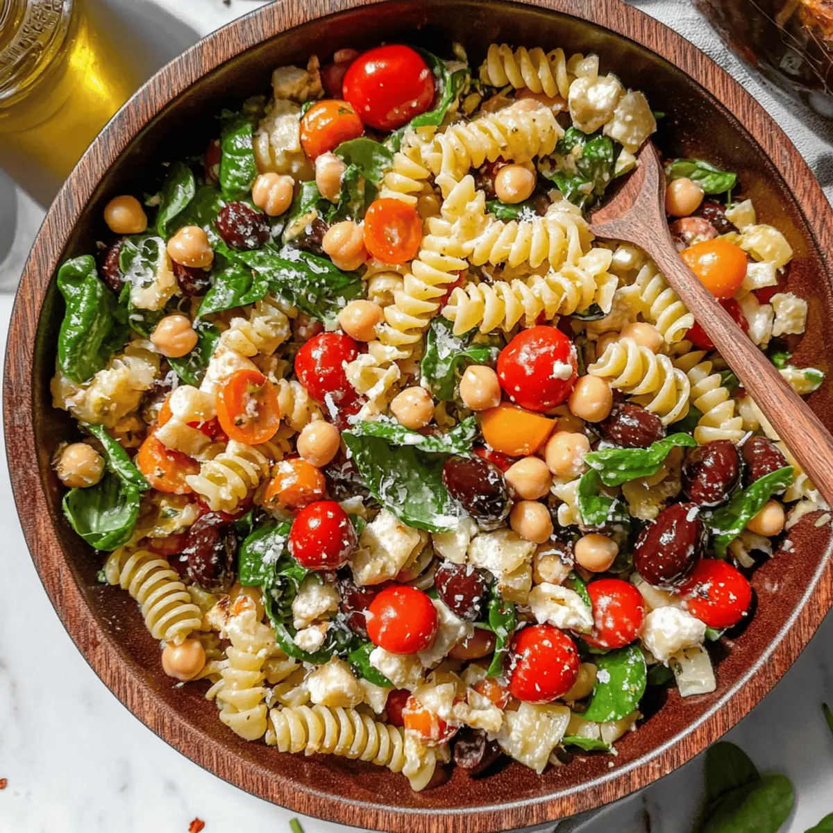 Jump to Recipe Print RecipeAs I prepared for summer gatherings, I realized I wanted something light, refreshing, and easy to share. That’s when I whipped up this Healthy Italian Pasta Salad with Chickpeas and Zesty Dressing. Bursting with colorful veggies and hearty chickpeas, this dish not only celebrates the flavors of the season but also provides a healthy twist that’s perfect for potlucks or leisurely picnics. What I love most about this recipe is its make-ahead convenience—you can whip it up in under 30 minutes and let it chill in the fridge, ready to be served when guests arrive. Plus, it’s a true crowd-pleaser, satisfying everyone from the vegetarians to the meat lovers at your table. Curious how to transform everyday ingredients into a show-stopping salad that’s as nutritious as it is delicious? Let’s dive in! Why is this pasta salad a must-try? Healthy Twist: This Italian Pasta Salad takes classic comfort to a new level by incorporating chickpeas, making it a nutrient-packed option. Vibrant Colors: The medley of cherry tomatoes, mini sweet peppers, and fresh spinach makes this dish as visually appealing as it is delicious. Make-Ahead Magic: Whip it up in under 30 minutes and chill—perfect for busy schedules and last-minute gatherings. Crowd-Pleaser: Whether you’re entertaining vegetarians or meat lovers, this salad satisfies every palate at the table. Versatile Base: Feel free to customize with your favorite ingredients—swap the fusilli for a gluten-free option or add diced cucumbers for a crunch boost! For a twist, check out my Cucumber Pasta Salad or serve alongside grilled meats! Italian Pasta Salad Ingredients • Create a vibrant dish with these thoughtful ingredient choices! For the Salad Fusilli Pasta – Provides an excellent texture; substitute with whole grain or gluten-free pasta if desired. Chickpeas – Adds protein and fiber; you can swap with canned white beans for a different flavor. Cherry Tomatoes – Offers sweetness and acidity; feel free to use diced tomatoes of any variety. Mini Sweet Peppers – Adds a delightful crunch; regular bell peppers work as an acceptable substitute. Pepperoncini Peppers – Contributes tanginess and a hint of heat; omit or use sliced jalapeños for more spice. Kalamata Olives – Brings depth and brininess; green olives can also be used as an alternative. Parmesan Cheese – Infuses umami flavor; opt for nutritional yeast for a dairy-free alternative. Provolone or Mozzarella Cheese – Provides creaminess; can be omitted for a vegan option or replaced with dairy-free cheese. Baby Spinach – Enhances freshness and nutrition; replace with arugula or mixed greens for variety. For the Dressing Extra-Virgin Olive Oil – The base for the dressing; choose a high-quality oil for the best flavor. Red Wine Vinegar – Offers acidity; white wine vinegar or apple cider vinegar can be used as substitutes. Pepperoncini Brine – Boosts flavor and acidity; fresh lemon juice works too for a zesty kick. Shallots – Provides a mild onion flavor; you may swap with red onion or omit if preferred. Garlic – Adds aroma and depth; can be substituted with garlic powder for convenience. Dried Oregano & Dried Parsley – Imparts herbal notes; consider fresh herbs for a brighter flavor. Kosher Salt and Black Pepper – Essential for seasoning; adjust according to taste based on other salt sources. With these Italian Pasta Salad ingredients, you’re ready to whip up a dish that’s not only nutritious but also beautifully vibrant and perfect for summer gatherings! Step‑by‑Step Instructions for Italian Pasta Salad Step 1: Cook Pasta Bring a large pot of heavily salted water to a boil, then add the fusilli pasta. Cook the pasta according to package instructions until al dente, usually about 8-10 minutes. Once cooked, drain the pasta in a colander and rinse it under cold water to stop the cooking process. Allow it to cool completely before moving to the next step. Step 2: Prepare Dressing In a medium bowl, combine extra-virgin olive oil, red wine vinegar, and pepperoncini brine. Then, finely chop the shallots and garlic, adding them to the mixture along with dried oregano, dried parsley, kosher salt, and black pepper to taste. Whisk everything together until emulsified, and let the dressing sit for about 10 minutes to allow the flavors to meld. Step 3: Combine Ingredients In a large mixing bowl, add the cooled fusilli pasta along with drained chickpeas, halved cherry tomatoes, thinly sliced mini sweet peppers, and baby spinach. Carefully toss in sliced pepperoncini peppers, Kalamata olives, and freshly grated Parmesan and provolone cheese. The vibrant colors of the ingredients will make your Italian Pasta Salad visually enticing. Step 4: Mix Salad Pour the prepared dressing over the pasta salad mixture, ensuring every component is coated in the tangy goodness. Use salad tongs or a large spoon to toss everything together gently but thoroughly, making sure the flavors distribute evenly throughout the salad. This step helps to enhance every bite of the Italian Pasta Salad. Step 5: Chill For the best flavor experience, cover the bowl with plastic wrap or transfer the mixed salad into an airtight container. Refrigerate the pasta salad for at least 1 to 2 hours before serving. This chilling time allows the flavors to meld together beautifully, making it a refreshing dish to enjoy at your summer gatherings. Make Ahead Options These Healthy Italian Pasta Salad preparations are a lifesaver for busy weeks and last-minute gatherings! You can cook the fusilli pasta, make the zesty dressing, and even chop all your vegetables up to 24 hours in advance. Simply ensure that the cooked pasta is cooled and tossed with a small drizzle of olive oil to prevent sticking. Store all components separately in airtight containers in the fridge. When you’re ready to serve, combine everything, pour the dressing over, and toss gently. The flavors will be just as 