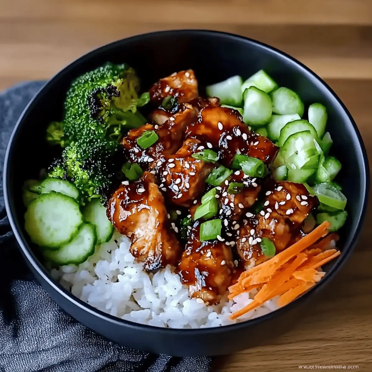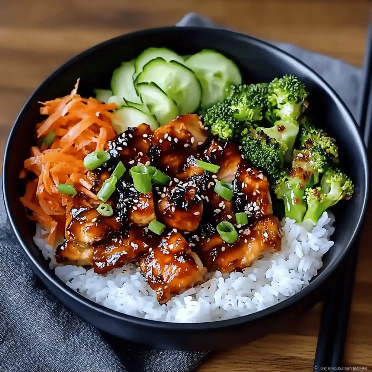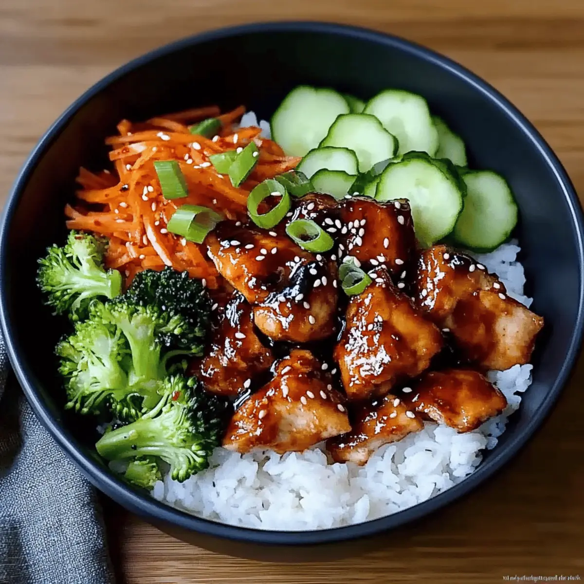 Jump to Recipe Print RecipeEver find yourself yearning for a meal that warms both your heart and stomach? Dive into the world of comfort food with my Spicy Korean BBQ Chicken Rice Bowl. This dish not only delivers bold flavors but is also a superb solution for busy weeknights, taking just under 30 minutes to prepare. Enjoy succulent, marinated chicken thighs served over fluffy rice, creating a deliciously satisfying experience for your taste buds. And the fun part? It’s completely customizable, whether you prefer chicken breasts, succulent tofu, or a colorful medley of vegetables. Perfect for anyone looking to ditch the fast-food routine, this dish is a delightful way to bring greater joy and nourishment to the dinner table. Is your mouth watering yet? Let’s explore the delicious details together! Why is this Korean BBQ Chicken Bowl a must-try? Quick and Easy: This dish can be ready in under 30 minutes, making it ideal for busy weeknights when you crave homemade comfort food without the fuss. Flavor Explosion: The blend of gochujang, honey, and sesame oil creates a deliciously balanced taste, ensuring every bite is packed with savory goodness. Customizable: Whether you prefer chicken thighs, chicken breasts, or even tofu, there’s a variation for everyone – perfect for accommodating different dietary needs! Crowd-Pleaser: With its vibrant colors and textures, this bowl is sure to impress at your next family dinner. Pair it with some kimchi for authenticity and an extra kick! Healthy Option: At around 450 calories per serving, you can enjoy a hearty meal that doesn’t weigh you down. Looking for more comforting ideas? Check out my Butter Chicken Comfort or Chicken Gyro Bowls for equally satisfying fare! Korean BBQ Chicken Rice Bowl Ingredients For the Rice Base: • Cooked White Rice – This will be the foundation of your bowl; you can swap it for quinoa if you need a gluten-free option. For the Chicken: • Boneless Skinless Chicken Thighs – Juicy and flavorful; feel free to replace with chicken breasts or tofu for a vegetarian alternative. For the Marinade: • Soy Sauce – Provides that savory umami kick; use tamari or coconut aminos for a gluten-free substitute. • Gochujang (Korean chili paste) – Delivers depth with a gentle heat; feel free to adjust the amount to match your spice preference. • Honey – A touch of sweetness that balances the other flavors; maple syrup can easily substitute for a vegan option. • Sesame Oil – Adds a nice nutty aroma; any neutral oil can work if you’re out of sesame oil. • Garlic (minced) – Brings aromatic flavor to the marinade. • Ginger (grated) – Adds a zesty freshness and a hint of spice. For Cooking: • Vegetable Oil – Necessary for frying the chicken to perfection; substitute with any cooking oil you have on hand. For Garnish: • Green Onions (chopped) – Adds a crunchy and fresh element to finish the dish. • Sesame Seeds – For that nutty texture; can replace with chopped nuts if desired. Optional Add-Ins: • Steamed Broccoli – Provides color and nutrition; swap it for any favorite veggies like bell peppers or snap peas. • Shredded Carrots – Adds sweetness and crunch; cucumbers can be used as a refreshing alternative. This tasty Korean BBQ Chicken Rice Bowl is not only a feast for the senses but offers easy customization based on your dietary preferences! Step‑by‑Step Instructions for Korean BBQ Chicken Rice Bowl Step 1: Prepare Marinade In a medium bowl, whisk together ¼ cup soy sauce, 2 tablespoons gochujang, 2 tablespoons honey, 1 tablespoon sesame oil, 2 cloves minced garlic, and 1 tablespoon grated ginger until fully combined. This savory-sweet marinade should have a smooth consistency and vibrant color, setting the flavor foundation for your Korean BBQ Chicken Rice Bowl. Step 2: Marinate Chicken Add 1 pound of boneless skinless chicken thighs to the marinade, ensuring each piece is generously coated. Cover the bowl with plastic wrap and refrigerate for at least 30 minutes, allowing the flavors to meld beautifully. For the best taste, aim for a 2-hour marination while you prep your rice and veggies. Step 3: Cook Chicken Heat 2 tablespoons of vegetable oil in a large skillet over medium-high heat until shimmering. Carefully remove the chicken thighs from the marinade—reserve the marinade for later—and place them in the skillet. Cook for 6-7 minutes on each side until golden brown and cooked through, reaching an internal temperature of 165°F; the chicken should be slightly charred for that delicious BBQ flavor. Step 4: Thicken Sauce Once the chicken is cooked, pour the reserved marinade directly into the skillet. Bring it to a gentle simmer, stirring occasionally for about 2-3 minutes. As the sauce bubbles, it will thicken slightly, enhancing the flavor profile of your Korean BBQ Chicken Rice Bowl while creating a luscious glaze for the chicken. Step 5: Serve Allow the chicken to rest for a couple of minutes before slicing it into bite-sized pieces. Prepare your bowl by spooning hot cooked rice as a base, then gracefully arranging the chicken on top. Garnish with steamed broccoli, shredded carrots, chopped green onions, and a sprinkle of sesame seeds for a colorful presentation that encourages everyone to dig in. What to Serve with Spicy Korean BBQ Chicken Rice Bowl Ready to build an unforgettable meal alongside your Spicy Korean BBQ Chicken Rice Bowl? Each addition brings new textures and flavors to enhance your dining experience. Kimchi: A traditional Korean side that adds a zesty kick, making it the perfect accompaniment to the sweet and spicy notes of your rice bowl. Cucumber Salad: Refreshing and crunchy, a light cucumber salad dressed with sesame oil will brighten up your plate while adding a cooling contrast to the spices. Steamed Bok Choy: Its delicate sweetness and tender texture beautifully balance the hearty flavors of the chicken. This green gem is also a fantastic source of 