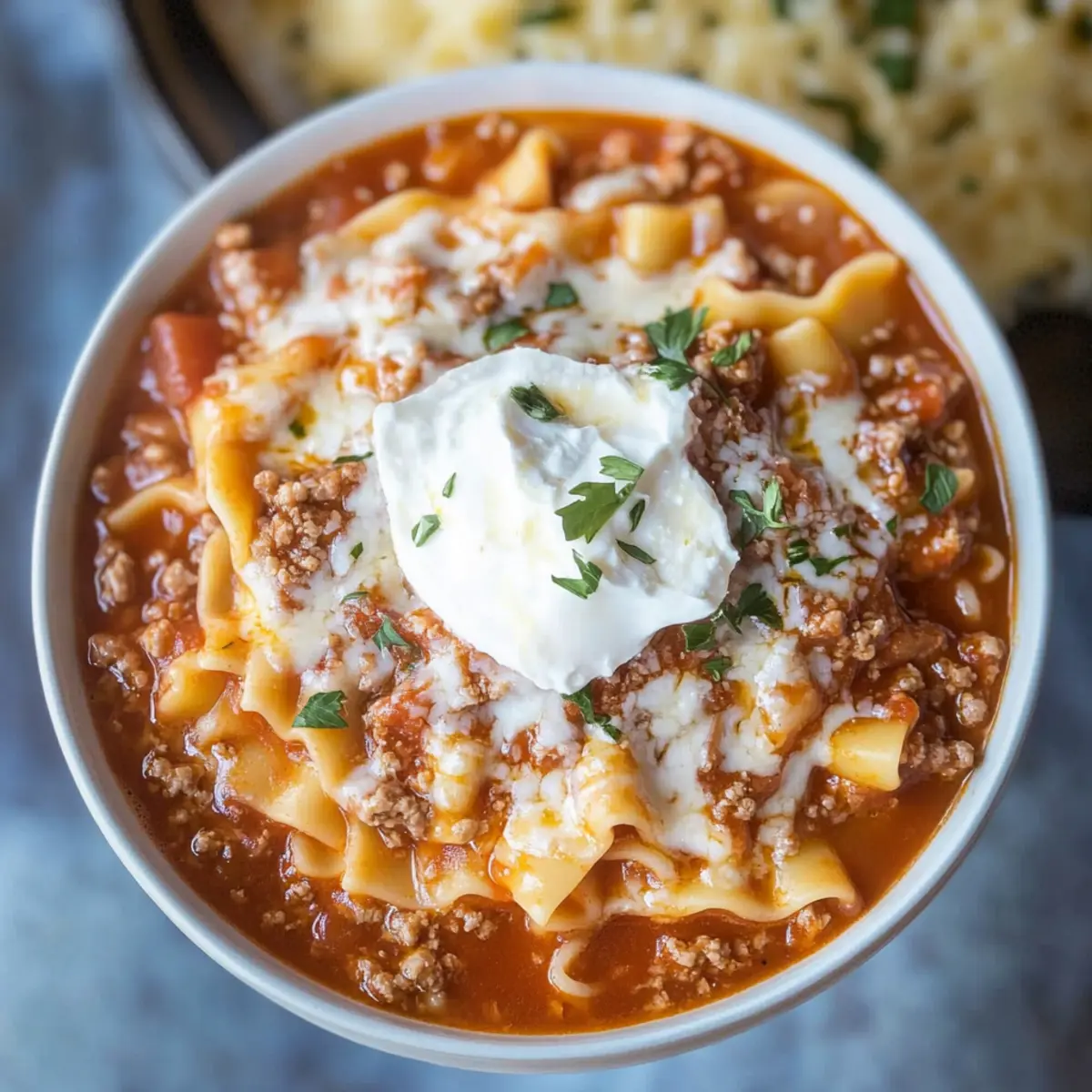 This comforting Lasagna Soup melds flavors of traditional lasagna into a quick, hearty dish perfect for busy weeknights.