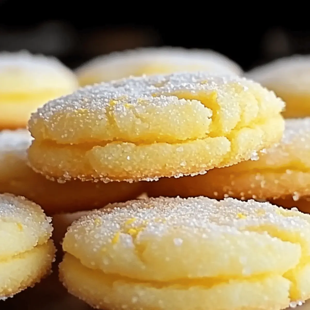 Jump to Recipe Print RecipeAs I stood in my kitchen, the air filled with the vibrant scent of fresh lemon zest, I couldn’t help but smile at the thought of my upcoming baking adventure. Today, I’m excited to share my beloved recipe for Soft and Chewy Lemon Sugar Cookies. These delightful treats perfectly meld the sweet and tart essence of lemon, making them not just a cookie, but a burst of sunshine. One of the best things about them is how quickly they come together, allowing you to whip up a batch in no time. Plus, they’re a guaranteed crowd-pleaser, whether you’re hosting a get-together or simply satisfying your sweet tooth. So, are you ready to bring a little zest into your baking? Let’s dive into this delicious recipe together! Why are Lemon Sugar Cookies irresistible? Bright, zesty flavor: These cookies capture the delightful combination of sweet and tart, making every bite a refreshing experience. Quick and easy: With just a few simple ingredients, you can whip these up in no time—perfect for busy bakers! Soft and chewy texture: Each cookie has a satisfying chewiness that pairs wonderfully with the light dusting of powdered sugar. Versatile treat: Enjoy them as a delightful dessert, or serve alongside your afternoon tea or a refreshing glass of lemonade. For more lemony delights, check out my Lemon Cake Deliciously or Lemon Cobbler Tangy. Party favorite: Their appealing taste makes them ideal for any gathering—guaranteed to impress guests of all ages! Lemon Sugar Cookies Ingredients For the Batter Unsalted Butter – Provides richness and moisture; use salted butter if unsalted is unavailable, but reduce added salt. Granulated Sugar – Adds sweetness and structure to the cookies; brown sugar can be substituted for a deeper flavor. Large Eggs – Acts as a binding agent; ensure they are at room temperature for even mixing. Vanilla Extract – Enhances the overall flavor; use pure vanilla extract for the best taste. Lemon Extract – Infuses cookies with a concentrated lemon flavor; fresh lemon zest can be used if lemon extract is unavailable. All-Purpose Flour – Forms the structure of the cookies; substitute with a 1:1 gluten-free blend for gluten-free options. Baking Powder – Leavening agent to create a light texture; ensure it’s fresh for optimal rising. Salt – Balances sweetness and enhances flavor; can be omitted if using salted butter. For the Citrus Flavor Lemon Zest – Adds fresh lemon aroma and taste; use organic lemons to avoid pesticides on the zest. Lemon Juice – Provides the tartness characteristic of lemon cookies; fresh squeezed is preferred for maximum flavor. For Coating Powdered Sugar – Coating for sweetness and visual appeal; can be substituted with granulated sugar for a less sweet coating. These Lemon Sugar Cookies are a refreshing treat that you’ll want to make over and over again! Step‑by‑Step Instructions for Lemon Sugar Cookies Step 1: Preheat the Oven Begin by preheating your oven to 350°F (175°C). This temperature is perfect for achieving soft and chewy Lemon Sugar Cookies with a lightly golden edge. While the oven heats up, gather your baking sheets and line them with parchment paper to ensure the cookies bake evenly and don’t stick. Step 2: Cream the Butter and Sugar In a large mixing bowl, add the softened unsalted butter and granulated sugar. Using an electric mixer, beat them together on medium speed until the mixture becomes light and fluffy, which should take about 2-3 minutes. This step is crucial as it incorporates air into the cookie batter, leading to a delightful texture. Step 3: Incorporate Eggs and Extracts Next, add in the large eggs, vanilla extract, and lemon extract to the creamed butter and sugar. Mix everything together on low speed until just combined. The mixture will appear smooth, and you should be able to smell the vibrant lemon notes emerging. Step 4: Combine the Dry Ingredients In another bowl, whisk together the all-purpose flour, baking powder, and salt. Gradually add this dry mixture to the wet ingredients, mixing on low speed. Be careful not to overmix; stopping as soon as the flour disappears will keep your Lemon Sugar Cookies tender and soft. Step 5: Add Lemon Zest and Juice Now it’s time to fold in the zesty lemon zest and fresh lemon juice. Using a spatula, gently incorporate them into the dough until evenly distributed. You should see flecks of bright lemon zest throughout the mixture, adding to the refreshing flavor profile of your cookies. Step 6: Scoop and Bake the Cookies Using a tablespoon or cookie scoop, drop rounded mounds of dough onto the prepared baking sheet, spacing them about two inches apart. Bake in the preheated oven for 10-12 minutes, or until the edges begin to turn lightly golden. The centers should still look soft—this ensures a chewy texture once they cool. Step 7: Cool and Dust with Sugar Once baked, remove the Lemon Sugar Cookies from the oven and let them cool on the baking sheet for about 5 minutes. After that, transfer them to a wire rack to cool completely. Before serving, roll the warm cookies in powdered sugar for a sweet finish and irresistible appearance. Storage Tips for Lemon Sugar Cookies Room Temperature: Store cookies in an airtight container at room temperature for up to 1 week to maintain their softness and flavor. Fridge: If you prefer a slightly firmer texture, refrigerate the cookies in a sealed container for up to 2 weeks. Freezer: For longer storage, freeze Lemon Sugar Cookies in an airtight container or freezer bag for up to 3 months. Layer parchment paper between cookies to prevent sticking. Reheating: To enjoy freshly baked warmth, reheat frozen cookies in the oven at 350°F (175°C) for about 5-7 minutes. Expert Tips for Lemon Sugar Cookies Butter Softness: Make sure your unsalted butter is softened to room temperature, not melted, to achieve that perfect chewy cookie texture. Avoid Overmixing: Mix just until the dry ingredients are