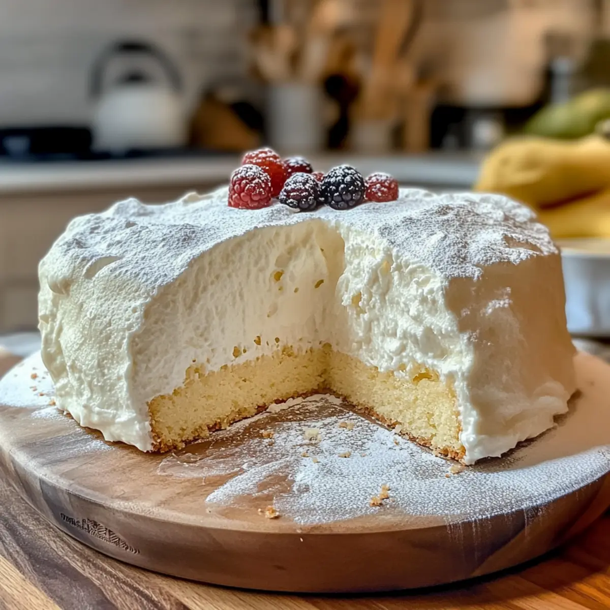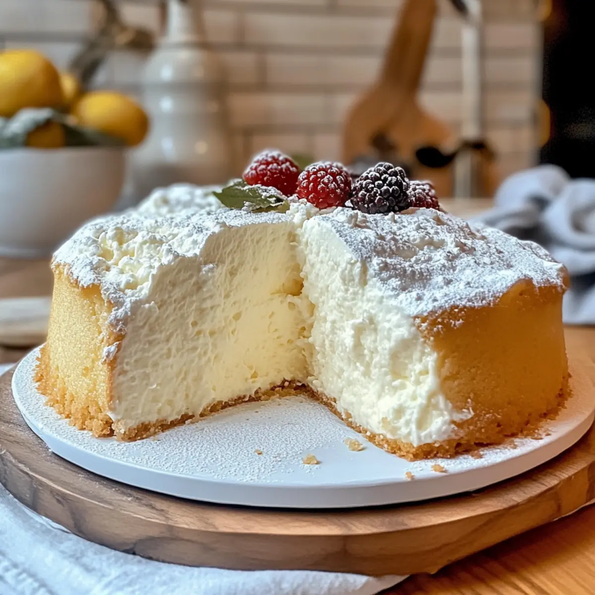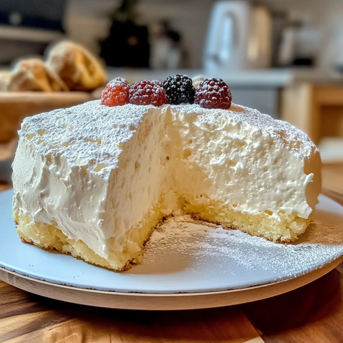 Jump to Recipe Print RecipeAs I stood in my kitchen, the sweet aroma of baking cake began to dance around me like a friendly embrace. That’s when I whipped up my Light & Fluffy Yogurt Cloud Cake, a delightful creation that strikes the perfect balance between sweet and tangy. This airy masterpiece not only melts in your mouth but is incredibly easy to prepare, making it the go-to dessert for both simple family dinners and festive gatherings. The magic ingredient, yogurt, guarantees a moist texture, while a hint of optional lemon zest offers a refreshing twist that delights the senses. Whether you’re looking to impress guests or simply treat yourself, this cake is sure to bring smiles all around. Who’s ready to indulge in a slice of happiness? Why Is Yogurt the Secret Ingredient? Moisture Booster: The addition of yogurt creates a cake that is incredibly moist, ensuring a delightful eating experience. Dreamy Texture: Its light and fluffy nature makes it perfect for any occasion, melting in your mouth with every bite. Simple Steps: Straightforward preparation means you can whip this up even on busy days. Versatile Options: Easily adapt this recipe into a Lemon Yogurt Cake or a gluten-free version for everyone to enjoy. Crowd-Pleaser: Whether served at a family gathering or a special celebration, this cake is bound to impress and satisfy all dessert lovers! Light & Fluffy Yogurt Cloud Cake Ingredients • Discover the magic of this delightful dessert! For the Batter All-purpose flour – Provides structure; substitute with a gluten-free flour blend for a gluten-free option. Baking powder – Acts as a leavening agent to make the cake rise perfectly. Salt – Enhances flavor for a deliciously balanced cake. Eggs – Offer moisture and help bind the ingredients together. Yogurt – Provides moisture and a tangy flavor that beautifully complements the sweetness; use Greek yogurt for a denser version. Granulated sugar – Sweetens the cake to perfection. Vegetable oil – Keeps the cake moist and tender. Vanilla extract – Adds a delightful depth of flavor. Fresh lemon zest (optional) – Brightens the flavor and aroma for an extra refreshing touch. Enjoy crafting this Light & Fluffy Yogurt Cloud Cake and delight in its airy, delicious texture! Step‑by‑Step Instructions for Light & Fluffy Yogurt Cloud Cake Step 1: Preheat the Oven Preheat your oven to 350°F (175°C) and prepare your 8-inch round cake pan by greasing it thoroughly. This allows the Light & Fluffy Yogurt Cloud Cake to release easily once baked. Keep the pan set aside while you move on to preparing the batter. Step 2: Mix Dry Ingredients In a medium mixing bowl, whisk together the all-purpose flour, baking powder, and salt until well combined and airy. This mixing helps to evenly distribute the leavening agent and enhances the cake’s fluffy texture. Set the bowl aside while you prepare the wet ingredients. Step 3: Combine Wet Ingredients In a large mixing bowl, whisk together the eggs, yogurt, granulated sugar, vegetable oil, and vanilla extract until the mixture is smooth and creamy. This step is crucial as it creates the moist base for the Light & Fluffy Yogurt Cloud Cake, blending flavors that will harmonize beautifully. Step 4: Add Lemon Zest (Optional) If you’re in the mood for a citrus twist, grate some fresh lemon zest into the wet mixture and stir gently to incorporate. This optional step brightens the cake’s flavor, adding a lovely aromatic nuance that elevates the overall experience. Step 5: Combine Dry and Wet Mixtures Gradually fold the dry ingredients into the wet mixture using a spatula or wooden spoon until just combined. Be careful not to overmix, as this can deflate the batter and affect the cake’s lightness. The result should be a smooth, slightly lumpy batter—perfect for the Light & Fluffy Yogurt Cloud Cake. Step 6: Pour into Pan Carefully pour the batter into the prepared cake pan, ensuring it is evenly distributed. Use a spatula to gently smooth the top, creating a flat surface. This will help the cake rise evenly as it bakes, resulting in that characteristic airy texture. Step 7: Bake the Cake Place the cake pan in the preheated oven and bake for 30-35 minutes. Keep an eye on it, and when the top turns a lovely golden brown and a toothpick inserted into the center comes out clean, your Light & Fluffy Yogurt Cloud Cake is ready to come out! Step 8: Cool the Cake Once baked, remove the cake from the oven and let it cool in the pan for about 10 minutes. This short cooling period lets it set before transferring. Then, flip the pan over onto a wire rack to cool completely, allowing air to circulate around your fluffy masterpiece. Step 9: Serve and Enjoy When the cake has cooled, you can dust the top with powdered sugar or top it with fresh berries for extra sweetness. Slice it up and savor each light, airy bite of your delicious Light & Fluffy Yogurt Cloud Cake, whether for dessert or a cheerful afternoon treat! Expert Tips for Light & Fluffy Yogurt Cloud Cake Don’t Overmix: Gently combine the dry and wet ingredients to maintain the cake’s airy texture. Overmixing could result in a dense, chewy cake instead of the light and fluffy yogurt cloud cake you desire. Sift Your Flour: This simple step enhances the cake’s fluffiness by aerating the flour. It prevents lumps and helps achieve that light, delicate crumb. Check Doneness Early: Keep an eye on the baking time and start checking for doneness a few minutes before the suggested time. A toothpick should come out clean, signaling your cake is ready without overbaking. Cool Gradually: Let the cake cool in the pan briefly before transferring it to a wire rack. This helps it maintain that beautiful light texture as it sets. Baking Pan Matters: Ensure your 8-inch cake pan is well-greased to prevent sticking. This ensures a clean release, helping to maintain the integrity of your light and fluffy yogurt cloud cake. Make Ahead Options This Light & 