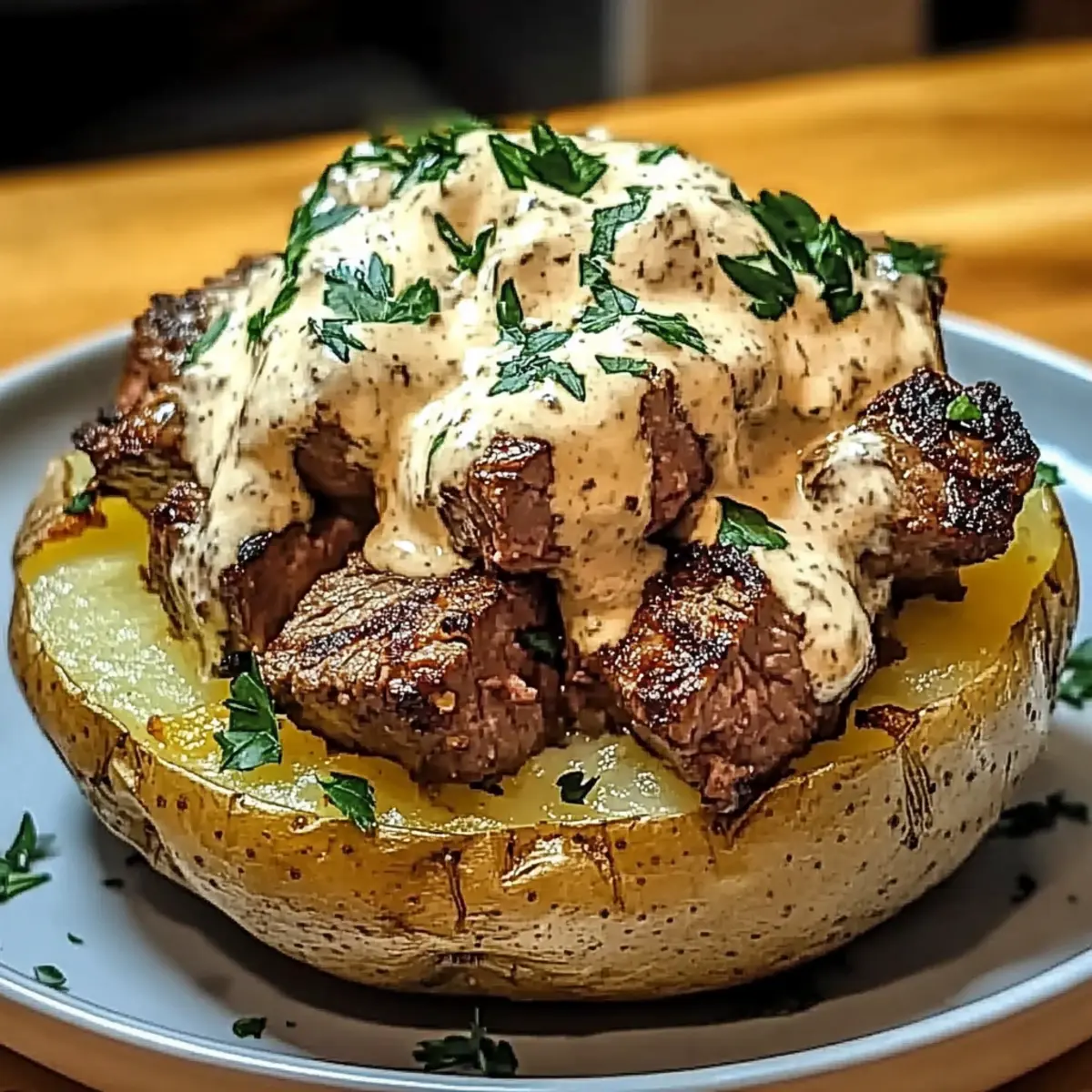 Jump to Recipe Print RecipeThere’s nothing quite like the comforting embrace of a hearty meal after a long day. Today, I’m excited to share my Loaded Steak Potatoes with Savory Cream Sauce—a dish that combines tender steak, creamy sauce, and fluffy baked potatoes into one delightful bite. Not only is this recipe a satisfying crowd-pleaser perfect for family dinners or casual entertaining, but it also offers versatility for various dietary preferences. You can easily swap the steak for ground beef, turkey, or even a medley of roasted vegetables, catering to everyone at the table. Imagine indulging in a warm, delicious meal that feels like a hug on a plate! Curious to discover how to bring this cozy comfort food to life in your kitchen? Let’s dive in! Why Is This Recipe So Irresistible? Comforting Delight: There’s something about Loaded Steak Potatoes that warms the soul. The combination of tender steak, rich cream sauce, and fluffy baked potatoes makes this dish a true home-cooked treasure. Culinary Versatility: With simple swaps like using ground beef or sautéed mushrooms, this recipe adapts to various dietary preferences. Time-Saving Wonder: You’ll have an impressive meal ready in under an hour, perfect for busy weeknights. Crowd Pleaser: Ideal for gatherings, this hearty meal guarantees satisfied smiles around the table. Flavor Explosion: The infusion of Cajun seasoning and creamy richness creates an unforgettable taste that will leave you craving more! Treat yourself to a gourmet experience at home, reminiscent of my favorite Grilled Steak Tacos as you dig into this hearty dish. Loaded Steak Potatoes Ingredients Dive into the deliciousness of Loaded Steak Potatoes with Savory Cream Sauce! For the Potatoes Russet Potatoes – The perfect starchy base, fluffy when baked; sweet potatoes work as a healthier alternative. Avocado Oil – Great for cooking the potatoes; it adds healthy fats; you can substitute with olive oil as needed. For the Steak Steak (e.g., sirloin) – Tender and hearty; it adds rich flavor; consider ground beef or grilled chicken for tasty variations. Cajun Seasoning – Adds a bold kick; feel free to make your own mix for a unique touch! Butter – Enhances the flavor of the steak and sauce; reduce for a lighter option. For the Savory Cream Sauce Minced Garlic – A must for that aromatic depth; fresh garlic is preferred, but powdered works in a pinch. Heavy Cream – This is what makes the sauce luxuriously creamy; Greek yogurt can lighten things up! Parmesan Cheese – Adds delicious creaminess and flavor; grated cheddar or nutritional yeast are great dairy-free alternatives. Red Pepper Flakes – An optional touch of heat that lets you control the spice level. Lemon Juice – Brightens up the creamy sauce; vinegar can also be used for a pinch of acidity. For Garnishing Fresh Parsley – For a pop of color and freshness; cilantro or chives make excellent substitutes! Step‑by‑Step Instructions for Loaded Steak Potatoes with Savory Cream Sauce Step 1: Prep Potatoes Preheat your oven to 425°F (220°C). While it heats, wash and dry the russet potatoes thoroughly to ensure a crispy skin. Coat each potato with avocado oil and sprinkle generously with sea salt. Place the potatoes directly on the oven rack and bake for 50-60 minutes until tender, checking for doneness by piercing with a fork. Step 2: Cook Steak While the potatoes bake, trim the steak and cut it into bite-sized cubes. Heat a large skillet over medium-high heat and add a splash of avocado oil. Once hot, add the seasoned steak cubes, sprinkling with Cajun seasoning. Sear for about 2 minutes until browned, then flip and cook for an additional 3 minutes, adding butter and minced garlic to enhance flavor. Step 3: Make Sauce Using the same skillet after removing the steak, lower the heat slightly and sauté more minced garlic until fragrant. Pour in heavy cream and bring to a gentle simmer, stirring occasionally. Allow the sauce to thicken for about 3-5 minutes, then stir in freshly grated Parmesan cheese and red pepper flakes, adjusting seasoning with salt and pepper to taste. Step 4: Assemble Once the potatoes are out of the oven, cut a slit down the center of each and fluff the insides with a fork. Add a pat of butter for richness, then generously top with the seared steak. Drizzle the savory cream sauce over the steak and potato filling, creating layers of deliciousness. Step 5: Serve To finish your Loaded Steak Potatoes, garnish with freshly chopped parsley for a burst of color and freshness. Serve immediately while hot and indulge in the warm, comforting flavors, perfect for a satisfying meal any night of the week. Loaded Steak Potatoes Variations Feel free to make this dish your own with easy swaps and flavorful twists that will delight your taste buds! Ground Meat: Replace steak with ground beef, ground turkey, or pork for a different texture and flavor. This twist makes for a heartier meal! Vegetarian Delight: Use sautéed mushrooms, tempeh, or jackfruit as a filling replacement for a delightful plant-based option brimming with umami. Creamy Alternatives: Switch heavy cream with Greek yogurt or cauliflower puree to lighten up the sauce without sacrificing creaminess. Your waistline will thank you! Cheesy Variations: Try using different cheeses in the sauce, like gouda or feta, for a unique flavor profile that enhances the richness. Spice It Up: Enhance heat by adding jalapeños or a dash of hot sauce to the cream sauce for those who love a good kick. Topping Extravaganza: Get creative with toppings like crispy bacon bits or fried onions, which add crunch and flavor contrast to your loaded potatoes. Herb Infusion: Replace parsley with fresh herbs like thyme or basil for a completely new flavor experience that brightens every bite. Zesty Kick: Add a splash of lime juice instead of lemon for a zesty twist that brightens the whole dish, reminiscent of my favorite Grilled Steak Tacos. These 