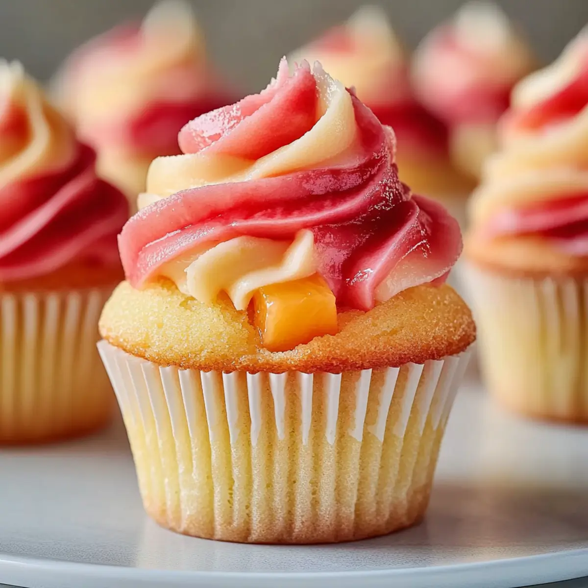 Jump to Recipe Print RecipeGazing out the window as the sun sets, I couldn’t help but crave something bright and cheerful to match the colors of the sky. Enter the Mango Strawberry Sunset Cupcakes, a delightful creation that embodies the essence of summer. Each bite offers a refreshing twist of tropical mango mingled with the sweetness of ripe strawberries, making them perfect for quick desserts after long days or impressive treats for any gathering. These easy-to-make cupcakes not only captivate your taste buds but also showcase a stunning swirl frosting that brings a cheerful ambiance to your table. Whether it’s a special occasion or just a simple indulgence, these cupcakes are sure to elevate your baking game. Ready to dive into this tropical adventure? Let’s get started! Why are Mango Strawberry Sunset Cupcakes irresistible? Tropical Bliss: Each cupcake bursts with refreshing flavors that transport you straight to a sunny beach. Simplicity: Made with easily accessible ingredients, this recipe is perfect for both beginners and seasoned bakers alike who enjoy homemade delights. Stunning Presentation: The vibrant swirl frosting creates a visual feast, perfect for impressing friends at gatherings. Versatile Treat: Perfect for every occasion—from picnics to birthday parties. Consider serving them alongside a light Strawberry Spinach Salad for a complete experience. Quick to Make: With minimal prep time, these cupcakes ensure sweet satisfaction without the fuss, allowing you to spend more time enjoying! Get ready to elevate your dessert game and indulge in this charming tropical treat! Mango Strawberry Sunset Cupcake Ingredients • Sweeten your baking adventure with these tropical flavors! For the Cupcakes All-purpose flour – Essential for structure; substitute with gluten-free flour for a gluten-free option. Baking powder – A vital leavening agent that ensures your cupcakes are light and fluffy. Salt – Balances sweetness; don’t skip this small but important ingredient. Unsalted butter – Adds richness and moisture; can be swapped with margarine for a dairy-free alternative. Granulated sugar – Provides the necessary sweetness; brown sugar can offer a deeper flavor profile. Eggs – Acts as a binding agent and adds moisture; use flax eggs for a vegan version. Vanilla extract – Enhances flavor; opt for high-quality extract for the best results. Milk – Contributes to moisture and creates the perfect consistency; almond or coconut milk can be used to keep it dairy-free. Mango purée – Infuses tropical flavors; frozen mango works beautifully when thawed and drained. For the Filling Strawberry jam – Adds a delightful flavor surprise in the center; feel free to experiment with other berry jams! For the Frosting Powdered sugar – Ensures sweetness and ideal texture for frosting; can be adjusted for a less sweet option. Heavy cream – Creates a light and fluffy frosting; substitute with coconut cream for a dairy-free option. Are you ready to mix these ingredients into a tropical masterpiece and indulge in the vibrant flavors of the season with your Mango Strawberry Sunset Cupcakes? Let’s get baking! Step‑by‑Step Instructions for Mango Strawberry Sunset Cupcakes Step 1: Preheat the Oven Begin by preheating your oven to 350°F (175°C). While the oven heats up, line a muffin tin with colorful cupcake liners to prepare for your delightful Mango Strawberry Sunset Cupcakes. This vibrant touch will elevate your presentation and make the final product even more inviting. Step 2: Mix the Dry Ingredients In a medium bowl, whisk together 1½ cups of all-purpose flour, 2 teaspoons of baking powder, and ¼ teaspoon of salt. This essential mixture creates the structure for your cupcakes. Make sure everything is well combined and set it aside while you move on to the next step. Step 3: Cream Butter and Sugar In a large mixing bowl, cream together ½ cup of unsalted butter with 1 cup of granulated sugar using an electric mixer. Beat the mixture on medium speed for 3-5 minutes until it becomes pale and fluffy. This step infuses air into your batter, ensuring that your Mango Strawberry Sunset Cupcakes turn out light and airy. Step 4: Add Eggs and Vanilla Next, add in 2 large eggs, one at a time, along with 1 teaspoon of vanilla extract. Beat well after each addition to incorporate the ingredients fully. Then, pour in ½ cup of milk and ½ cup of mango purée, mixing until everything is well combined and smooth. The tropical flavors begin to shine through! Step 5: Combine Wet and Dry Ingredients Gradually fold the dry mixture into the wet ingredients, mixing gently to avoid overmixing. Stir just until the flour disappears, ensuring a few lumps remain, which will keep your cupcakes from becoming dense. This is where the magic of the Mango Strawberry Sunset Cupcakes truly begins to form! Step 6: Fill the Cupcake Liners Spoon the batter into the prepared cupcake liners, filling each about ¾ full. This allows room for rising while baking. Place the muffin tin in the oven and bake for 18-20 minutes, or until a toothpick inserted into the center comes out clean. The cupcakes should be lightly golden on top. Step 7: Cool the Cupcakes Once baked, remove the muffin tin from the oven and allow the cupcakes to cool in the tin for about 5 minutes. Then, carefully transfer them to a wire rack to cool completely. This step is crucial, especially before filling them with strawberry jam, to avoid melting. Step 8: Fill with Strawberry Jam When the cupcakes are completely cool, use a small knife or a cupcake corer to remove a small core from the center of each cupcake. Fill the hole with a spoonful of strawberry jam, creating a delightful surprise in every bite of your Mango Strawberry Sunset Cupcakes. Step 9: Prepare the Frosting In a clean mixing bowl, beat ½ cup of unsalted butter until creamy. Gradually mix in 2 cups of powdered sugar, adding in 2 tablespoons of heavy cream and 1 teaspoon of 