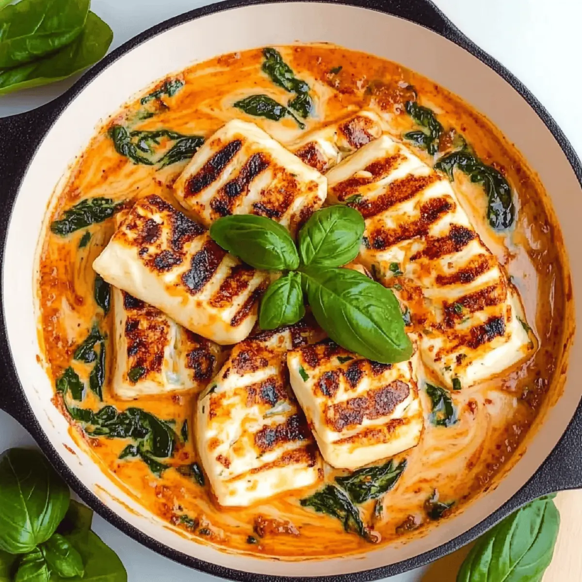 Jump to Recipe Print RecipeAs I stepped into my kitchen, the tantalizing aroma of grilled halloumi filled the air, whisking me away to sun-soaked Mediterranean shores. This Decadent Marry Me Halloumi with Creamy Sundried Tomato Sauce is a delightful vegetarian twist on the beloved “marry me chicken.” Not only does it come together in a flash, making it perfect for busy weeknights, but it also serves up a comforting, creamy sauce that wraps around each cheesy morsel. Your family and friends will be crowding around the table, eager for a taste—a true crowd-pleaser! Curious about how to elevate your dinner game with this mouthwatering dish? Let’s dive in! Why is Marry Me Halloumi a must-try? Quick and Easy: This dish comes together in no time, making it a lifesaver on those hectic weeknights. Vibrant Flavors: The combination of creamy sundried tomato sauce and perfectly grilled halloumi strikes a harmonious balance that’s simply irresistible. Vegetarian Delight: Enjoy a satisfying, meat-free meal without sacrificing flavor, perfect for guests and family alike! Versatile Pairing: Serve it over rice, potatoes, or a fresh salad for a customizable and wholesome meal. Crowd-Pleasing: When served, it’ll have everyone asking for seconds, ensuring you become the star of any dinner table. With its rich flavors and creamy texture, Marry Me Halloumi is sure to win hearts! Marry Me Halloumi Ingredients For the Sauce • Olive oil (or sundried tomato oil) – Using oil from the sundried tomatoes enhances flavor. • Red onion (½, finely diced) – Substitute with shallots for a milder flavor. • Garlic (3 cloves, crushed) – Fresh garlic preferred over powder for authenticity. • Red pepper or chili flakes (¼ tsp) – Adjust to taste based on desired spice level. • Smoked paprika (¼ tsp) – Can be replaced with regular paprika for less smokiness. • Italian herbs/seasoning (2 tsp) – Use fresh herbs for enhanced flavor. • Sundried tomatoes (⅓ cup, chopped) – Use packed in oil for better taste. • Tomato paste (2 tbsp) – Known as tomato puree in the UK. • Vegetable broth (⅔ cup) – Low-sodium version recommended to control saltiness. • Heavy cream (⅔ cup) – Substitute coconut cream for a dairy-free version. • Parmesan style cheese (¾ cup, grated) – Use nutritional yeast for a vegan option. • Basil (small bunch, chopped) – Swap with parsley for a different flavor profile. • Baby spinach (1 handful) – Can be omitted or replaced with kale. For the Halloumi • Halloumi cheese (8 oz) – Provides a salty, creamy texture and is the main protein source, sliced. For Serving • Lemon wedges – Enhances the dish’s flavor profile when squeezed over the top. With these simple ingredients, your homemade Marry Me Halloumi will soon be ready to impress! Step‑by‑Step Instructions for Marry Me Halloumi Step 1: Heat the Oil In a large, deep saucepan, add a splash of olive oil or sundried tomato oil and heat it over low-medium heat. Allow the oil to shimmer, which will signal that it’s ready for the next ingredients. This oil base will enhance the flavors of your creamy sauce in the irresistible Marry Me Halloumi. Step 2: Sauté the Aromatics Once the oil is hot, sauté the finely diced red onion for about 3–4 minutes until it becomes translucent and fragrant. Add in the crushed garlic, red pepper flakes, Italian herbs, smoked paprika, and chopped sundried tomatoes. Continue cooking for another 2–3 minutes until the garlic is fragrant and the herbs are aromatic, creating a flavorful foundation for your sauce. Step 3: Incorporate Tomato Paste Next, stir in the tomato paste and let it cook for about 1 minute, allowing the flavors to meld beautifully. You’ll notice a richer aroma as the tomato paste caramelizes slightly. This step is essential for deepening the flavor of the sauce that encases your Marry Me Halloumi. Step 4: Add the Broth Pour in the vegetable broth, stirring to combine well with the other ingredients. Partially cover the saucepan, reduce the heat to low, and let it simmer gently for 5–7 minutes, allowing the flavors to blend. As it simmers, it thickens, creating a luscious sauce that will perfectly coat the halloumi. Step 5: Fry the Halloumi While the sauce simmers, heat a grill pan over medium-high heat. Add sliced halloumi to the pan and cook for about 3 minutes on each side, until golden brown and striped with grill marks. This step gives the halloumi a delightful texture, making it the star of your Marry Me Halloumi dish. Step 6: Combine Spinach and Basil When the halloumi is nearly done, add the wilted baby spinach and chopped basil to the sauce. Stir and cook for an additional 2 minutes until the spinach is tender and wilted, adding a pop of color and nutrition to your creamy sundried tomato sauce. Step 7: Finish the Sauce Reduce the heat to low and mix in the heavy cream and grated parmesan cheese. Stir gently until the cheese melts and the sauce is perfectly creamy, about 2–3 minutes. This final addition makes the sauce rich and decadent—just what you want for your Marry Me Halloumi. Step 8: Combine and Serve Gently add the cooked halloumi to the sauce, ensuring each piece is well coated. Serve immediately, garnished with lemon wedges that can be squeezed over the top, enhancing the dish’s flavor profile. This Marry Me Halloumi will impress with its creamy texture and vibrant tastes! Marry Me Halloumi Variations & Substitutions Feel free to personalize your Marry Me Halloumi and make it uniquely yours with these delightful twists! Dairy-Free: Substitute heavy cream with coconut cream for a rich yet dairy-free alternative. It brings a hint of tropical flavor, making the dish even more exciting. Vegan Cheese: Use a vegan cheese alternative in place of Parmesan-style cheese to keep this dish plant-based. Nutritional yeast can also add a cheesy flavor without dairy. Greens Upgrade: Toss in kale or Swiss chard instead of spin