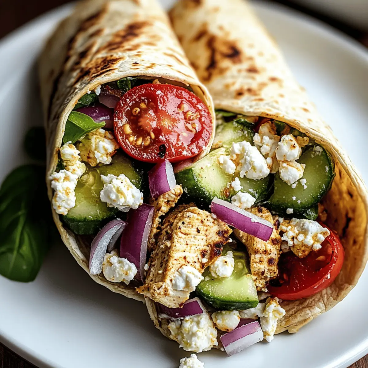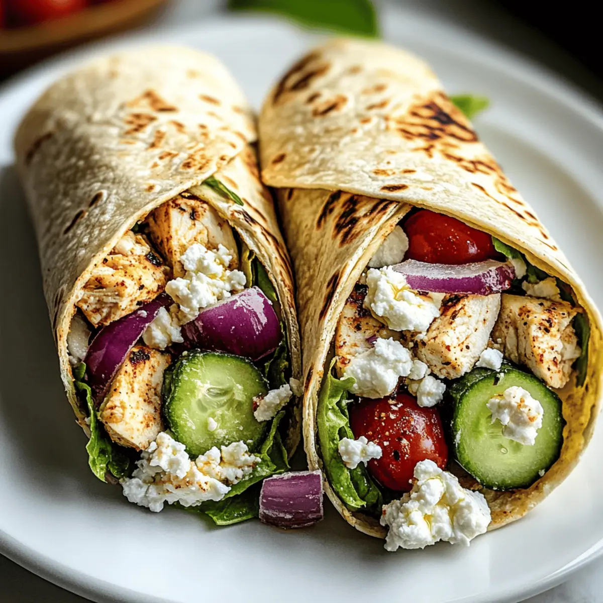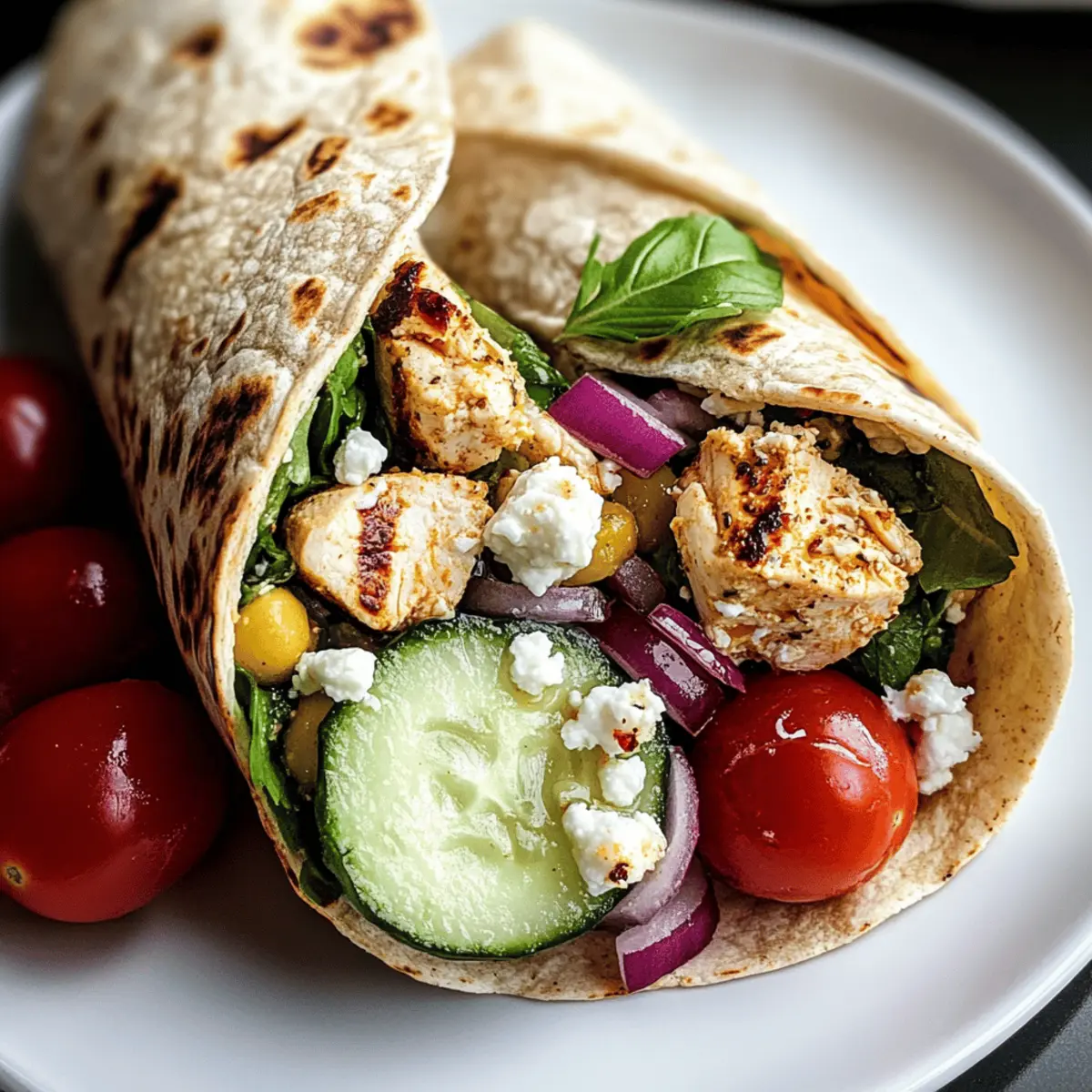 Jump to Recipe Print RecipeThe aroma of sizzling chicken mingling with zesty lemon and garlic fills the air, instantly transporting me to a sun-drenched Mediterranean market. These Mediterranean Chicken Wraps are a delightful solution for those busy days when you crave something fresh yet uncomplicated. Loaded with marinated chicken, creamy hummus, and vibrant veggies, each wrap is not only a feast for the senses but also an incredibly easy way to enjoy a balanced meal. Perfect for a quick lunch or a satisfying dinner, these wraps can even adapt to any dietary preference. Plus, they make for a fantastic make-ahead option, saving you time for what really matters. Are you ready to dive into the delicious world of Mediterranean flavors? Let’s get cooking! Why Will You Enjoy These Wraps? Bursting with Flavor: These Mediterranean Chicken Wraps boast a thrilling combination of lemon, garlic, and fresh veggies that transport your taste buds straight to the sunlit shores of the Mediterranean. Quick and Easy: Need lunch in a hurry? This recipe is crafted for busy days, taking less than 30 minutes from prep to plate! Versatile: Whether you’re a meat lover or prefer vegetarian options, these wraps can easily accommodate any dietary preference—swap the chicken for shrimp or chickpeas in a snap. Healthy Choice: Rich in protein and loaded with fresh veggies, these wraps are a nutritious meal option that doesn’t compromise on taste. Pair with a side salad or some tzatziki for a complete experience. You’ll find more delightful recipes like Butter Chicken Comfort or Parmesan Chicken Transforms to inspire your culinary journey! Mediterranean Chicken Wraps Ingredients • Get ready to discover the essential components for your delicious Mediterranean Chicken Wraps! For the Chicken Marinade Chicken Breasts – Main protein source, marinated to infuse moisture and flavor. Consider grilled shrimp or tofu for a vegetarian option. Olive Oil – Adds richness and helps with grilling; avocado oil works well as a substitute for a different flavor. Lemon Juice – Brightens the dish with acidity; opt for fresh lemon juice for the best taste. Minced Garlic – Provides aromatic depth; garlic powder can be a quick alternative if needed. Dried Oregano – Enhances flavor with its herbal notes; feel free to swap with rosemary or thyme for variation. Salt and Pepper – Essential seasonings to elevate taste, with sea salt adding a delightful texture. For the Wraps Hummus – Serves as a creamy spread and base layer for the wrap; tzatziki can be a zesty alternative. Tortillas – The wrap base; choose whole wheat, spinach, or gluten-free varieties to fit your dietary needs. Cucumber, Cherry Tomatoes, Red Onion – Fresh veggies for crunch and color; customize with any salad vegetables you love. Feta Cheese – Adds a salty creaminess; you can omit this for a dairy-free wrap or substitute with avocado for a different twist. Enjoy making your Mediterranean Chicken Wraps! Step‑by‑Step Instructions for Mediterranean Chicken Wraps Step 1: Prepare Marinade In a mixing bowl, whisk together ¼ cup of olive oil, 2 tablespoons of fresh lemon juice, 3 minced garlic cloves, 1 tablespoon of dried oregano, and a pinch of salt and pepper until the mixture is well combined. This flavorful marinade will infuse your chicken with Mediterranean zest, so make sure it’s homogenous. Step 2: Marinate Chicken Place 1 pound of chicken breasts into a resealable plastic bag and pour the prepared marinade over the chicken. Seal the bag and gently massage the marinade into the meat. Allow the chicken to marinate in the refrigerator for at least 30 minutes, ideally up to 2 hours, letting those flavors meld beautifully. Step 3: Grill Chicken Preheat your grill to medium-high heat, about 400°F (200°C). Once hot, remove the chicken from the marinade and place it on the grill grates. Cook for approximately 6-7 minutes on each side until the chicken is fully cooked and reaches an internal temperature of 165°F (75°C). After grilling, let the chicken rest for a few minutes to allow the juices to redistribute. Step 4: Prepare Tortillas While the chicken is resting, lay out your tortillas on a clean surface and generously spread about 2 tablespoons of hummus on each one. The creamy hummus serves as a delightful base, adding both flavor and moisture to your Mediterranean Chicken Wraps. Step 5: Assemble Wraps Once the chicken has rested, slice it into strips and layer it over the hummus-covered tortillas. Add sliced cucumbers, halved cherry tomatoes, thinly sliced red onions, and crumbled feta cheese. Be mindful not to overstuff, as it could make wrapping difficult. Step 6: Roll and Serve Carefully roll each tortilla tightly from one end to the other, ensuring the fillings stay inside. If desired, secure the wraps with a toothpick to hold them together. Cut each wrap in half diagonally and serve immediately, or wrap them in foil for a hearty meal on the go. Mediterranean Chicken Wraps Variations Feel free to let your creativity shine and customize these wraps to perfectly suit your taste! Dairy-Free: Omit feta cheese or substitute with avocado for creaminess without the dairy. Try experimenting with creamy cashew cheese for an added nutty flavor! Protein Swap: Choose shrimp, grilled tofu, or chickpeas instead of chicken for a vegetarian option. Shrimp brings a sweet, oceanic flavor that pairs beautifully with the other ingredients. Tortilla Twist: Replace regular tortillas with corn, spinach, or whole grain for different flavors and textures. Whole grain tortillas add a nutty flavor, perfect for elevating your wraps! Extra Veggies: Add roasted red peppers, spinach, or bell peppers for added color and nutrition. These veggies not only add a crunch but also contribute a delightful freshness to every bite. Spice it Up: Incorporate crushed red pepper flakes or a drizzle of harissa for an extra kick. The warmth of these spices will keep your taste