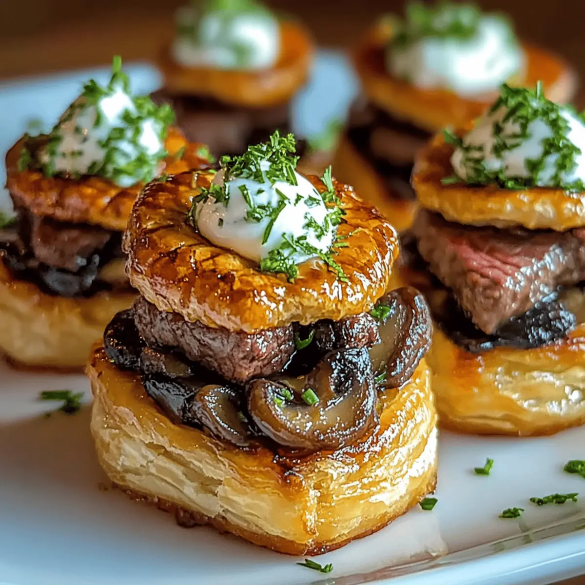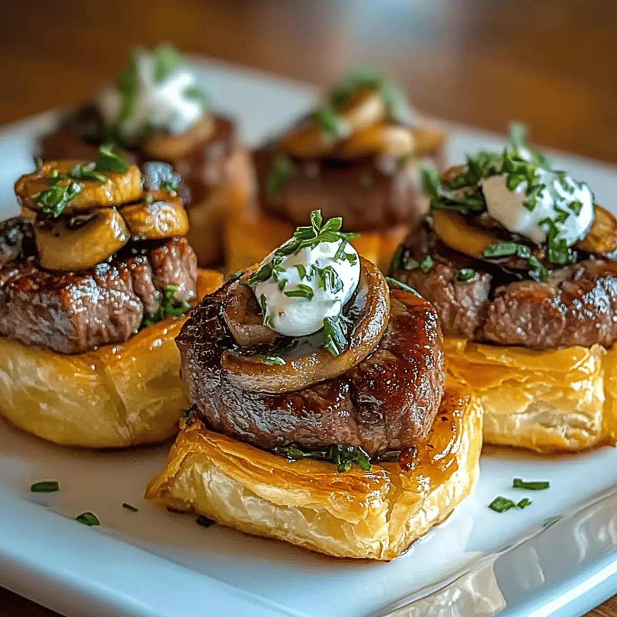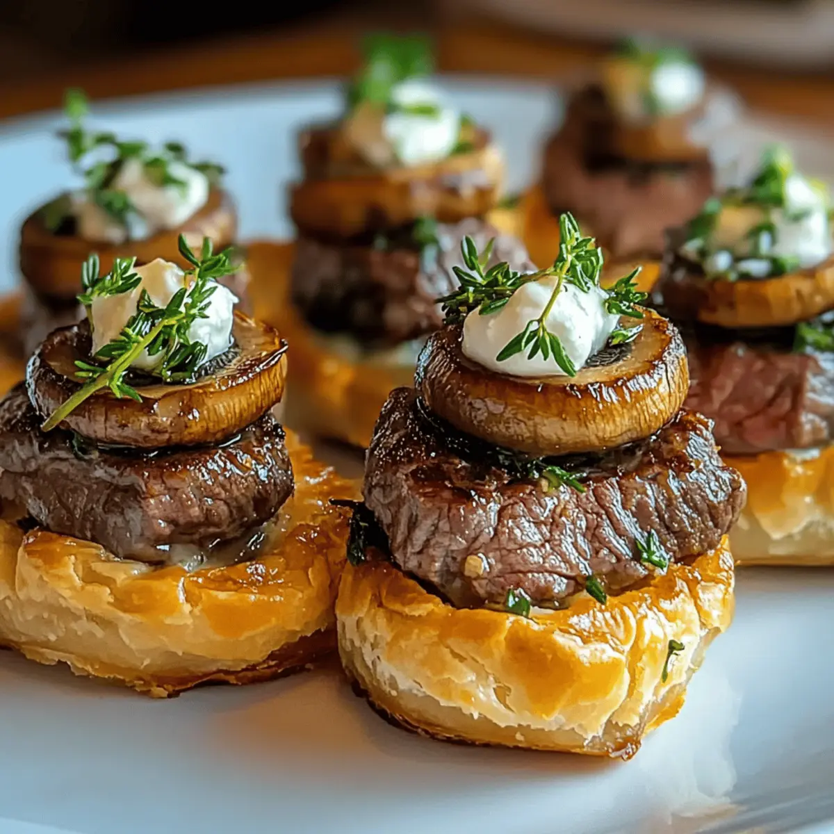 Jump to Recipe Print RecipeAs I was preparing for a recent gathering, the daunting task of impressing my guests loomed large. That’s when these Mini Beef Wellington Bites came to my rescue—a gourmet appetizer that fuses rich, savory flavors into bite-sized perfection. Who knew that simplicity could feel so elegant? With the delightful combination of tender beef, earthy mushrooms, and flaky pastry, these treats not only elevate any occasion but are also surprisingly quick to make. Plus, they’re versatile! You can easily adapt them for a vegetarian option, ensuring everyone at the party feels included. Ready to take your next gathering to the next level with these scrumptious morsels? Let’s dive into the recipe! Why Choose Mini Beef Wellington Bites? Simplicity: Crafting these gourmet bites is a breeze—even kitchen novices can master them with ease! Impressive Flavor: The combination of tender beef, earthy mushrooms, and buttery pastry creates an explosion of savory goodness. Versatile Option: These bites can easily be customized for vegetarian guests by substituting beef with sautéed vegetables or lentils, broadening their appeal. Perfect for Any Gathering: Whether it’s a family dinner or a cocktail party, they are guaranteed to wow your guests and spark delightful conversations. Make-Ahead Convenience: Prepare them in advance, freeze, and just bake when ready to serve—your time-saving secret for effortless entertaining! Elevate your culinary repertoire with these delightful Cheesy Pretzel Bites for a fun twist on appetizers! Mini Beef Wellington Bites Ingredients For the Filling Beef (tenderloin or filet mignon) – Offers rich flavor and protein; sirloin is a good substitution for budget-friendly options or consider sautéed vegetables for vegetarian versions. Mushrooms – Imparts an earthy depth to the filling; shallots can be used instead for a sweeter taste. Shallots – Enhances the flavor profile with its subtle sweetness; no common substitute recommended. Garlic – Essential for adding aromatic depth; can use garlic powder if you’re in a pinch. Thyme – Brings fragrant herbal notes to the dish; rosemary works as a suitable alternative for a different flavor. For the Pastry Olive Oil – Ideal for sautéing all the filling ingredients; use butter for a richer taste if preferred. Puff Pastry – This flaky, buttery crust is a must; be sure it’s fully thawed if frozen before using. Dijon Mustard – Adds a delightful sharpness; feel free to omit for a milder bite. Egg (beaten) – This will form a beautiful golden egg wash on your pastry; no substitute is necessary for this role. Optional Dips Creamy Horseradish Sauce – Adds a zesty kick; pairs perfectly with beef. Tangy Mustard – Offers an extra layer of flavor; choose your favorite variety to complement the bites. Craft these Mini Beef Wellington Bites for your next gathering, and indulge in a gourmet experience your guests will adore! Step‑by‑Step Instructions for Mini Beef Wellington Bites Step 1: Sear the Beef Begin by heating 1 tablespoon of olive oil in a large skillet over medium-high heat. Season the beef cubes with salt and pepper, then add them to the hot pan. Sear the beef for about 2-3 minutes on each side until nicely browned. Remove the beef from the skillet and set it aside to cool while preparing the mushroom mixture. Step 2: Prepare the Duxelles In the same skillet, add another tablespoon of olive oil if necessary and reduce the heat to medium. Add 1 cup of finely chopped mushrooms, 2 shallots, and 2 cloves of minced garlic, cooking for about 5-7 minutes until the mixture becomes golden and fragrant. Stir in 1 teaspoon of fresh thyme, season with salt and pepper, then remove the skillet from the heat and let it cool slightly. Step 3: Roll Out the Pastry On a lightly floured surface, roll out the thawed puff pastry to about 1/8 inch thick, ensuring it stays pliable. Cut the pastry into 3×3 inch squares, aiming for about 12 pieces. Keep the dough pieces covered with a clean towel while preparing to assemble the Mini Beef Wellington Bites to prevent them from drying out. Step 4: Assemble the Bites Preheat your oven to 400°F (200°C) and line a baking sheet with parchment paper. Place a spoonful of the mushroom duxelles and a piece of the seared beef in the center of each pastry square. If desired, spread a thin layer of Dijon mustard on top of the beef for added flavor. Fold the pastry over the filling and crimp the edges with a fork to seal them tightly. Step 5: Bake the Bites Arrange the assembled Mini Beef Wellington Bites on the prepared baking sheet, ensuring they have space between them for even baking. Brush each bite with a beaten egg to achieve a beautiful golden color. Bake in the preheated oven for 15-20 minutes, or until the pastry is puffed and golden brown, creating a delightful treat for your gathering. Step 6: Cool and Serve Once baked, remove the bites from the oven and let them cool on a wire rack for a few minutes. This cooling step allows the flavors to settle while preventing burning. Serve the Mini Beef Wellington Bites warm, optionally with creamy horseradish or tangy mustard for dipping, and watch your guests enjoy these gourmet delights! Make Ahead Options These Mini Beef Wellington Bites are perfect for busy home cooks looking to save time without sacrificing flavor! You can prepare the beef and mushroom filling up to 24 hours in advance; simply refrigerate it in an airtight container. Additionally, the assembled bites can be frozen for up to 3 months. To maintain quality, avoid thawing the pastry before baking; instead, bake from frozen, adding an extra couple of minutes to the cooking time. When you’re ready to impress, simply brush them with egg and pop them in the oven. With these make-ahead tips, you’ll have gourmet results with minimal effort when the occasion arises! How to Store and Freeze Mini Beef Wellington Bites Fridge: Store baked Mini Beef Well