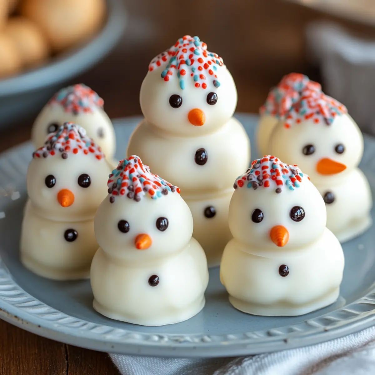 Delightful Mini Snowman Truffles are a charming no-bake treat perfect for festive gatherings, bringing joy with their vanilla and chocolate flavors.